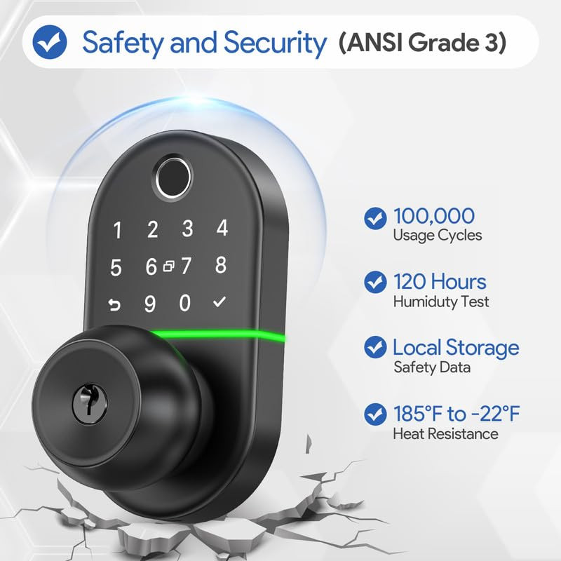 Smart Keyless Entry Biometric Keypad Door Knob for Front Door Security