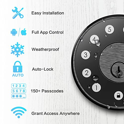 Return Policy Fast Delivery Trusted seller Smart Lock, Smart Lock Front Door, Keyless Entry Door Lock, Smart Deadbolt, Smart Door Lock, Deadbolt Lock, Digital Door Lock, Keypad Deadbolt Lock, Smart Lock Deadbolt, Black Product Description ?【Rental Hosts & Homeowners】 smart door lock is a great solution for Airbnb short-term rental hosts, rental property management, and self-housing resident. Generate passcode remotely and share it to your visitors. ?【All-Weather Protection】ANSI/BHMA certified weatherproof rating smart lock to withstand most weather conditions against splashing water, direct sunlight and freezing cold environment. Fully operational temperature between 14° F and 158° F. Suitable for both outdoor and indoor use. ?【Easy Installation】Easy to install in minutes with just a Philips screwdriver. No extra drills needed. No locksmith needed. Powered by 4 AA batteries and the battery life is d to be over one year. Each door lock comes with 3 physical keys as backups. ?【Remote Control / Wi-Fi Access】Paired with Wi-Fi Gateway (Optional Add-on, Sold Separately), you can lock/unlock your smart door lock anyw anytime, set up codes remotely and check real-time access logs. ?【Satisfaction Guaranteed】App/Software is free to use forever. No hidden charges or long-term costs. 30-day money back , 1-year product warranty and a customer support following the date of purchase. Shipping Returns Payment Shipping Shipping is FREE to all addresses other than APO/PO boxes in the lower 48 states. All our stock ships from US-based warehouses. Shipped via USPS or UPS (depending on location and package weight) Unless stated otherwise, all orders will ship within 24-72 hours of your payment being processed. Check our feedback to see the great reviews of FAST shipping we offer. Returns Seller does not accept returns Payment We currently accept payment via eBay managed payments only. Once payment is cleared, we will dispatch your shipment within 1-3 business days. Please refer to the "Shipping" tab for more information regarding shipping speed to your destination.