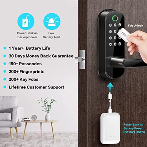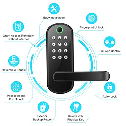 Return Policy Fast Delivery Trusted seller Smart Lock, Keyless Entry Door Lock, Smart Door Lock, Smart Lock for Front Door, Keyless Door Lock, Fingerprint Door Lock, Biometric Door Lock, Keypad Door Lock, Digital Door Lock (Black) Product Description ?【Homeowners & Rental Hosts】Great solution for Airbnb & HomeAway short-term rental hosts, rental property management, and self-housing resident. Generate a passcode remotely w/o internet and share it to your visitors. ?【Advanced 3D Fingerprint】Unlock the door less than 0.3 seconds with our 3rd generation fingerprint access technology. The most secured 5-in-1 Keyless Entry Smart Door Lock: Fingerprint + Passcode + Fob + Smartphone + Key. ?【Easy Installation】Easy to install in minutes with just a phillips screwdriver. No extra drills needed. No locksmith needed. Door handle is reversible for both left and right handed doors. ?【Remote Control / WiFi Access】Paired with WiFi Gateway (Optional Add-on, Sold Separately), you can lock/unlock your smart door lock anyw anytime, set up codes remotely and check real-time access logs. ?【Satisfaction Guaranteed】App/Software is free to use forever. No hidden charges or long-term costs. 30-day money back , 1-year product warranty and a customer support following the date of purchase. Shipping Returns Payment Shipping Shipping is FREE to all addresses other than APO/PO boxes in the lower 48 states. All our stock ships from US-based warehouses. Shipped via USPS or UPS (depending on location and package weight) Unless stated otherwise, all orders will ship within 24-72 hours of your payment being processed. Check our feedback to see the great reviews of FAST shipping we offer. Returns Seller does not accept returns Payment We currently accept payment via eBay managed payments only. Once payment is cleared, we will dispatch your shipment within 1-3 business days. Please refer to the "Shipping" tab for more information regarding shipping speed to your destination.