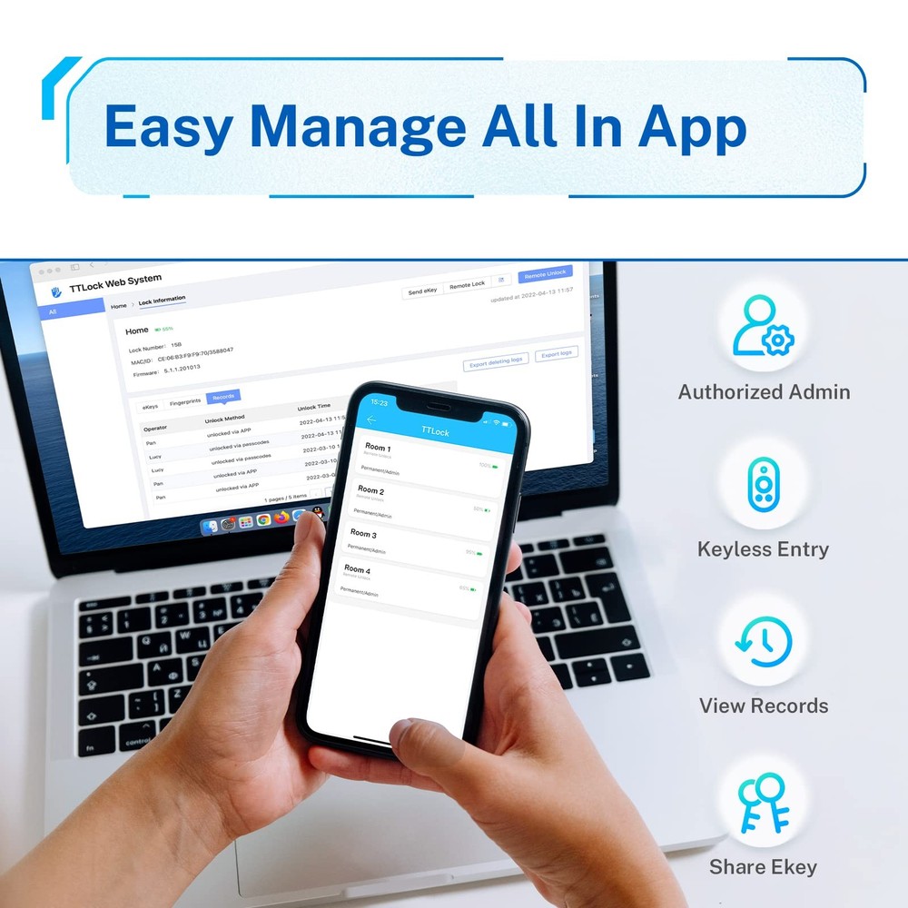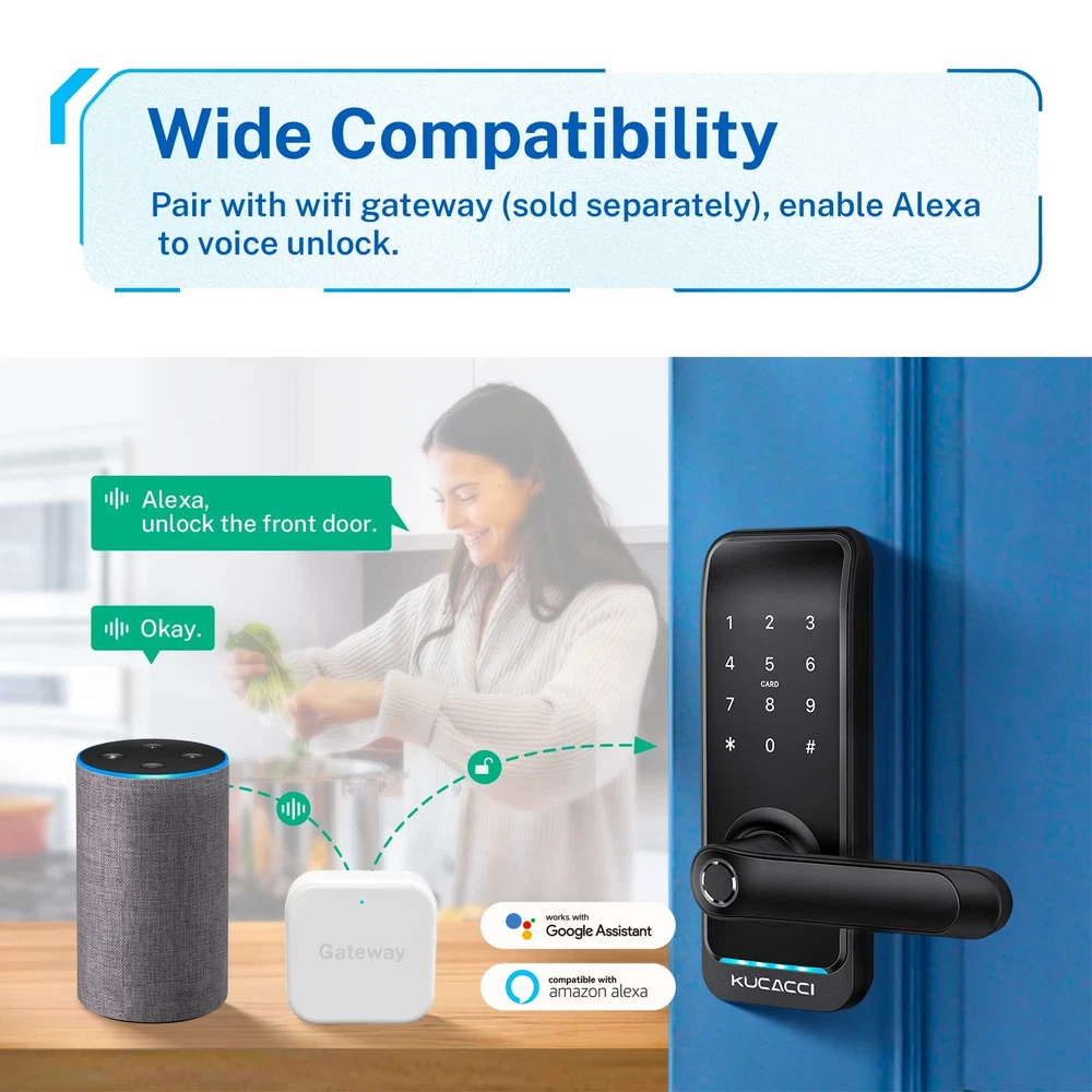 đ„ăKeyless Entry Door LockăMultiple unlock ways: Fingerprint + Keypad Passcode + Key Fob Card + Physical Keys + Smartphone App. Connected wifi gateway(sold separately), you also can remotely unlock the digital door lock and enable the Alexa to voice unlock. đ„ăEasy InstallationăNo extra drilling required or a costly locksmith. With a screwdriver, you will be able to install and program this smart door lock all by yourself. đ„ăIP66 Security Smart Lockădoor locks with keypad is a secure housekeeper. It comes with sturdy lock cylinder, high-quality persistent durable zinc alumium structure, anti peeping keypad code protection and IP66 weatherproof rating to resist extreme weather. It can be used indoors or outdoors, left or right opening door. đ„ăIdeal for Rental Hosts & HomeownersăWith TTlock app or TTlock web manager, you can manage all smart door locks in one place: authorize admin, generate code, share ekey, view records. Simple, Fast and Efficient, absolutely best choice for Airbnb short-term rental hosts and self-housing resident. đ„ăSatisfaction Guaranteeăsmart lock comes with 1 year product warranty, 30-day money-back guarantee and lifetime customer support from the date of purchase. Customer recognition is our top priority!