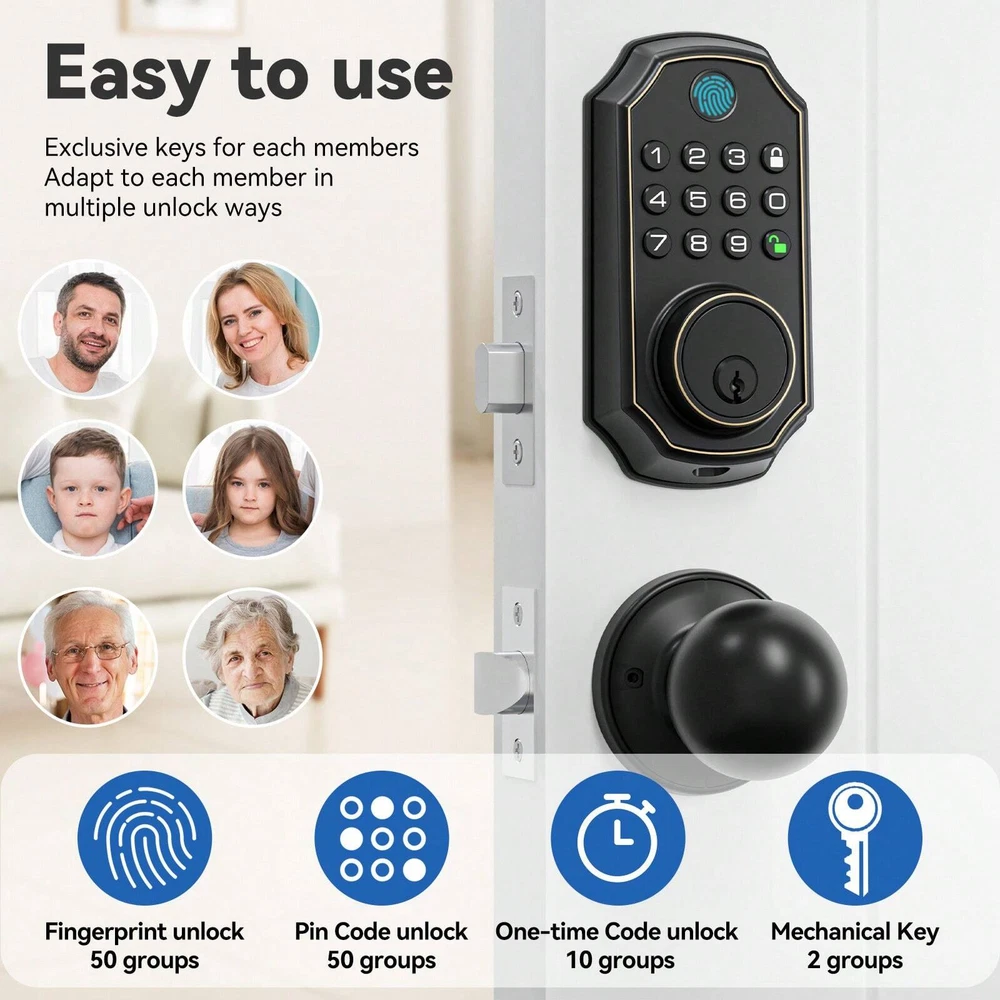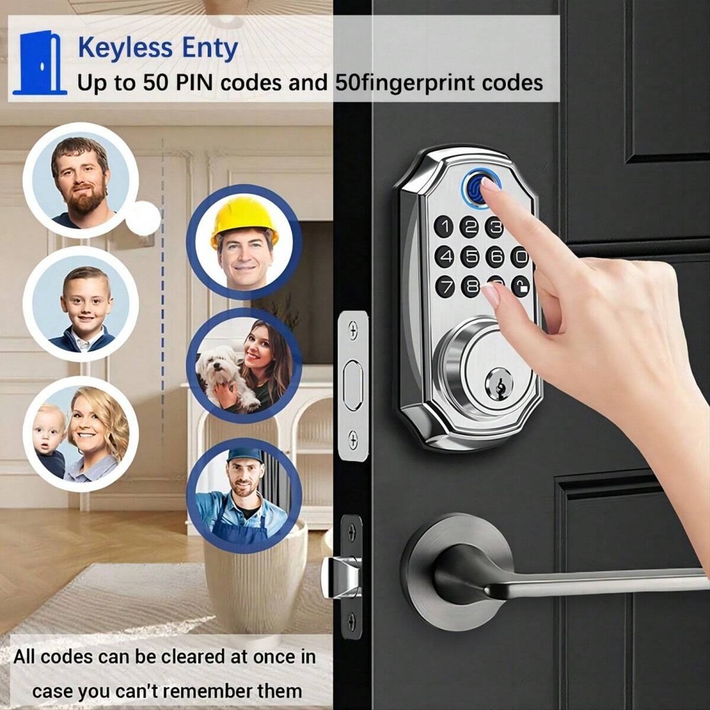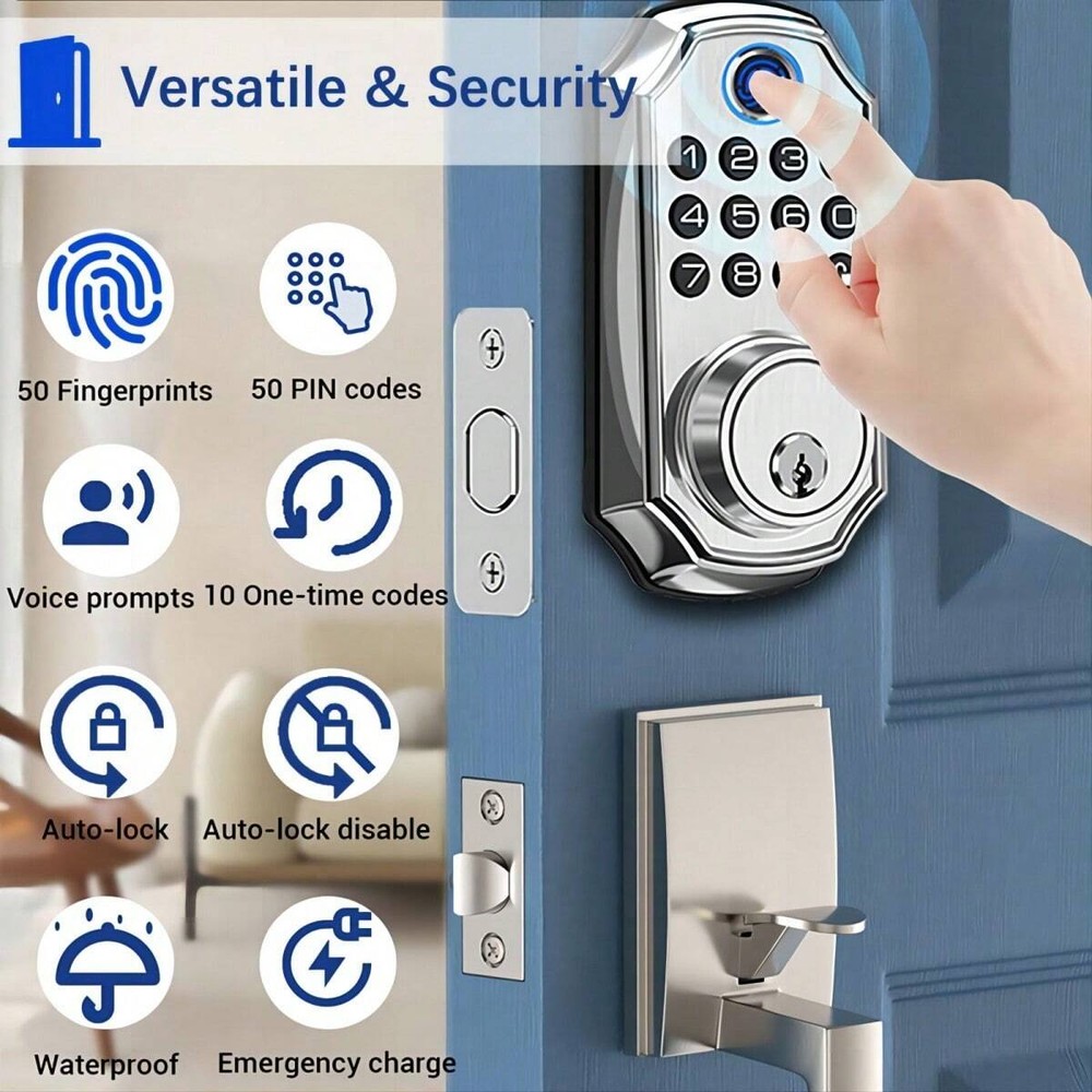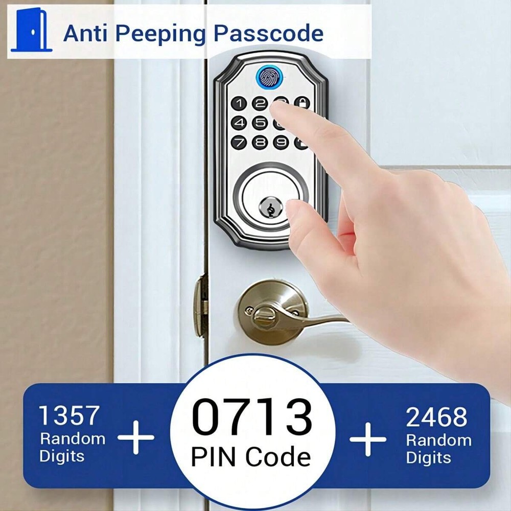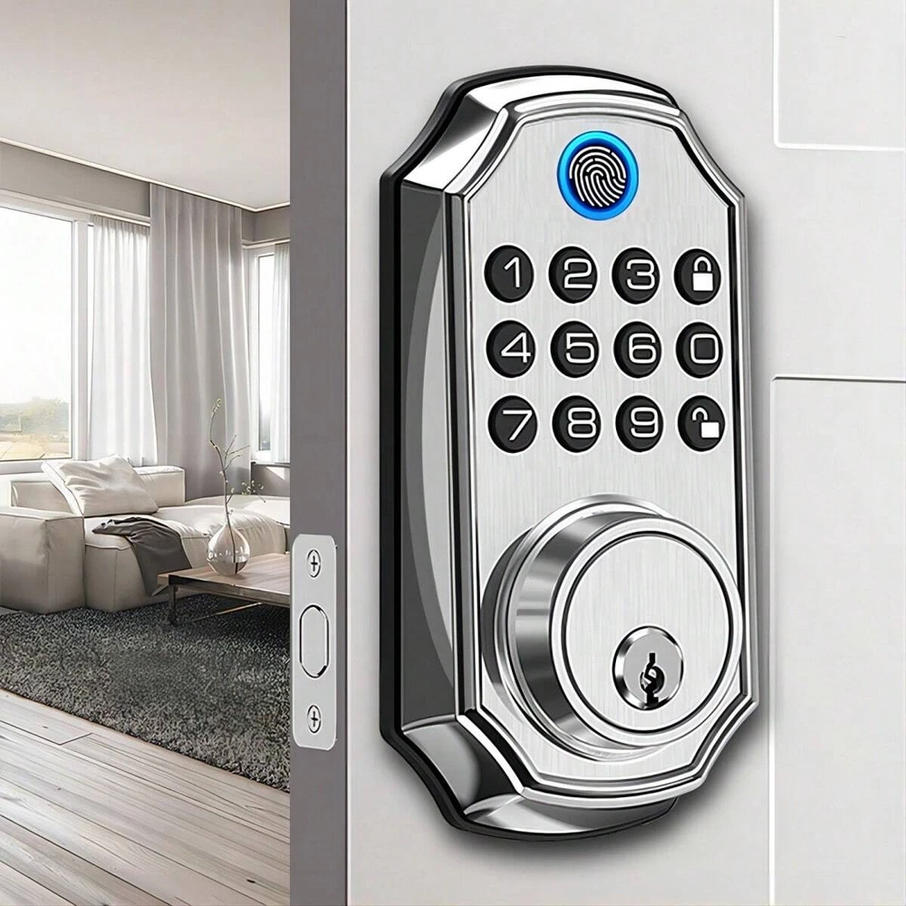 1. This fingerprint keypad deadbolt is a game-changer for home security! The biometric scanner works flawlessly, and the backlit keypad makes nighttime entry a breeze. Setup was simple, and I love the auto-lock feature for peace of mind. The zinc alloy construction feels sturdy, and having multiple access options (fingerprint, PIN, or key) is incredibly convenient. No more fumbling for keys - just a quick scan and you're in! Battery life has been impressive so far. Highly recommend upgrading to this smart lock system.