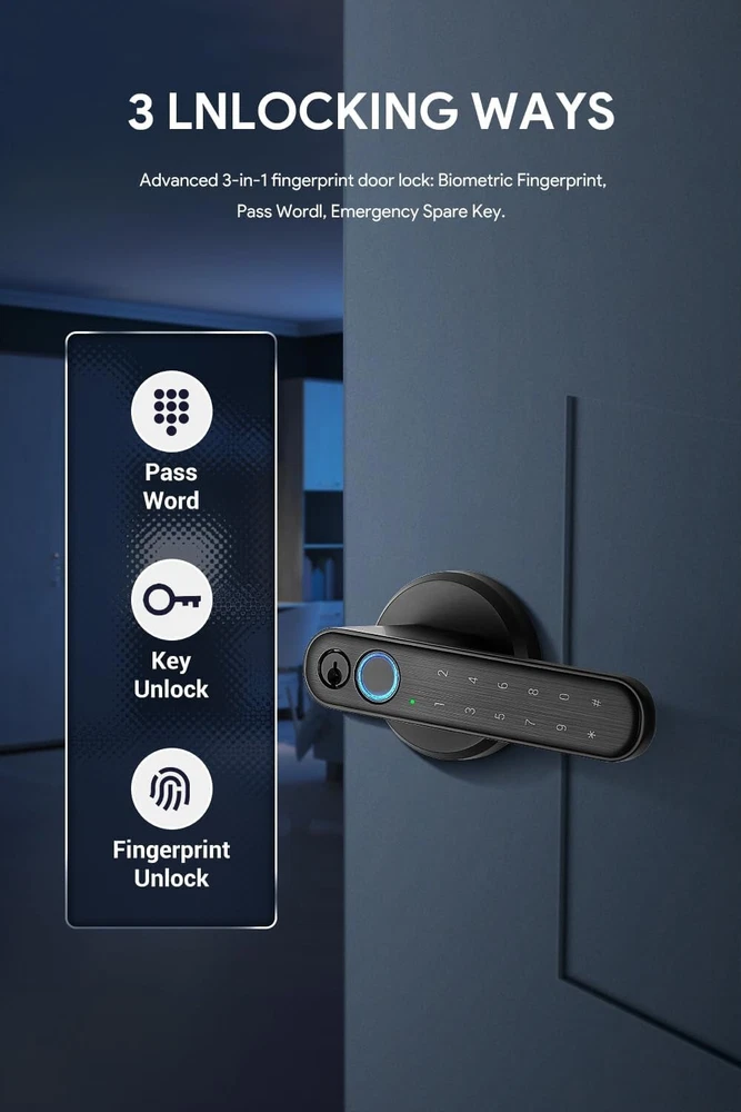 Fingerprint Biometric Door Lock, Keyless Entry with Keypad & Handle, Matte Black ‹ › ‹ › ‹ › ‹ › ‹ › ‹ › ‹ › ‹ › ‹ › ‹ › ‹ › Fingerprint Biometric Door Lock Keyless Entry with Keypad & Handle - Matte Black Features: 🌟 3-in-1 Unlocking: Multiple unlocking methods with up to 20 fingerprint storage and 15 sets of passwords. 🔒 Adjustable Latch: Fits most US doors with adjustable backset (2-3/8” & 2-1/8”). Suitable for door thickness between 1.26” to 1.89”. 💪 Sturdy Design: Made of premium zinc alloy for enhanced security. Fingerprint recognition rate of 99%, unlocking in just 0.2 seconds. 🚨 Low Battery Alarm: Alerts you with a flashing red light when batteries are low, ensuring you’re always prepared. 🔕 Intelligent Modes: Features “Passage Mode” for convenience during gatherings and “Silent Mode” for discretion when needed. 🛠️ Easy Installation: Comes with all necessary hardware and installation instructions; no locksmith needed! Benefits: Enhanced security with biometric fingerprint capability. Convenient keyless entry eliminates the hassle of traditional keys. Customize access for family and trusted friends. Stylish matte black finish complements any modern décor. Designed for both residential and commercial use, ensuring versatility. Peace of mind with confidence in your home and office security. Why choose our Fingerprint Biometric Door Lock? Upgrade your security with our Fingerprint Biometric Door Lock. Its sleek matte black finish and cutting-edge technology not only provides unmatched safety but also seamlessly blends into your home or office. Offering triple access options for your convenience, along with a premium design crafted from sturdy materials, this lock ensures your peace of mind, whether you're at home or away. Don’t compromise on safety or style. Choose confidence and modern convenience with our Fingerprint Biometric Door Lock today! Shipping Free & Fast Shipping - We offer free shipping to most of the USA with a normal delivery time of 3-7 days. However, due to the current situation, additional delivery time (up to 3 weeks) may be required for some items. Alternative Carriers - We may use alternative carriers (e.g. USPS, FedEx, UPS, etc.) to ensure your package arrives safely and on time. Due to the use of multiple carriers, we are unable to provide a tracking number automatically. Handling Time - Orders are processed and shipped within 1-2 business days of receiving cleared payment. Shipping Restrictions - Shipping to Alaska, Hawaii, Puerto Rico, Guam, and other US territories may incur shipping charges or delivery restrictions. Please contact us before ordering, or your order can be refunded/cancelled. State Restrictions - There may be restrictions based on your state of purchase. For example, certain items may not be shipped to California due to state regulations. Contact for Tracking Updates - If you require tracking updates or have any concerns about the delivery of your order, please feel free to contact us, and we will be happy to assist you. Return 30-Day Hassle-Free Returns - We want you to be completely satisfied with your purchase. If you are not, you can return the item within 30 days of receiving it for a full refund or exchange. Easy Return Process - To start a return, simply contact us and we will provide you with a prepaid return shipping label and detailed instructions. Restocking Fee - There are no restocking fees for returns. However, the buyer is responsible for return shipping costs if the return is not due to a seller's error. Refund Processing Time - Refunds will be processed within 5 business days of receiving the returned item in its original condition. Payment We accept all major credit cards, PayPal, and Apple Pay for your convenience. Your payment information is secure and encrypted to ensure a safe and seamless transaction. Please complete your payment within 3 days of purchase to avoid any delays in shipping. Feedback Your feedback is extremely important to us. We strive to provide the best products and customer service possible. If you are satisfied with your purchase, please take a moment to leave us a positive review. If you have any concerns or issues with your order, please contact us before leaving negative feedback. We are committed to resolving any problems and ensuring your satisfaction. Contact Us If you have any questions or concerns, please feel free to reach out to our customer support team. You can contact us through the eBay messaging system. We are available Monday to Friday, 9:00 am to 5:00 pm EST, and we will do our best to respond to your inquiry within 24 hours. Buy it now and enjoy a pleasant shopping experience! UPC: Not Set Model: Not Set Unit Quantity: 1 Material: Zinc Suitable For: Residential,Office,Apartment,Bedroom Mounting: Universal Features: Adjustable Backset,Easy to Install,Electronic,Keyless,Self Closing,Fingerprint,Passcode Items Included: Key,Lock Brand: Unbranded Type: Fingerprint Door Lock Color: Black Finish: Matte Item Height: Not Set Throw Length: Not Set Item Width: Not Set Cross Bore Diameter: 2.75 in MPN: Not Set Number in Pack: 1 Style: Modern Item Depth: 2.8 in Country/Region of Manufacture: Not Set Door Handing: Universal/Reversible Manufacturer Warranty: Not Set Item Weight: 1 lb ANSI Grade: ANSI Grade 2 (Better) Unit Type: lb Fixings Supplied: Not Set