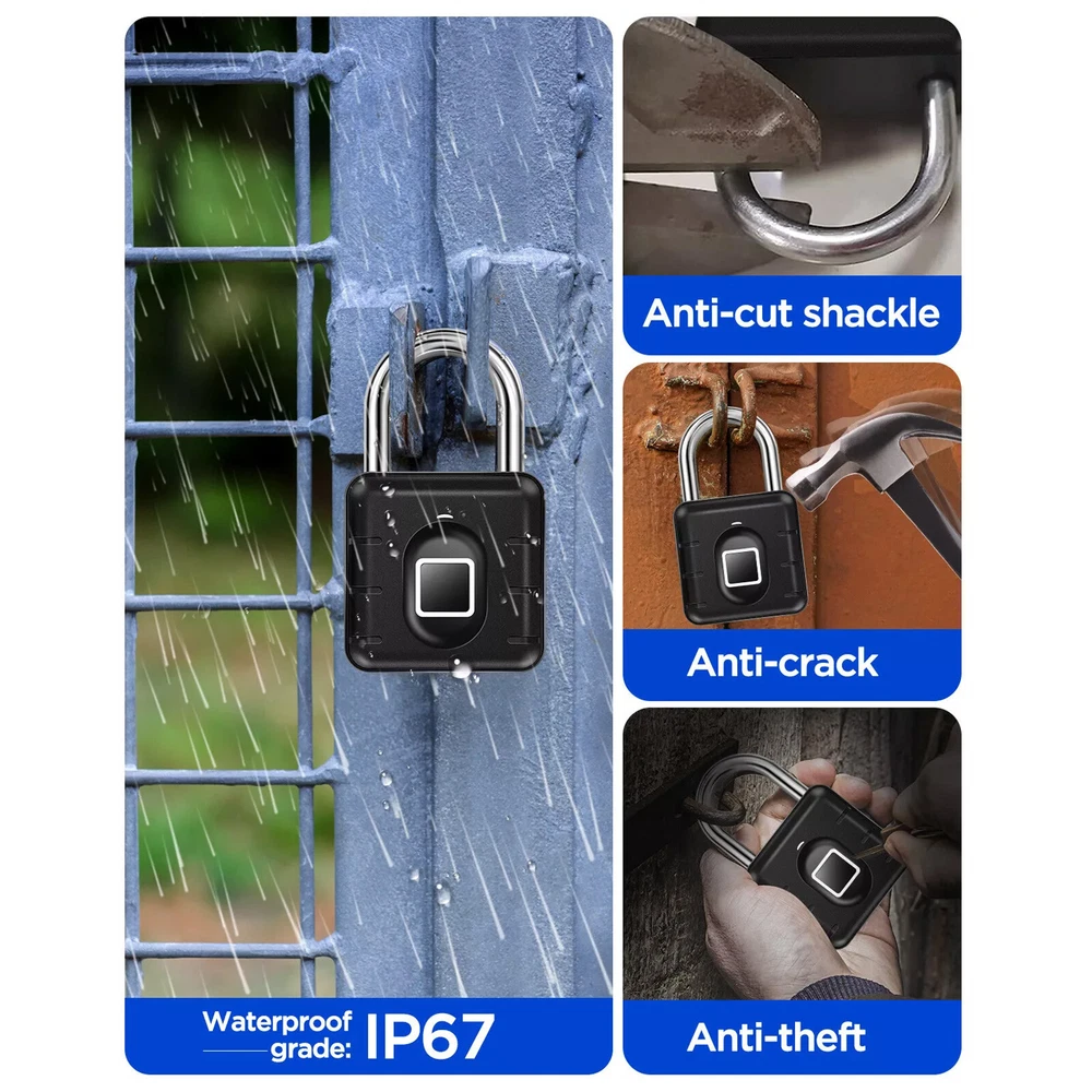 Built-in battery: 110mAh 3.7V Features: 【Smart Fingerprint unlock】NO app,NO key,NO bluetooth.Friendly to kids and elderly,your finger is the key which discourages the thief to crack the code.Do not worry about losing the key or the password is known to the thief, because they can not get your finger. Please note: Any skin contact can open the lock in the factory mode,Please enter the administrator's fingerprint according to Installation video before using. 【Store 20 Fingerprints】 Each small fingerprint padlock can store 20 fingerprints, the first two are administrator fingerprints, just follow the indicator prompts to enter the fingerprints.Ip67 waterproof and can be used outdoors. 【 Long Run Time and Replaceable Lithium Battery】Low power consumption and long standby time. Built-in 420mAh lithium battery can support a long time standby time.Lithium battery needs to be replaced when low battery is indicated。 【Sturdy and Portable】:The fingerprint padlock body is made of aluminum alloy(AD12 Alloy) and the shackle is made of stainless steel(201 Stainless steel). It has excellent tamper resistance and rust resistance to protect your cabinet or home from thieves. The IP67 waterproof electronic lock prevents dust and rain. It is your trusted home and office equipment for indoor and outdoor using. 【Waterproof and Wide Uses】-Made of zinc alloy locking system and stainless steel locking beam to enhance the sturdiness of the padlock. Compact enough to carry around. IP67 waterproof rating. Can be widely used for indoor and outdoor gym, swimming pool, office, school, garage, warehouse, gate, fence, shed, storage locker, suitcase, handbag, luggage, bicycle, etc. Package Include: 1 x Fingerprint Smart Padlock 1 x English Instructions Note: 1.Please ensure the part of your car like our picture shows, or it will not fit, if any differeces, please contact with us before purchase, thanks 2.Due to the difference between different monitors, the picture may not reflect the actual color of the item. Please understand, thank you. Contact us: 1. We will leave POSITIVE FEEDBACK after receiving the payment. Please contact us if you are not satisfied with the item after receive it. 2. All messages will be answered within 1 business day. If you do not receive our reply, please kindly re-sent your message and we will reply to you as soon as possible. 3. If you have any problems or concerns whatever with your order or products, please message us and give us a chance to assist you before you leave any feedback. 4. We believe we can produce a positive outcome to any situation and will work hard to earn your praise. We strive for 100% customer satisfaction! Positive Feedback is very important to us. Your satisfaction is our pursuit. If you have any questions and needs, please contact us at any time. Our professional team will answer every doubt for you. We will reply to you within 24 hours. If you have a problem on the weekend,Don't worry, we will reply to you immediately after working on working days.
