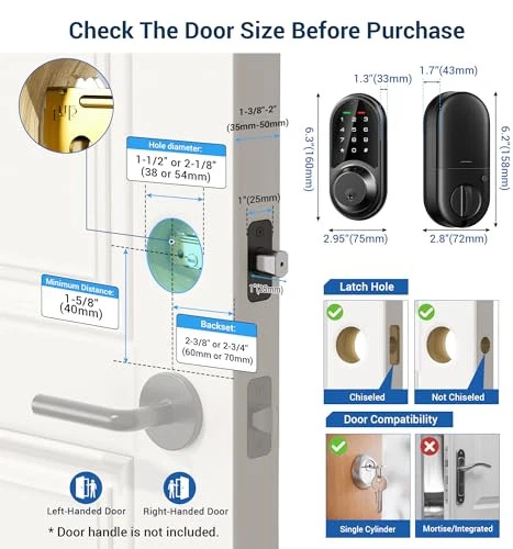 Return Policy Fast Delivery Trusted seller Smart Lock, Keyless Entry Door Lock, Smart Locks for Front Door with App Control, Electronic Digital Lock with Touchscreen Keypad Set, Smart Deadbolt, Auto Lock, Easy Installation, Matte Black Product Description Keyless Entry Door Lock: The smart lock has a 5 in 1 access method, APP + Fobs + password + key + thumb turn APP Control & Ekeys: Smart locks can realize APP control, set passwords, manage access rights and view access logs, and can also authorize your family members, guests or tenants to use APP through eKey 250+ Multiple Passwords: Smart door locks can remotely generate and share permanent passwords, timed passwords, one-time passwords, and recurring passwords. Suitable for families, Motel and different visitors Remote Control: After connecting to the gateway G2 (sold separately), smart locks can access remotely, log in real-time, work with Alexa and Google assistant, and check the status of the door lock Smart Lock: Smart deadbolt can be set to lock automatically (1 s-900 s). It can also be locked by "one-touch lock" via the touch screen keyboard Smart lock fits on most US standard left & right-handed doors. Easy to install. offers at least 1-year warranty and online phone support from Mon to Fri 9 AM to 5 PM PDT and 24/7 after-sales email service Shipping Returns Payment Shipping Shipping is FREE to all addresses other than APO/PO boxes in the lower 48 states. All our stock ships from US-based warehouses. Shipped via USPS or UPS (depending on location and package weight) Unless stated otherwise, all orders will ship within 24-72 hours of your payment being processed. Check our feedback to see the great reviews of FAST shipping we offer. Returns Seller does not accept returns Payment We currently accept payment via eBay managed payments only. Once payment is cleared, we will dispatch your shipment within 1-3 business days. Please refer to the "Shipping" tab for more information regarding shipping speed to your destination.