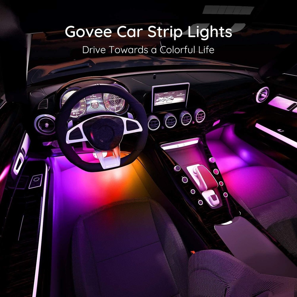 Govee Car Lights, Smart RGBIC Interior Car Lights with APP, Remote Control, LED Lights for Car Decor, DIY Mode and Multiple Scene Options, 2 Lines Design 72 LED Lights for Car RGBIC Lighting Effect: Govee RGBIC effect allows you to personalize your lights to display various colors all at the same time. Enjoy rainbow-like light effects and 16 million colors. Making your car stand out just got a lot easier. 3 Lively Music Modes: With a built-in mic, this car lights can sync easily to any music type. Watch in awe as the colors and light speed adjusts automatically to your favourite songs, transforming how you drive. Multiple Control Options: Control your interior car lights through the control box, RF remote, or the Govee Home APP. The app offers DIY mode, allowing to power your lights on/off, adjust brightness, or change colors with just a click of a button. DIY mode: With the Govee Home app, you can customize light effects and access 16 million colors. Moreover, our smart color picking feature enables the app to recognize colors on your uploaded photos and apply them to your lights. 2 Lines Design: The car lights feature a 2-line design that connects 4x0.98ft strips of total 72 LED lights, making installation simple. The lights are suitable for cars, trucks, and SUVs. Enliven your vacation, or road trips with vibrant colors.