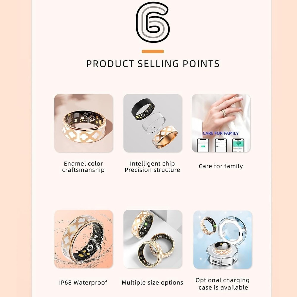 Smart Ring Health Tracker for Women Men, Fitness/Sleep/Stress/HR Tracker, Fitness Tracker with Steps, Distance & Calorie Count, iOS & Android Compatible, IP68 Waterproof 【Elegant Design】This health tracker with exquisite appearance, when paired with a beautiful crystal charging case, represents a unique style that belongs to your life. 【Multiple Exercise Modes】This smart ring supports multiple exercise modes such as running, cycling, jumping rope, walking, hiking, yoga, golf, dancing. 【Recording of Exercise Data】This smart ring is equipped with high-quality sensors, which can accurately record steps, distance, calories and other workout data. 【24/7 Health Tracking】This health tracking ring can 24/7 monitor your heart rate, blood pressure, blood oxygen, sleep and more, serving as your personal health assistant. 【IP68 Waterproof】The smart ring with IP68 waterproof rating can meet your waterproof and dustproof needs in your daily life or outdoor sports. 【15mAh Battery Capacity】This health tracker has a powerful battery capacity, which can provide up to 7-10 days of standby time and 3-5 days of normal working time with just 1-2 hours of charging. 【Bluetooth 5.0】The smart ring is compatible with most smartphones on the market, with system requirements of Android 5.1 or above, and iOS 8.0 or above.