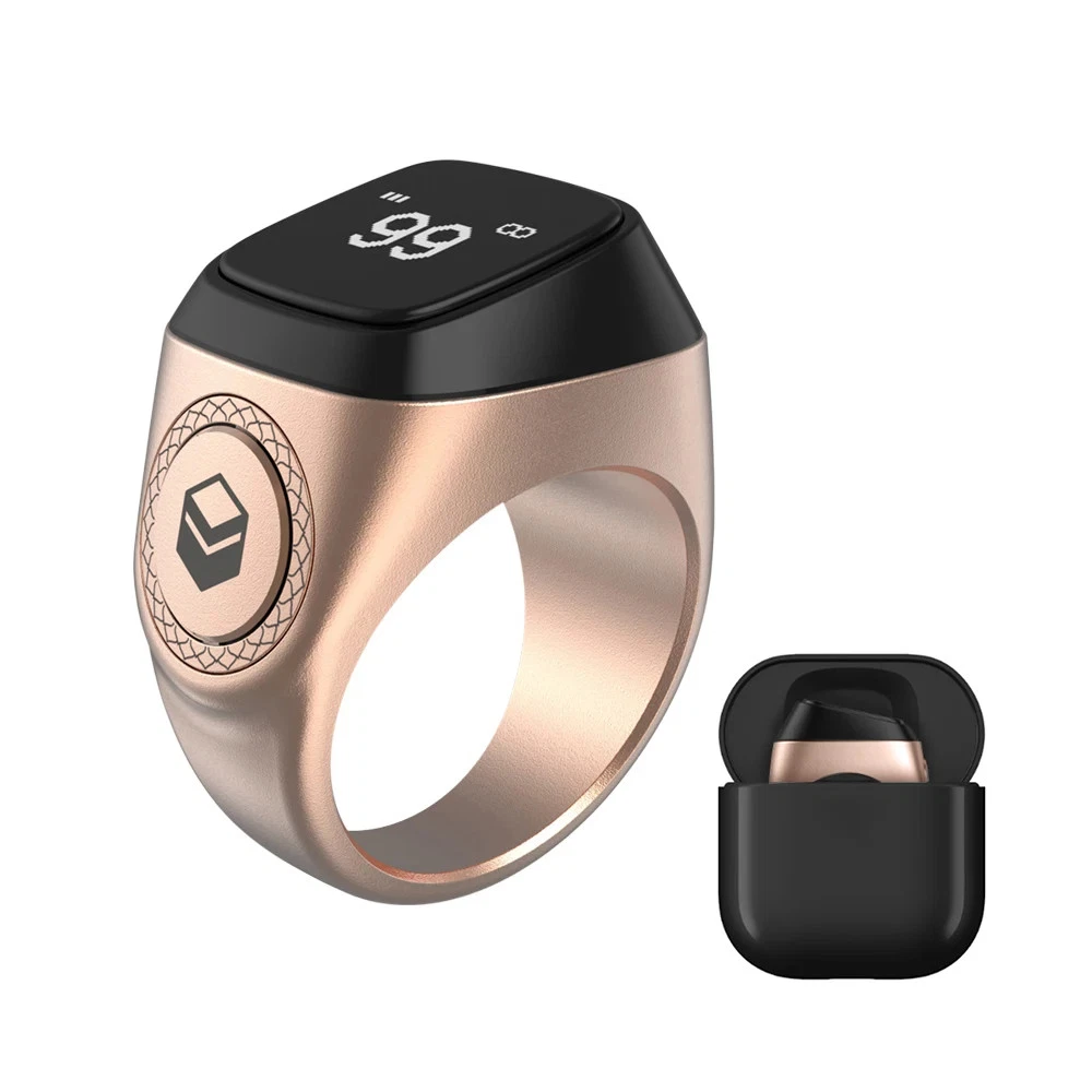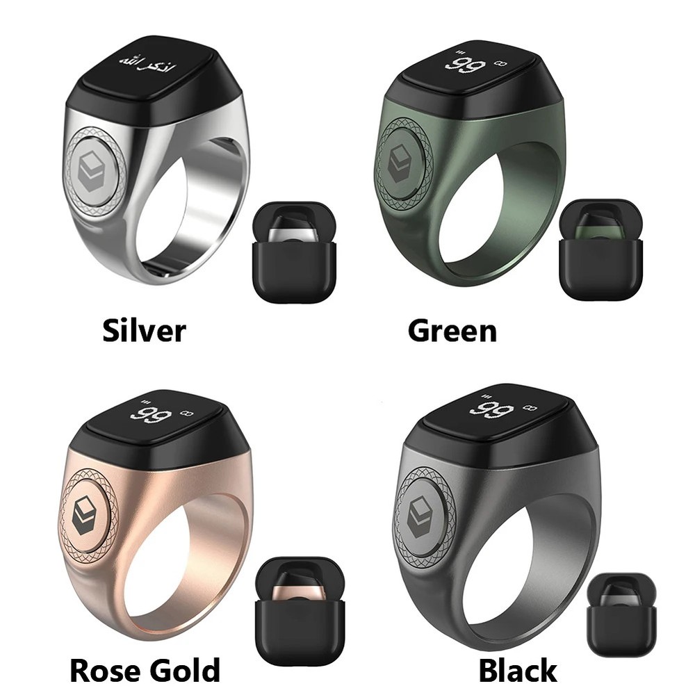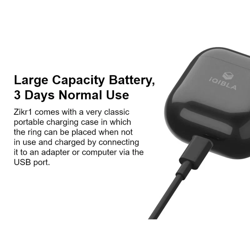20mm Tasbih Tally Counter Ring Bluetooth-compatible 5.1 5 Prayer Time Smart Tally Counter Ring 0.49 Inch OLED Display Vibration Reminder Zinc Alloy Islamic Muslim Gift Feature: 1. Zinc alloy material: Made of high-end alloy, the weight is only 11.7g, which is only half of the first generation zinc alloy ring. It has a texture, delicate and mellow feel, bringing a lighter and more comfortable wearing experience. 2. Long life: through the USB port for charging. It is equipped with a high-capacity battery. Under normal circumstances, the ring battery can provide 15 days of service time for the ring. 3. For iQibla (for Smart Qibla) APP: Built in Bluetooth-compatible 5.1, it can quickly connect to for iQibla app, obtain accurate for Qibla directions, and synchronize data with your smartphone and for Qibla watch. You can receive 5 prayer time reminders through ring or smartphone applications. 4. Tasbeeh intelligent counter: With integrated CNC button, you can easily track daily Tasbeeh count at any time. Click the button to count. When the count reaches 33, 66, 99 or 100, it will vibrate. 5. OLED display: The built-in 0.49 "OLED display shows the time, chanting times and praying times. It is light, comfortable and fashionable. It will be a great gift for Muslim friends. Specification: Origin: Mainland China Material: Zinc alloy Color: black Bluetooth-compatible: 5.1 Screen: OLED, 0.49 inch, 72 * 40 Button: 1 button Charging port: Pogo Pin Battery capacity: 40mAh Theoretical working time: Under normal circumstances, the ring battery can provide 15 days of service time for the ring Sensor: Vibration motor Matching system: For Android 5.1 or for iOS 10.0 or higher Size: 20mm/0.79in Weight: 11.7g About APP: 1. App can record multiple Tasbih, and each can be named separately. 2. App can set multiple Tasbih limit targets (users will be prompted when they reach this target), for example, only 168 times will be needed for a certain time, and when 168 times are reached, they will vibrate to prompt and stop counting (ring end). The App end can be set to cycle mode, and the counting can be restarted after the set number of times is reached. Default limit stop mode. 3. The app can query historical records. The user must log in to the Tasbih record curve each time, and can query by month and day. Note: Due to the different monitor and light effect, the actual color of the item might be slightly different from the color showed on the pictures. Thank you! Please allow 1-2cm measuring deviation due to manual measurement. 1 X Smart Ring 1 X USB Type-C Data Cable 1 X Instruction