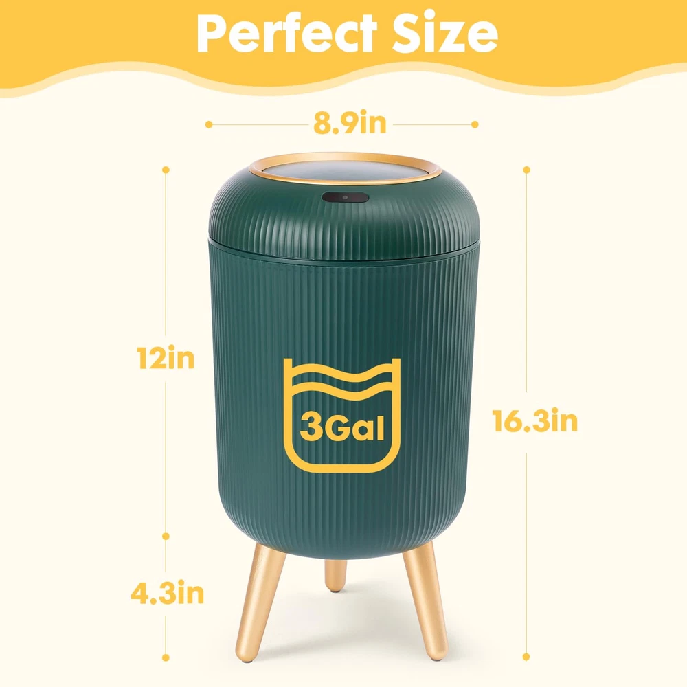 【 Motion Sensor Trash Can 】 This smart trash can features an advanced motion sensor, allowing easy opening with your hand or knee. The lid opens within 0.1 seconds and automatically closes 6 seconds when no object moves. Touchless, more convenient and more hygienic. Requires 2 AA batteries (not included) for operation. 【 Modern & Functional 】 This touchless trash can with lid features a striped barrel body with a wood grain lid, modern design, refuse to be monotonous. It includes three 4.3-inch legs, standing 16 inches tall to eliminate the need for bending down when disposing of garbage. Compact size fits well in bathrooms, bedrooms, living rooms, offices, and more. And the capacity of 3 gallons meets everyday life's needs effectively. 【 Clean & Convenient 】 The lidded design of this automatic trash can effectively covers unpleasant odors and keeps indoor air fresh. The circle inside the bucket can be hides and holds the garbage bag, preventing it from slipping or hanging, ensuring a neat and tidy appearance and creating a pleasant interior space. 【 Durable & Quiet 】 This garbage can is made of high-quality ABS material, which is sturdy and durable. IPX6 waterproof, suitable for the dampness of the bathroom. The lid opens and closes quietly, ensuring you won't disturb others. 【 At Your Service 】 Efect after-sales service to provide you with all-round services. If you encounter any issues regarding the quality of the small trash can or damage during transit, please feel free to contact us, and we will reply you within 24 hours. Product Description The video showcases the product in use. The video guides you through product setup. The video compares multiple products. The video shows the product being unpacked. Our Automatic Motion Sensor Bathroom Trash Can with Lid are more than just garbage can, bringing you a different life experience. 1 Bathroom 2 Bedroom 3 Living Room 4 Office MOTION SENSOR TRASH CAN WITH LID Wood Grain Lid Motion sensor, easy opening with your hand or knee. Wood grain lid, refuse to be monotonous. Removable Legs & Non-Slip Feet Three removable legs with non-slip feet for a variety of indoor locations. Striped Barrel Non-slip striped barrel, modern, minimalist design. Silent Cushion Quiet. Confined. You have a variety of choices. Add to Cart Add to Cart Add to Cart Add to Cart Add to Cart Add to Cart Add to Cart Customer Reviews 4.4 out of 5 stars 65 4.4 out of 5 stars 65 4.4 out of 5 stars 65 4.6 out of 5 stars 48 4.6 out of 5 stars 48 4.6 out of 5 stars 48 4.4 out of 5 stars 65 Price $43.99 $ 43 . 99 $45.99 $ 45 . 99 $38.99 $ 38 . 99 $41.99 $ 41 . 99 $41.99 $ 41 . 99 $39.89 $ 39 . 89 $42.99 $ 42 . 99 Color White Green White White Gray Green White Leg ✔ ✔ ✔ ✘ ✘ ✘ ✘ Open mode Automatic Automatic Press Automatic Automatic Automatic Automatic capacity 3 Gallon 3 Gallon 3 Gallon 2.8 Gallon 2.8 Gallon 2.8 Gallon 3 Gallon Battery ✔ ✔ ✘ ✔ ✔ ✔ ✔