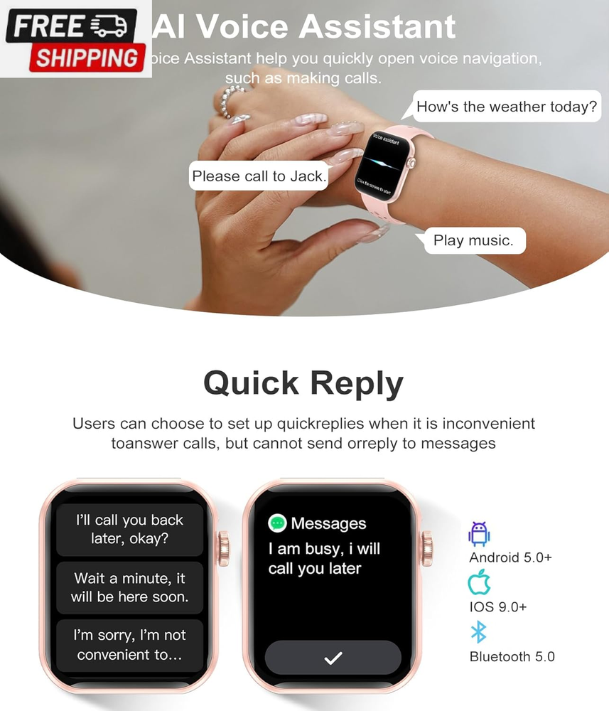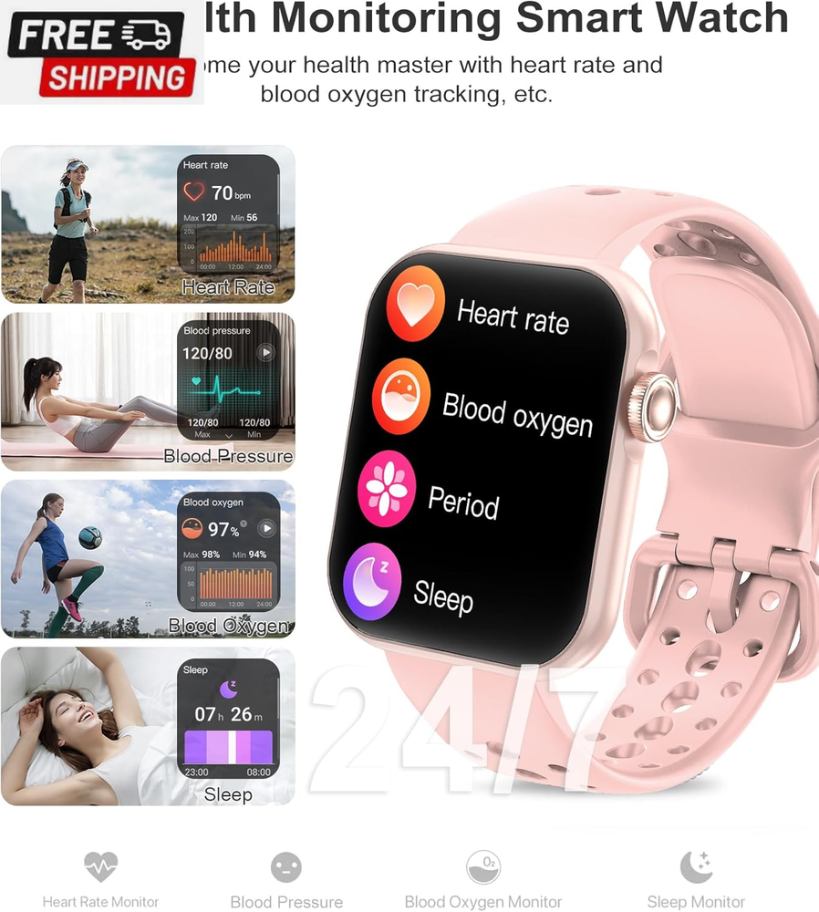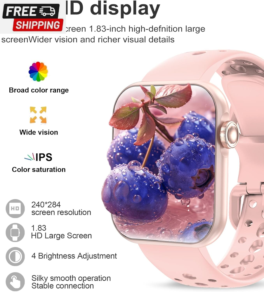 Smart Watch, 1.83" HD Smart Watches for Women, Fitness Tracker Watch with Heart Rate/Sleep Monitor/Spo2, 100+ Sports, IP67 Waterproof Smartwatch with Bluetooth 5.2 for Android Iphone, Pink Shipping Fast shipping is very important for us. Our standard US shipping service is FREE. Your order will be shipped within 2-3 business days upon full payment received. Your order will be delivered within 2-3 business days after the handling time. We only ship to the confirmed PayPal address. We reserve the right to cancel any order for any reason at any time. We are not responsible for undeliverable addresses. Returns and payment RETURNS ARE NOT ACCEPTED To prevent arbitrary returns, we're closing the Returns Option. If you have a product you'd like to return or have a problem with, I'd still be happy to assist you. Returns of products that cannot be reused after being opened are not accepted. (Personal Use Products, Medicines, Creams, Powders and Spillables, Personal Care and Health Products, Beverages, etc.) FeedBack Your feedback very important to us, after you get your package and you are satisfied with our service please leave us positive feedback If you have any problem with your order / any questions please before leave any type of feedback For any questions, using eBay contact system Please visit our eBay store to check out other items for sale! Thank you for shopping at our store.