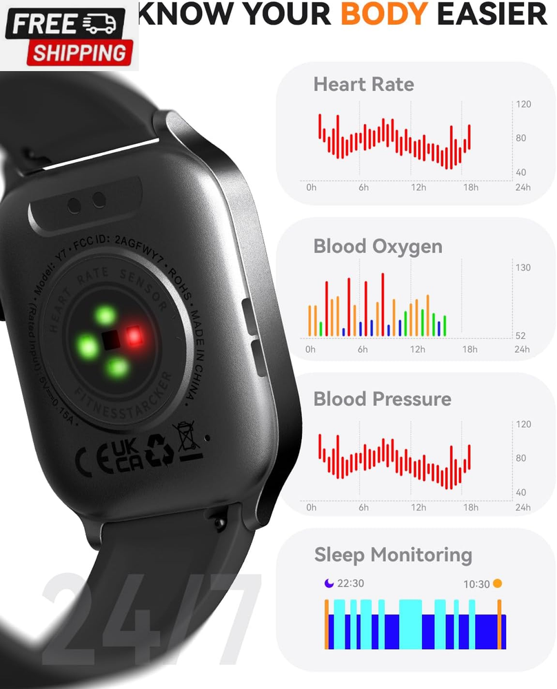 Fast Shipping On All Items 30 Days Money Guarantee Customer Support Excellent Service 100% Satisfaction Satisfaction Guaranteed Smart Watch for Men Women- Answer/Make Call, 2024 IP68 Waterproof Fitness Tracker Watch with Heart Rate Monitor Sleep Step Counter Activity Smartwatch for Samsung Andriod Iphone Ios Compatible Specification Item model number Y7 Whats in the box Charging Cable*1, Smart watch*1, User Manual*1 Connectivity technologies Bluetooth Battery Cell Composition Lithium Polymer Memory Storage Capacity 64 MB Country of Origin Hong Kong Battery Capacity 270 Milliamp Hours Operating System RTOS Brand paybay Batteries 1 9V batteries required. (included) Special features Phone Call, Notifications Screen Size 1.83 Inches Package Dimensions 10.71 x 3.46 x 0.67 inches Manufacturer Paybay Item Weight 3.52 ounces Connectivity Technology Bluetooth Standing screen display size 1.83 Inches Special Feature Phone Call, Notifications GPS No GPS Color Black Shape Square OS RTOS Size 1.83 Item Description Stable Bluetooth Calls: Equipped with the latest Bluetooth 5.3 technology, this smart watch for men and women delivers superior call quality, extended range, and reduced power consumption. Stay connected with vibration alerts for messages, calls, and app notifications (Facebook, WhatsApp, Instagram, SMS, etc.) Large HD Display with Customizable Watchfaces: Smartwatch with a bright 1.83-inch TFT LCD (up to 550 nits) ensures easy viewing, even in sunlight. Choose from over 150 pre-designed watch faces or personalize your dial with your favorite images to match your style 24/7 Activity Monitoring: This fitness tracker records your steps, distance, calories, and rest patterns. Sync your data to view daily progress and personalized activity insights through the companion app 12+ Sports Modes and Waterproof Protection: The sports watch tracks your fitness progress with over 112 sports modes, including running, walking, hiking, and more. With an IP68 waterproof rating, you can wear your smartwatch confidently during workouts, washing hands, or everyday activities Widely Compatible and Long Battery Life: The smart watch for Andriod phones and iPhones works seamlessly with iOS 9.0+ and Android 6.0+ devices, including popular models from Apple, Samsung, Google, Microsoft, Motorola, Huawei, Xiaomi, HTC, and more. A full charge (2.5 hours) provides up to 7 days of typical use or 30 days of standby time Versatile Daily Tools: Enjoy a range of features by the digital watch including Weather, Music Control, Find My Phone, Sedentary Reminder, Remote Photography, Rehydration Reminder, Flashlight, SOS, Games, Calculator and more 12-Month War-ranty and Dedicated Support: Enjoy peace of mind with our 12-month war-ranty, offering re-funds or re-placements. Your satisfaction is our top priority. Message our support team for any questions or suggestions regarding our smartwatches Product Description Sleep tracking is inaccurate To ensure accurate sleep tracking, users should complete their profile (height, weight) in the app's "My Profile" section. The watch begins tracking after an hour of inactivity. Movement before sleep may affect accuracy. Step count is incorrect The watch tracks steps based on arm swings. If arms don’t move naturally (e.g., carrying items or pushing a stroller), step count may be inaccurate. Completing the app profile (height, weight) improves accuracy. Weather data is inaccurate The weather function depends on the phone’s location services. Users must enable location permissions and allow weather data access in the app. Without these, or if the location is inaccurate, the weather data may be incorrect. About us We offer the best prices around on high quality products. Our E-store includes media such as books, movies, music and games while offering electronics, toys, sporting apparel, clothing, tools, general home, garden items and more. Shipping We are always working hard to ensure your package arrives as soon as possible. Please understand that some factors like weather, high postal traffic, and the performance of shipping companies are outside of our control. We offer free shipping to the lower 48 states and ship within 2-3 business days of payment, usually sooner. We do not accept P.O. Boxes. Please provide a physical address. For shipping outside of the continental USA, we only use eBay's Global Shipping Program.The item is shipped to KY and then sent to the rest of the world. International customers are responsible for all duties and taxes. Continue to check out to calculate costs for shipping the item to your country. Messages regarding eBay's Global Shipping Program MUST be directed at eBay EXCLUSIVELY. Returns We offer a 30-Day Return Policy on items in which you are not completely satisfied with. You have the option of a full-refund or an exchange of the item. No returns are available on items shipped outside of the USA Satisfaction We try over very best to make sure every customer is completely satisfied. If there's a problem, message us! We're happy to help. Payment Options Shop With Confidence