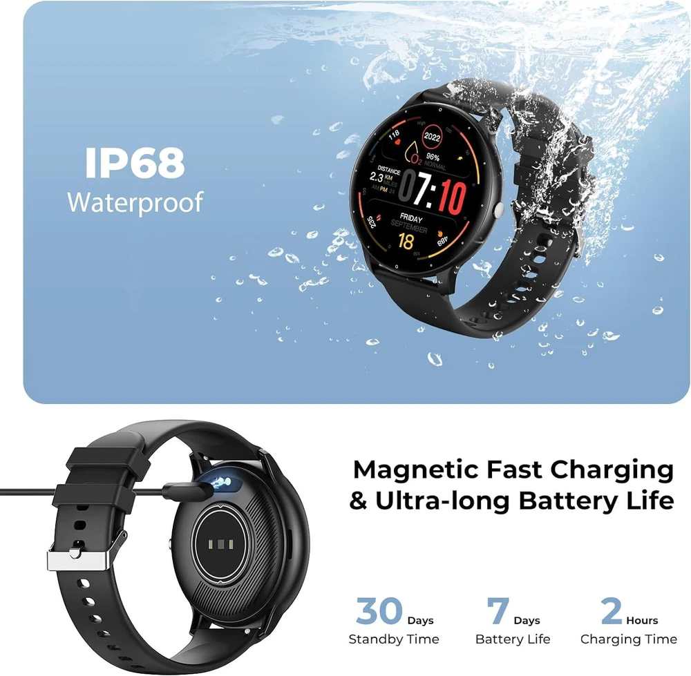 $ 3.7Waterproof Smart Watch for Men Women with Heart Rate Monitor and Fitness Tracker Bluetooth