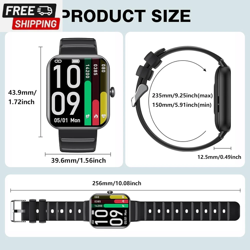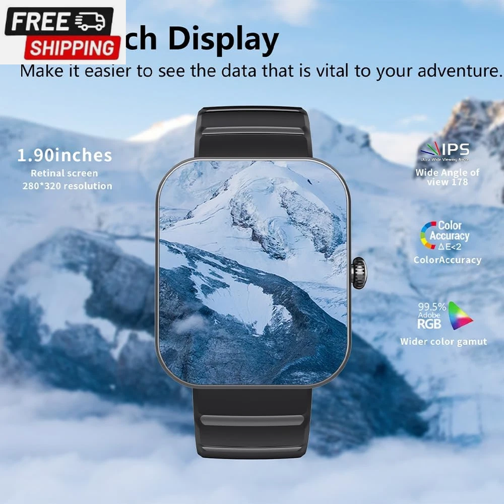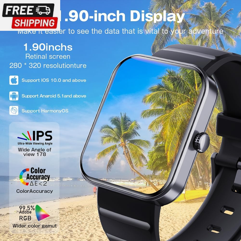 This smartwatch is a game-changer! The 1.9" HD screen is crisp and easy to read, while the fitness tracking features like heart rate, blood oxygen, and sleep monitoring keep me on top of my health. It’s Bluetooth-compatible, IP67 waterproof, and the battery lasts surprisingly long. The fast shipping and excellent customer service make it even better! Super satisfied with this purchase—highly recommend for anyone looking for a stylish, functional smartwatch.