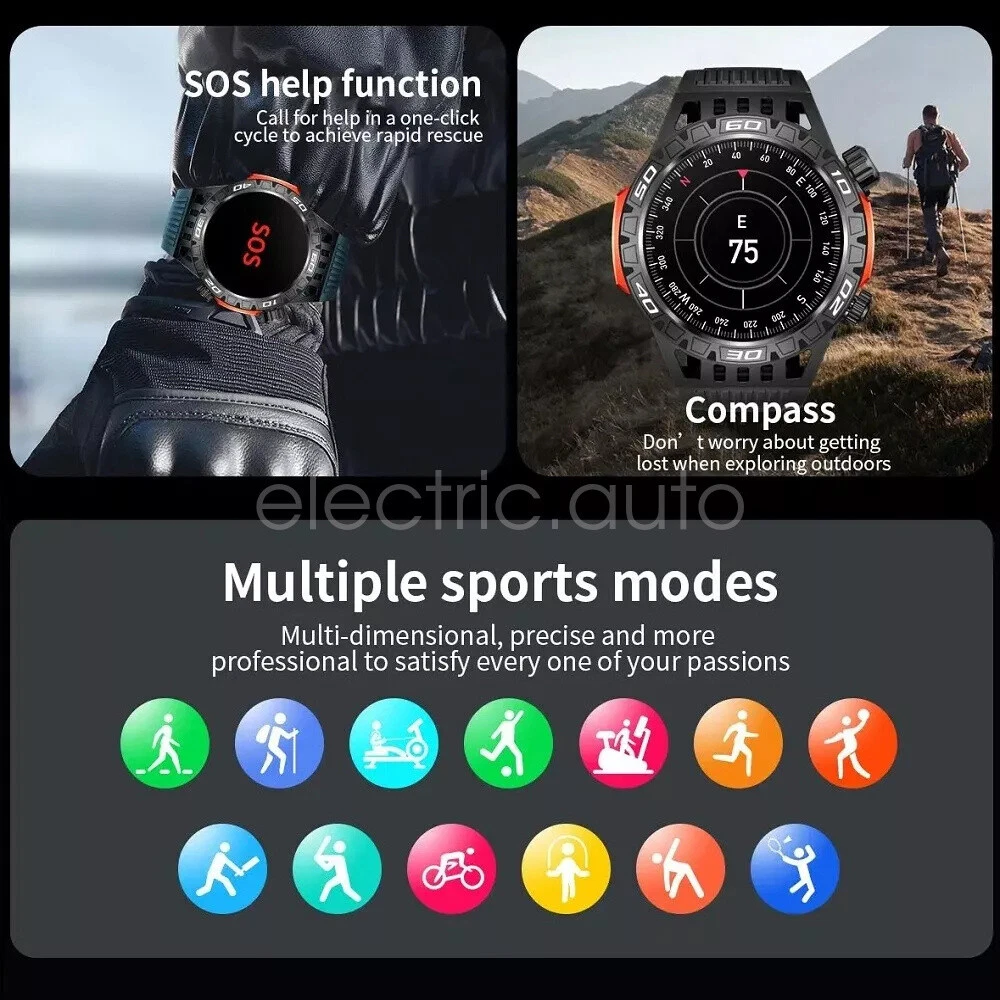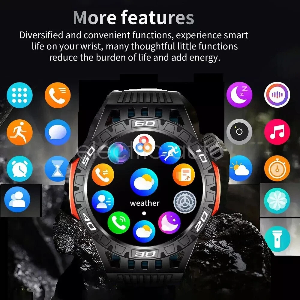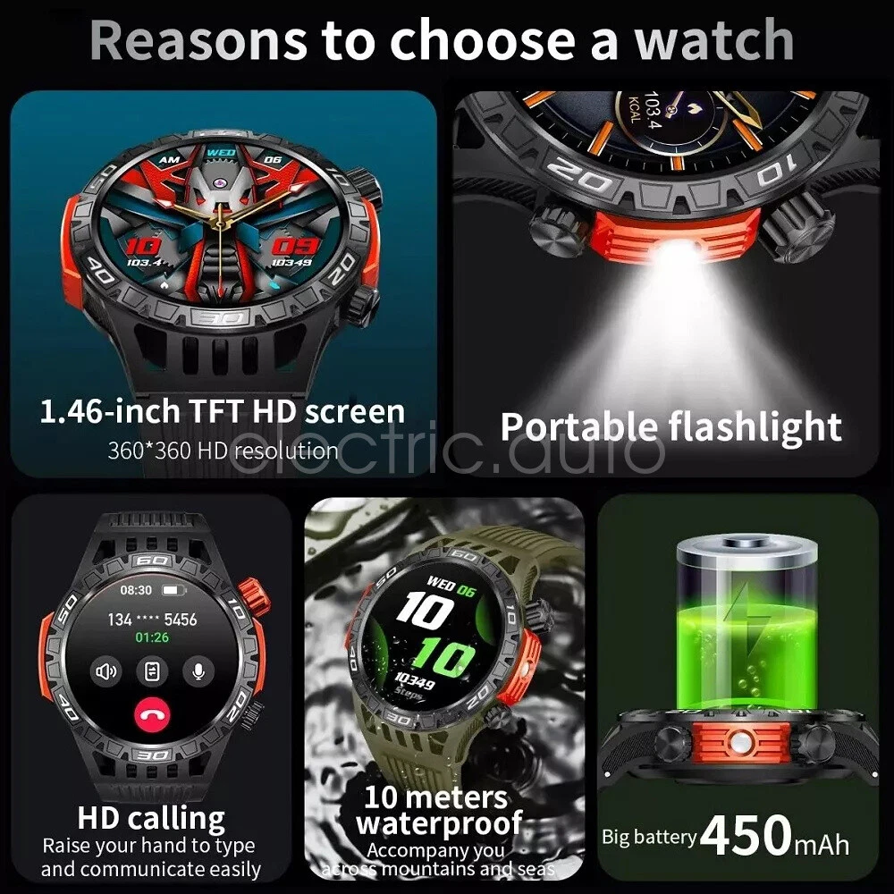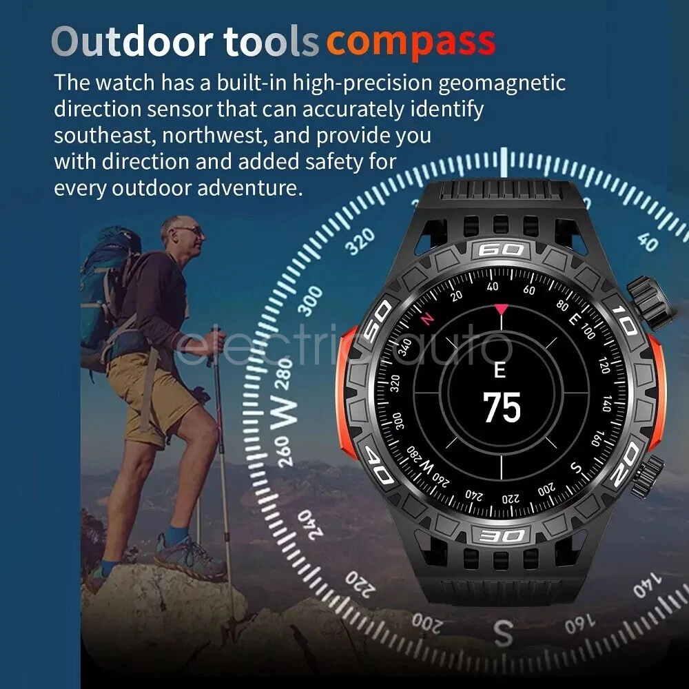 Product View Detail Features: 1. There is a high brightness LED flashlight on the side of the watch, which can help you see the environment clearly in unlit places. 2. Bluetooth Calling Function. After the watch is connected to your cell phone, you can use the watch to make or receive calls, and you can also set the SOS emergency call button. 3. More than 200 free online watches can be downloaded and used at will. 4.Heart rate, blood oxygen and blood pressure detection, sleep monitoring. 5. 100+ exercise modes, record calories, distance and exercise track. 6. Weather, message push, music control, stopwatch, timer, alarm, business card, calendar, calculator, mobile search, camera and other functions. 7. 450mAh large battery, the use time is more than 30% longer than ordinary smart watches. 8. Special composite material, closed by aluminum alloy metal, makes it more durable. Supports use in harsh environmental conditions, such as heat-resistant, cold-resistant, moisture-proof and water-resistant, confident in a variety of harsh conditions, perfect for wearing in outdoor activities. Specification: Product Name: Smart Watch Screen size: 1.46 inches Screen resolution: 360*360 System requirements: Android 5.1 or above, IOS 8.2 or above Bluetooth version: 5.0 Operation mode: touch control Physical buttons: 2 (with encoder) Watch APP: FitCloudPro Battery capacity: 450mah Standby time: 30 days Battery life: 5-7 days (user usage method and frequency situation) Charging method: magnetic charging Charging time: 2 hours Waterproof rating: IP68 Case material: zinc alloy Strap material: steel strap/silicone (optional) Strap width: 22mm (removable and replaceable) Case size: 48.6*13.5mm Language support: Chinese, English, German, French, Italian, Spanish, Polish, Belgian, Portuguese, Vietnamese Package Included: 1*smart watch 1*USB cable 1*User Manual Attention: 1. Wearable devices monitor human activities through electronic sensors. They are at the level of consumer electronics. Some deviation is normal. The health test results of the watch are for reference only and cannot be compared with medical devices. When the watch is placed on the surface of an object, there will be test results such as heart rate/blood pressure. This is normal and not a product defect. 2. As the firmware is updated, the user interface will be updated accordingly. Pictures are for reference only, everything is subject to the actual product. 3. This product is an electronic product. Do not use this product to shower hot water. Do not expose it to high temperatures. 4. Please download the APP and bind the watch first, do not use your cell phone Bluetooth to connect the watch directly. If it is already connected, please remove the matching watch from the cell phone Bluetooth matching device. 5. Due to the difference of light and screen, the color of the item may be slightly different from the picture, thank you very much! Shipping Policy Payment Method Returns Policy Shipping Policy We only accept your Ebay Address ,Please Make sure it's 100% right. The items you ordered will be shipped out in 1 business day by Hong Kong Air Mail when your payment is clear. The arrival time is 5-20 business days to United States usually. We maintain high standards of excellence and strive for 100% customer satisfaction! Feedback is very important to us. We request that you contact us immediately BEFORE you give us neutralor negative feedback, so that we can satisfactorily address your concerns. Payment Method Returns Policy Copyright © 2017 DataCaciques Smart Watch LED Light GPS Track Compass Bluetooth Call Waterproof Sport Watch Home Payment Shipping About us Contact us Store Categories Store Categories Consumer Electronics PC&Tablet Accessories Mobile Phone Accessories Sound&Vision Headphones Watches Camera Led Lights Others Auto Car Accessories Lights Others Motorcycle Motor Accessories Lights Others Headlamp&Torch Others Other Product View Detail Features: 1. There is a high brightness LED flashlight on the side of the watch, which can help you see the environment clearly in unlit places. 2. Bluetooth Calling Function. After the watch is connected to your cell phone, you can use the watch to make or receive calls, and you can also set the SOS emergency call button. 3. More than 200 free online watches can be downloaded and used at will. 4.Heart rate, blood oxygen and blood pressure detection, sleep monitoring. 5. 100+ exercise modes, record calories, distance and exercise track. 6. Weather, message push, music control, stopwatch, timer, alarm, business card, calendar, calculator, mobile search, camera and other functions. 7. 450mAh large battery, the use time is more than 30% longer than ordinary smart watches. 8. Special composite material, closed by aluminum alloy metal, makes it more durable. Supports use in harsh environmental conditions, such as heat-resistant, cold-resistant, moisture-proof and water-resistant, confident in a variety of harsh conditions, perfect for wearing in outdoor activities. Specification: Product Name: Smart Watch Screen size: 1.46 inches Screen resolution: 360*360 System requirements: Android 5.1 or above, IOS 8.2 or above Bluetooth version: 5.0 Operation mode: touch control Physical buttons: 2 (with encoder) Watch APP: FitCloudPro Battery capacity: 450mah Standby time: 30 days Battery life: 5-7 days (user usage method and frequency situation) Charging method: magnetic charging Charging time: 2 hours Waterproof rating: IP68 Case material: zinc alloy Strap material: steel strap/silicone (optional) Strap width: 22mm (removable and replaceable) Case size: 48.6*13.5mm Language support: Chinese, English, German, French, Italian, Spanish, Polish, Belgian, Portuguese, Vietnamese Package Included: 1*smart watch 1*USB cable 1*User Manual Attention: 1. Wearable devices monitor human activities through electronic sensors. They are at the level of consumer electronics. Some deviation is normal. The health test results of the