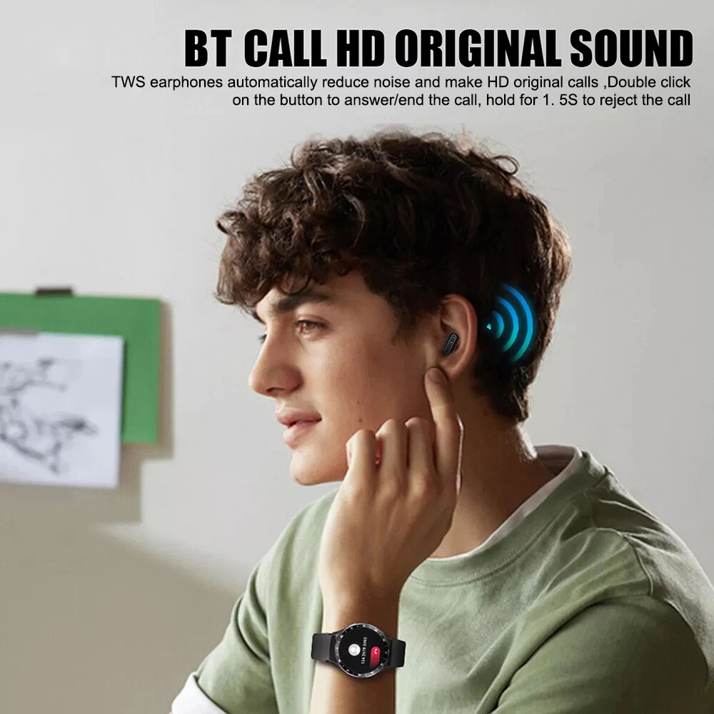 Store Categories Store Categories Other Smart Watch TWS Earbuds Headset 2 in 1 Premium Wireless Calling, Fitness Tracker Details Features: 1. Two in one new design: Smartwatch paired with TWS Bluetooth earphones, perfect combination of smartwatch and Bluetooth earphones. All metal steel dial, full of high-tech feel. 2. Large screen smartwatch: Equipped with a 1.39-inch large screen, super Retina high-definition display, 360 * 360 high-definition resolution, the smartwatch has higher color saturation and finer and clearer picture quality. You can use 10+watch dials and define your own theme. 3. Multi functional watch: Bluetooth calling, full touch, heart rate, shake and take photos, call reminder/reject, information storage, multi sport modes, weather, built-in NFC function make this watch a smart lock key for your home or office, so you no longer have to worry about forgetting your key when going out. 4. Main functions: Real-time vibration reminder, information reminder, alarm clock, finding wristbands, health monitoring, exercise recording (pedometer, calories, mileage), time, week, date. 5. Make/receive phone calls and support notifications: After connecting to Bluetooth, you can directly dial the phone number on the screen to answer the call. When your smartphone receives calls and messages (such as SMS, Skype, Facebook, Twitter, WhatsApp, Line, Viber), it pushes them to the TWS earbud watch. Make our lives more convenient and intelligent. 6. The application supports 26 languages: English, Simplified Chinese, Traditional Chinese, German, French, Arabic, Czech, Greek, Spanish, Japanese, Persian, Italian, Korean, Dutch, Polish, Portuguese, Russian, Finnish, Swedish, Thai, Hungarian, Slovak, Croatian, Albanian, Turkish, Ukrainian, Hindi 7. Watch language support: English, German, French, Arabic, Czech, Greek, Spanish, Persian, Italian, Dutch, Polish, Russian, Finnish, Swedish, Thai, Hungarian, Slovak, Croatian, Albanian, Turkish, Ukrainian, Hindi 22 languages. The function of the headphone button: 1. Press the button 4 times before pairing ----- switch between Chinese and English prompts 2. Press and hold for 2 seconds to turn on the device, press and hold for 1.5 seconds to reject calls, and press and hold for 3 seconds to turn off the device 3. Double click button ----- Answer/End call 4. 4 Click button ----- Wake up SIRI compatible 5. Double click button ----- Play/Pause 6. Three clicks on the left ear button: Previous track; Three clicks on the right ear button: Next track) 7. Restore headphones to factory settings: Press and hold the headphones for 8 seconds while they are turned off. (If the two ears cannot be paired, they can be restored to factory and re paired) Reminder: Heart rate, blood oxygen, and blood pressure are only reference values and cannot be used for medical purposes!!! Specifications: Product Name: Smart Watch Main control chip: 8762D Screen size: 1.39 inches Resolution: 360 * 360 Bluetooth version: 5.0 Waterproof grade: IP67 Standby time: 8-12 days Music duration: 4 hours Battery life: 3-5 days (depending on personal usage) Charging time: 1 hour (earphones) Charging time: 1.5 hours (watch) Charging method: Magnetic charging Earphone battery capacity: 25mAh Watch/Charging Cabin Battery Capacity: 240mAh Charging case function: can charge headphones 2-3 times Control method: Full screen touch+button press Application: FitCloudPro Compatible system: Android 4.4 and above; Compatible with iOS 8.0 and above versions Watch memory: 192KB RAM+1024KB ROM+128MB UI Flash Case Material: Glass Lens+Zinc Aluminum Alloy Strap material: silicone/steel strap (optional) Package includes: 1 * 2-in-1 smartwatch 1 * User Manual 1 * Screen protector film 1 * USB magnetic charging cable Note: Due to manual measurement, please allow for an error of 1-3cm. Before bidding, please make sure you don't mind! Due to differences in monitors, images may not reflect the actual color of the product. thank you! Shipping Policy Payment Method Returns Policy Shipping Policy Payment Method This is the description of Payment Method. Do not dismiss your dream. To be without dream is to be without hope. To be without hope is to be without purpose. Do not run through your life so fast that you forget not only where you have been, but also where you are going. Life is not race, but a journey to be savored each step of the way. Returns Policy This is the description of Returns Policy. Do not dismiss your dream. To be without dream is to be without hope. To be without hope is to be without purpose. Do not run through your life so fast that you forget not only where you have been, but also where you are going. Life is not race, but a journey to be savored each step of the way. Copyright©2017 DataCaciques Smart Watch TWS Earbuds Headset 2 in 1 Premium Wireless Calling, Fitness Tracker Item Description Features: 1. Two in one new design: Smartwatch paired with TWS Bluetooth earphones, perfect combination of smartwatch and Bluetooth earphones. All metal steel dial, full of high-tech feel. 2. Large screen smartwatch: Equipped with a 1.39-inch large screen, super Retina high-definition display, 360 * 360 high-definition resolution, the smartwatch has higher color saturation and finer and clearer picture quality. You can use 10+watch dials and define your own theme. 3. Multi functional watch: Bluetooth calling, full touch, heart rate, shake and take photos, call reminder/reject, information storage, multi sport modes, weather, built-in NFC function make this watch a smart lock key for your home or office, so you no longer have to worry about forgetting your key when going out. 4. Main functions: Real-time vibration reminder, information reminder, alarm clock, finding wristbands, health monitoring, exercise recording (pedometer, calories, mileage), time, week, date. 5. Make/receive phone calls and support notifications: After connecting to Bluetooth, you can directly dial the phone number on the screen to answer the