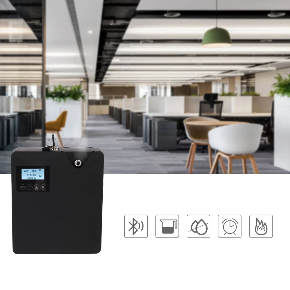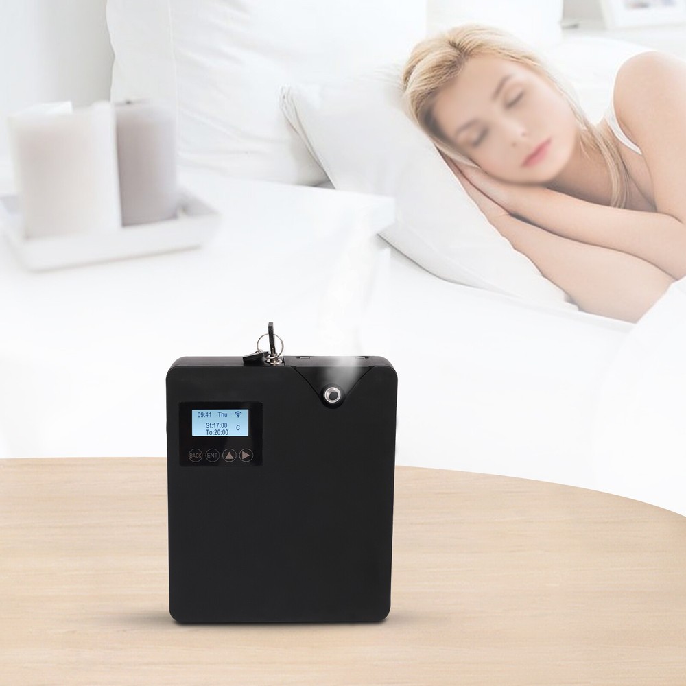 Scent Machine Air Purifier Smart Waterless Essential Oil Diffuser Remote Control Description Difficulty falling and staying asleep is a very common complaint. Relaxing your mind and body is a great way to solve your sleep problems. Then this waterless essential oil diffuser comes in handy, diffusing the aroma of essential oils and the calming scent helps you relax and prepare for a night of deep rest! Key Features Relaxing Mind and Body: The benefits of aromatherapy are mental as well as physical. It can improve mood, enhance concentration, and can help relax and promote good sleep. Two-fluid Technology: It uses two-fluid technology to fully atomize the essential oil and release the ingredients in the oil for a better fragrance. And it can fully atomize the different viscosity of essential oils on the market, and can evenly release the efficacy of essential oil components. Large Capacity: The large capacity of 300ml/ 0.079gal enables you to directly fill the essential oil bottle in the machine, thus avoiding frequent refilling of essential oils and saving time and effort. Less Noise: The noise of this product in use is less than 30dba, which is very small and can give you a quiet environment. Timing Function: It has a timer function that you can set freely, and it can work in cycles by default. Aroma Filled House: Its fragrance can cover 300-400m ³/ 10594-14126ft ³, and you can also connect it to the fresh air pipe to make your room full of relaxing fragrance! Easy to Use: You can use the mobile APP to remotely control or use the buttons on the machine to control according to your convenience. Decorative Function: The simple design and the black color make it a great decorative piece that can blend in with different home decor styles and add color to the home. Compact and Lightweight: Its proper size(17*8.05*20.6cm/ 6.69*3.17*8.11in) and weight(0.9kg/ 1.98lbs), and its top handle and wall-mountable design allow you to easily put it in any position. Good Material: It is made of high-quality PP, waterproof, durable, and not easy to deform, so you can use it for a long time. Easy to Clean: The surface of this product is smooth and flat, which is easy to clean. You just need to wipe it with a wet rag. Customer Service: We aim to provide quality products and services. If you have any problems, please feel free to contact us. We will reply and solve the problem for you as soon as possible. Details Anti-slip Pads: It has anti-slip pads on the bottom so that it will not easily shake and fall over. Essential Oil Bottle: We provide you with an essential oil bottle so that you don't have to prepare extra, and are committed to providing you with the most convenient experience. Built-in Fan: It has a fan design inside to better atomize the essential oil and bring you a different experience. Application It is suitable for a living room, bedroom, office, hotel lobby, bar, large shopping mall, Western restaurant, gym, beauty salon, photo studio, clothing store, pet shop, etc. The scope of application the is 300-400m³/ 10594-14126ft³. Specification Function: Automatic Fragrance Sprayer Color: Black Style: Minimalist Shape: Square Material: PP Placement: Wall-mounted Type: Fogging Type Power Mode: DC Number of Fog Outlets: 1 Operation Mode: Mechanical Remote Control Dual Use Water Shortage and Power Failure Protection: Not Supported Timing Function: > 8 hours Applicable Area: ≥60㎡/ 646ft² Coverage: 300-400m³/ 10594-14126ft³ Noise: ≤30dba Power: 7.5W Rated Voltage: 12V Capacity: 300ml/ 0.079gal Product Size: 17*8.05*20.6cm/ 6.69*3.17*8.11in Package Size: 32*27*14cm/ 12.6*10.63*5.51in Net Weight: 0.9kg/ 1.98lbs Gross Weight: 1.5kg/ 3.31lbs Package Included 1* Waterless Essential Oil Diffuser 1* Power Cable 1* Essential Oil Bottle 1* Hose 1* Chinese User's Manual 1* English APP Operation Manual Other Needed Accessories Notes 1.Please do not dump the equipment. 2.Please do not place the equipment where children can reach and use it. 3.Please do not use an unsafe power supply or plug. 4.Please do not place the equipment close to fire or heat sources. Do not use or store flammable and explosive materials near the equipment. 5.Please do not place the equipment in a hot and humid environment. 6.Please do not use flammable, explosive, corrosive, or other hazardous solvents to work on the equipment. 7.Due to the two-fluid working technology, it is normal for the machine to generate noise, and will not affect its use. 8.Please allow the slight color difference caused by the shooting light and 1-3 cm error due to manual measurement, and make sure you do not mind before ordering. Payment Delivery details Terms of sales About us Contact us Payment We accept ebay payment 。 Fees such as import duties, taxes are not included in the item price or shipping costs. These charges are the buyer's responsibility. Delivery details Shipping: 2-9 working days to: USA Terms of sales We maintain high standards of excellence and strive for hundred percent customer satisfaction. Feedback is very important to us. We hope that you contact us immediately before you give neutral or negative feedback, so that we can address your concerns. It is impossible to address issues if we do not know about them! About us Your satis faction is our ultimate goal. We work hard to earn your trust and future business. Our certified technicians have tested each item before shipping. The unit comes with 1 year limited warranty on all manufacturing defects. a) If you receive a defective item, you may return it or ask for a discount. Please contact us within 14 days after you receive the package. b) What you returned must be intact and in its original packaging as re? u. Customer is responsible for shipping costs of the returned item. c) We will cover the cost of shipping back t with the shipping rate indicated in the registration page. We will send you a new unit or refund the full payment you paid. Thank you. Contact us Business Hour Business