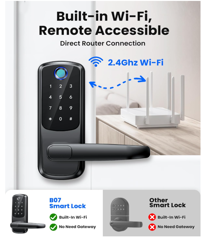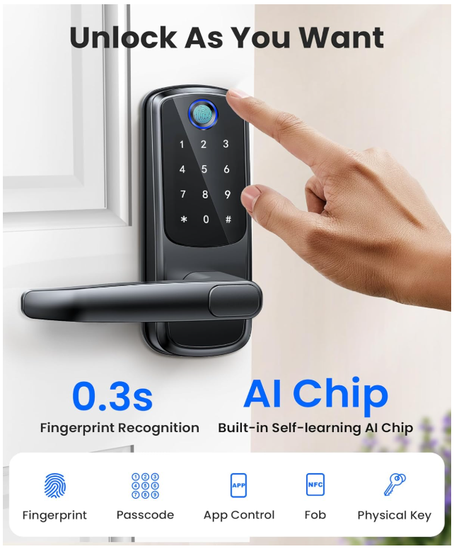 1. Absolutely love this smart lock! The WiFi connectivity is a game-changer—remote access, real-time updates, and temporary passwords make life so much easier. The fingerprint scanner works flawlessly, and having five unlocking methods means no more fumbling for keys. Super secure, stylish, and easy to install. Worth every penny for the convenience and peace of mind!