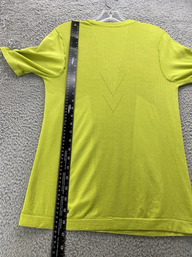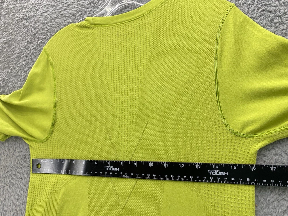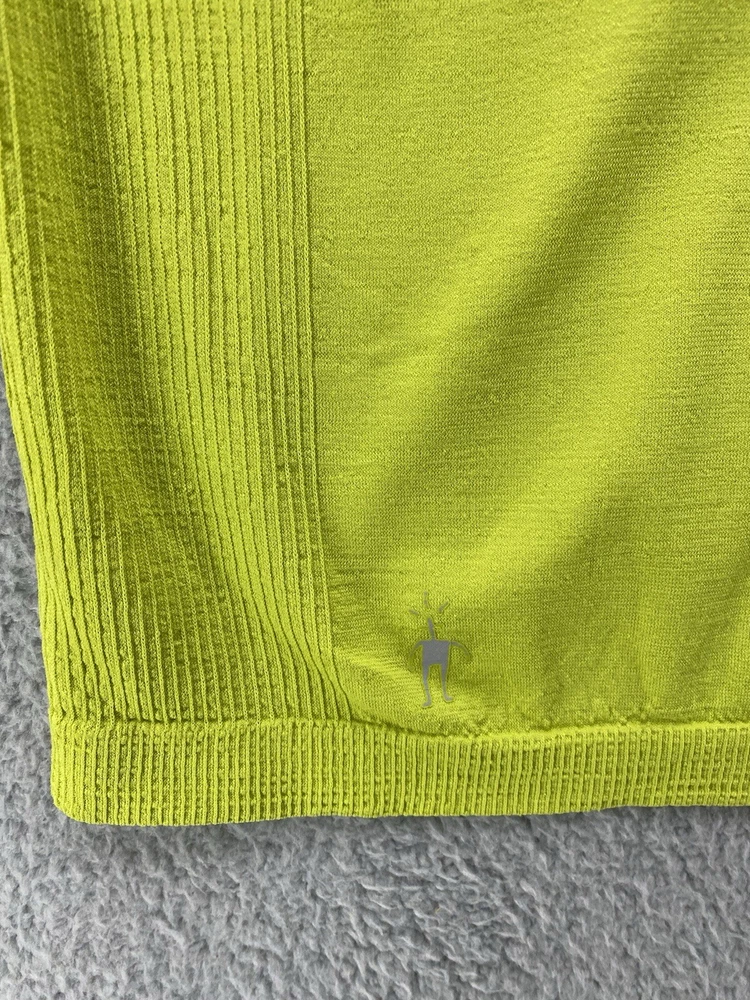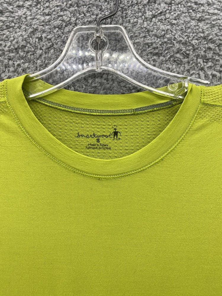 This SmartWool T-Shirt features a Crew Neck and Short Sleeve design in a bright green color. It is made from lightweight and breathable Jersey fabric, with moisture-wicking properties ideal for activities like walking and hiking. The T-Shirt is a size S, with an Athletic fit and a pullover style from the brand SmartWool. The specific features of this shirt make it suitable for travel and activewear purposes, offering comfort and performance for outdoor adventures.