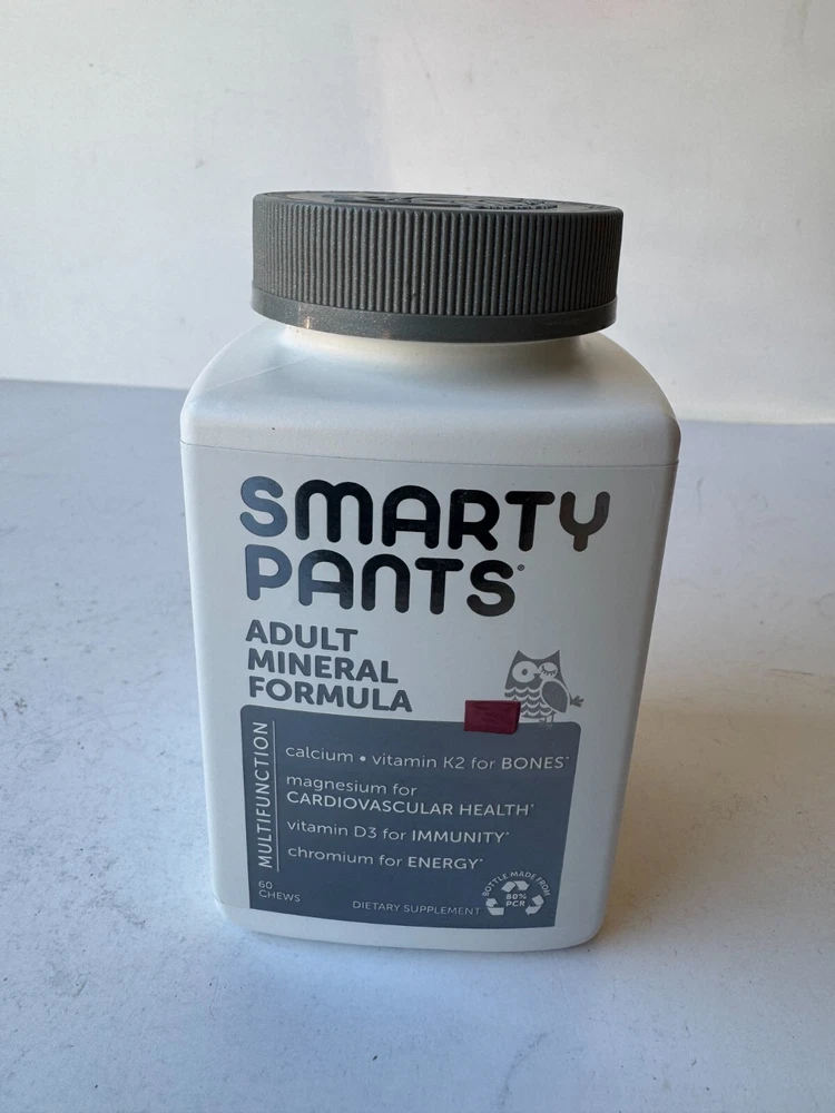 SmartyPants Adult Mineral Formula Unisex Mixed Berry Dietary Supplement 60 Chew Description SmartyPants Adult Mineral Formula Unisex Mixed Berry Dietary Supplement 60 Chew . Product Detail • Brand : SmartyPants • Formulation : Chewable • Flavor : Mixed Berry • Type : Dietary Supplement Please message me if you have any questions.