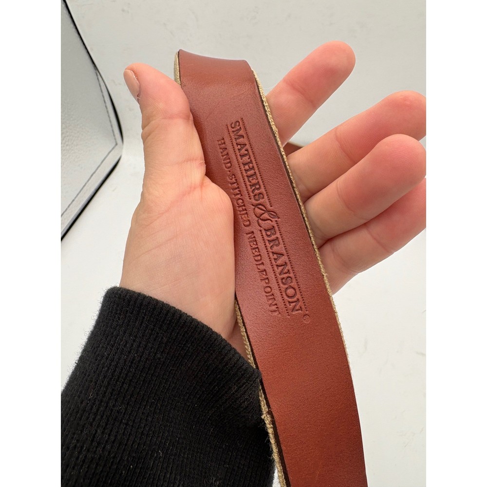$ 12.15Smathers & Branson 1914 Needlepoint Leather Belt Brass Buckle Size 38