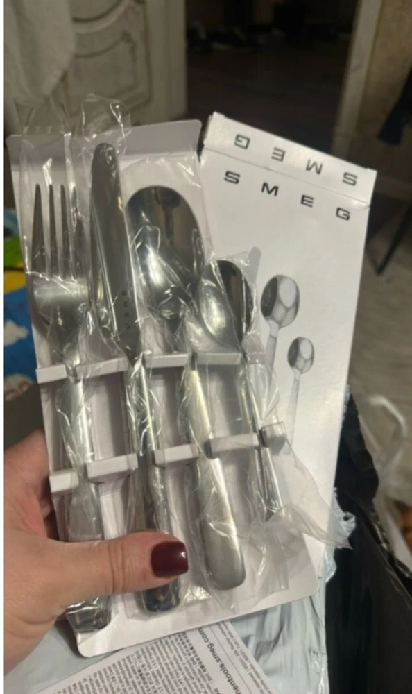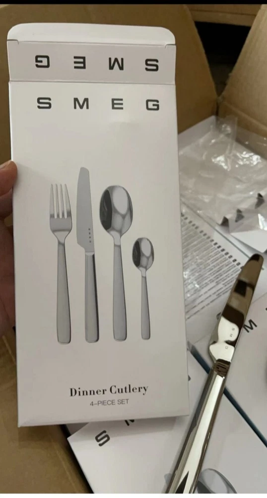 Product Description Smeg Dining Set Smeg 24-piece stainless steel set Features: • Stainless steel, grey color • Elegant, durable tableware • Set: Dining utensils Contents: • Large table spoon • Knife, fork, and tea spoon • Number of boxes: 6 • Total items: 24 Perfect for: • Every day use • Special dinners and events • Gifts for friends and family