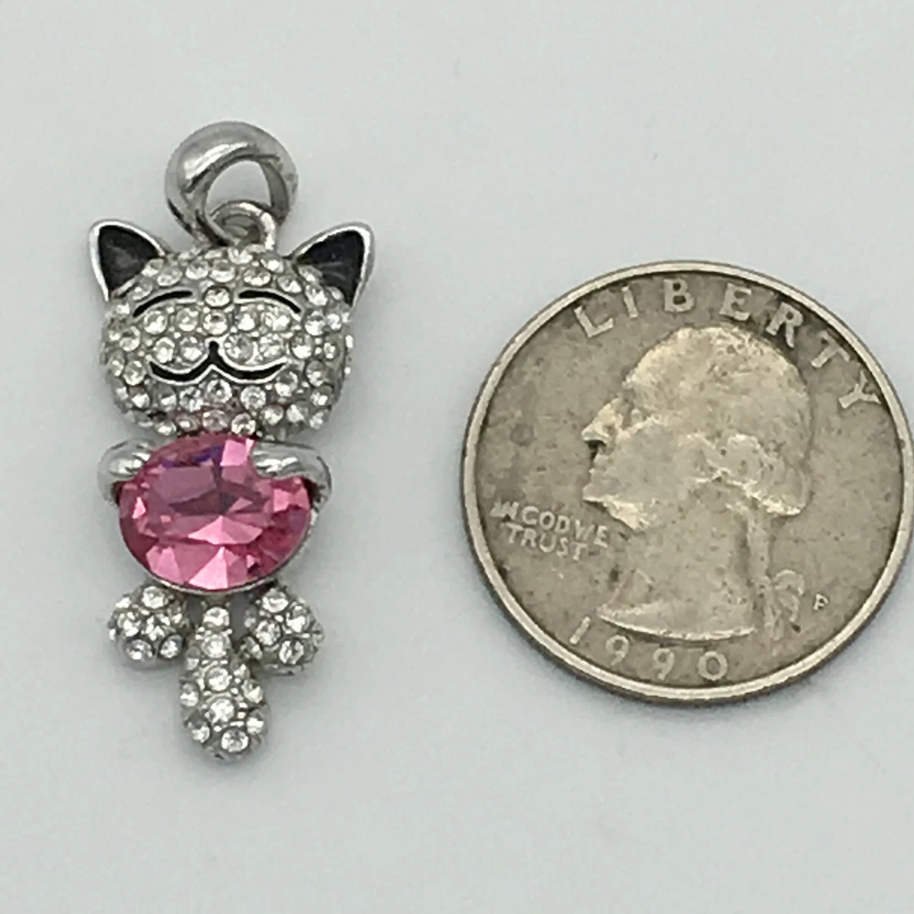 Smiling So Happy Cat 1.25" Pendant Pink Belly Rhinestones Silver Tone Marked N Pre-owned condition. No box or necklace. Pendant. Approx 1.25". See pics. No missing rhinestones. We always offer returns! Bid/Purchase with confidence! Item comes from smoke free – pet free home. Please ENLARGE pics to see closeup of condition and details of item. If you are not satisfied for any reason, please contact us so we can work it out . We follow all of Ebay’s policies and procedures. We want your positive feedback on all transactions. Please don’t give us negative or neutral feedback without contacting us so we can make it right. Returns only accepted for exact items with matching serial numbers where applicable. Email with any questions. See pictures. Items will be mailed per description. Sorry, no local pick ups available.