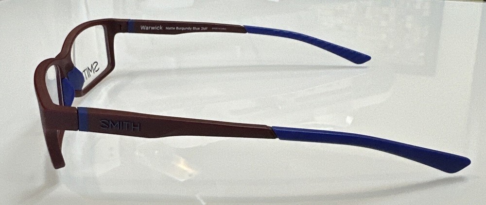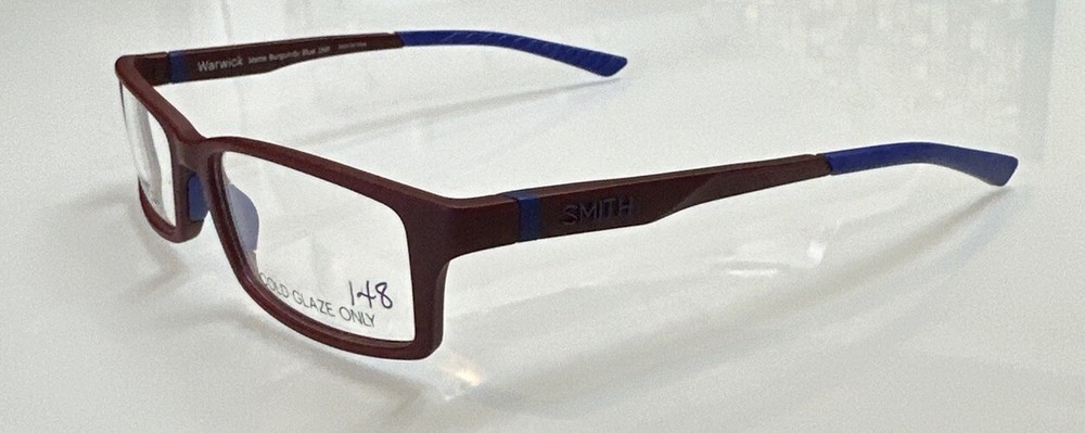 Brand: Smith Optics Model: Warwick Size: 53-17-140 Color: Burgundy/Blue Material: Plastic (Cold Glaze Only) Don't miss your opportunity to get this New, Stylish frame!