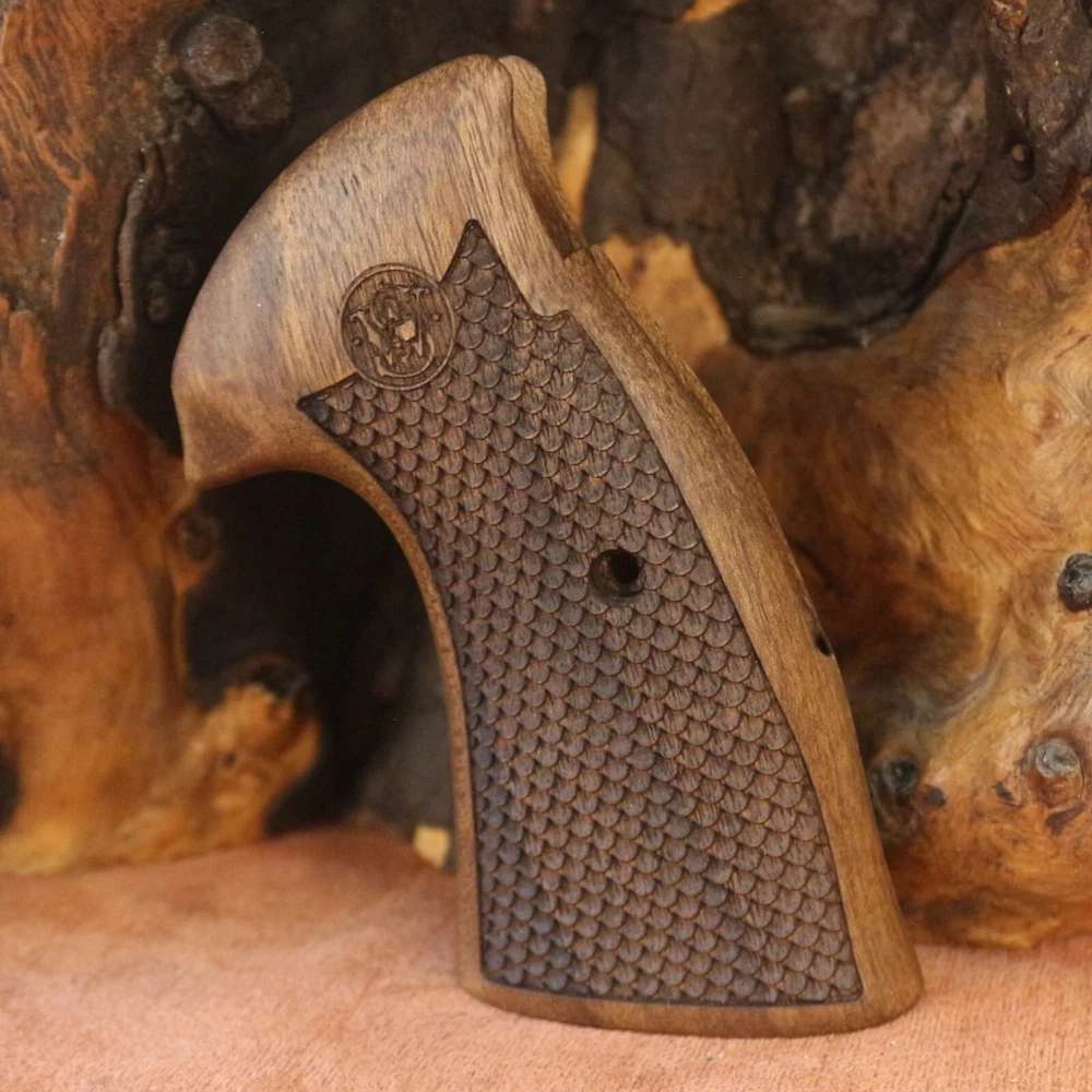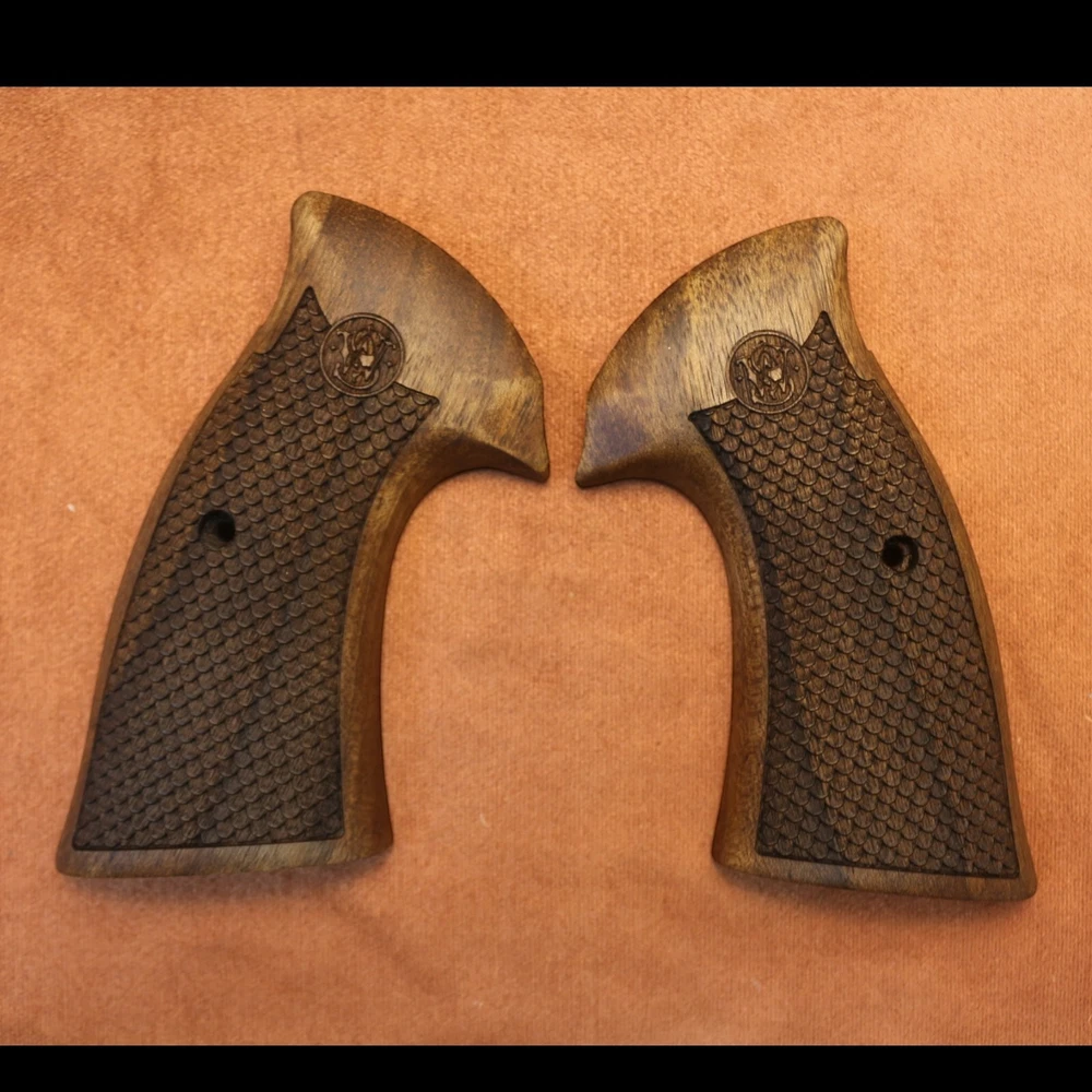 Smith Wesson K & L Frame Square Butt. Compatible Models: 3.57 MAGNUM (Models 10, 11, 12, 13, 14, 15, 16, 17, 18, 19, 45, 48, 53, 56, 64, 65, 66, 67, 68, 547, 581, 586, 617, 648, 681, 686 & .357 Classic Hunter) Note Not compatible with round butt stock type models. A set of interlocking screws and a set of pins are included to hold the wood tightly together. The wood material of our products is made of high quality Turkish walnut. All our products are guaranteed for 2 years. Within 60 days you can return the product free of charge.