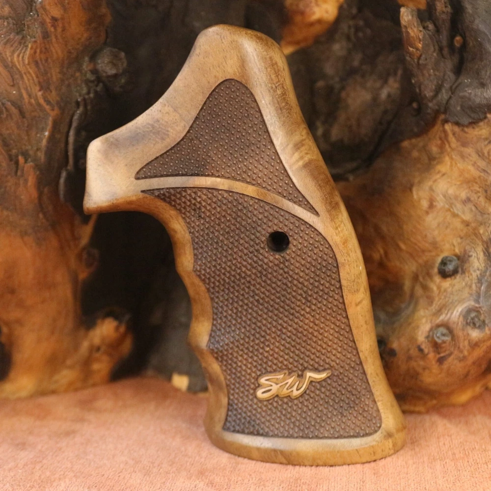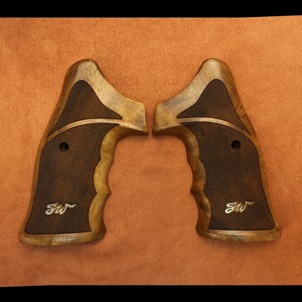 Smith Wesson K L X Frame Round Butt. Compatible Models: 3.57 MAGNUM (Models 10, 12, 13, 14, 15, 17, 19, 64, 65, 66, 67, 69, 242, 296, 386, 396, 460, 500, 520, 547, 586, 617, 619, 620, 646, 647, 648, 681, 686, 696, 986, Governor) Note Not compatible with Square butt stock type models. Our handles have a closed back. A set of interlocking screws and a set of pins are included to hold the wood tightly together. The wood material of our products is made of high quality Turkish walnut and our logos are made of silver. All our products are guaranteed for 2 years. Within 60 days you can return the product free of charge.