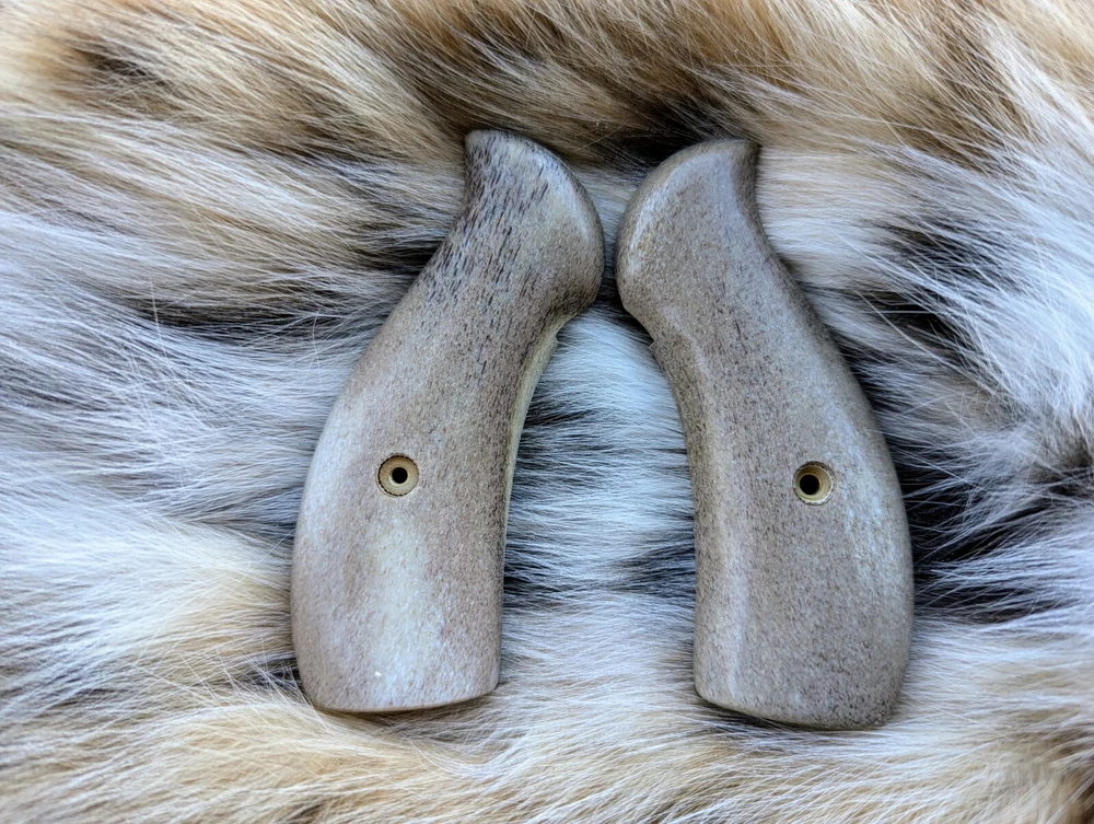 Smith and Wesson K/L Frame Round Butt Elk Antler Grips Superior Custom Build and Quality Handmade in USA Upgrade your Smith and Wesson revolver with our beautifully crafted elk antler grips, designed to fit K and L frame round butt models. Each pair showcases the unique character of naturally shed elk antlers, providing both aesthetic appeal and a comfortable grip for enhanced shooting performance. Compatibility and Model Information: While K and L frames are similar in size and fit, the N frame is built sturdier for magnum calibers. The easiest way to distinguish between K and N frames is through the model numbers: K Frame Model Numbers: 10, 11, 12, 13, 14, 15, 16, 17, 18, 19, 547, 586, 581, 617, 686, 696, 986, 55, 64, 67, 48 N Frame Model Numbers: 23, 25, 27, 28, 29, 625, 629, 627, 327, 325, 329, M&P R8, 57, 59, 624, 625, 626, 627, 629, Magna Classic Note: K, L, and X frames share the same grip specifications. Included with Purchase: Grip screw provided for easy installation. Historical Notes: The Smith and Wesson K-frame family represents iconic American double-action revolvers. The first K-frame was introduced in 1899, available in both round and square butt configurations. These revolvers served notably in both World Wars, with over 568,000 produced for the British armed forces during WWII. While the design and mechanisms have evolved, Smith and Wesson has maintained frame consistency and grip interchangeability, with most contemporary K-frames being round butts. Shipping & Guarantee: Fast 1 Business Day Turnaround: We know you're eager to enhance your pistol, so we ship all orders within 1 business day. Free Domestic Shipping: Shipping within the U.S. is on us, at no additional cost to you. Expedited Shipping Options: Need your grips faster? Choose an expedited shipping option at checkout. 30-Day Money-Back or Replacement Guarantee: All domestic orders include a 30-day money-back or replacement guarantee, with free return shipping covered by us. Lifetime Warranty: We stand by the quality and craftsmanship of our products, which is why we offer a Lifetime Warranty on all items. If your product experiences any defects in materials or workmanship at any point, we will repair or replace it free of charge. This warranty ensures you can purchase with confidence, knowing your item is built to last. For warranty claims, simply contact us, and we'll be happy to assist you. If you have any questions or special requests, please don't hesitate to reach out. We're happy to assist!