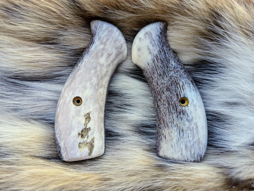 Smith and Wesson K/L Frame Round Butt Elk Antler Grips Superior Custom Build and Quality Handmade in USA Upgrade your Smith and Wesson revolver with our beautifully crafted elk antler grips, designed to fit K and L frame round butt models. Each pair showcases the unique character of naturally shed elk antlers, providing both aesthetic appeal and a comfortable grip for enhanced shooting performance. Compatibility and Model Information: While K and L frames are similar in size and fit, the N frame is built sturdier for magnum calibers. The easiest way to distinguish between K and N frames is through the model numbers: K Frame Model Numbers: 10, 11, 12, 13, 14, 15, 16, 17, 18, 19, 547, 586, 581, 617, 686, 696, 986, 55, 64, 67, 48 N Frame Model Numbers: 23, 25, 27, 28, 29, 625, 629, 627, 327, 325, 329, M&P R8, 57, 59, 624, 625, 626, 627, 629, Magna Classic Note: K, L, and X frames share the same grip specifications. Included with Purchase: Grip screw provided for easy installation. Historical Notes: The Smith and Wesson K-frame family represents iconic American double-action revolvers. The first K-frame was introduced in 1899, available in both round and square butt configurations. These revolvers served notably in both World Wars, with over 568,000 produced for the British armed forces during WWII. While the design and mechanisms have evolved, Smith and Wesson has maintained frame consistency and grip interchangeability, with most contemporary K-frames being round butts. Shipping & Guarantee: Fast 1 Business Day Turnaround: We know you're eager to enhance your pistol, so we ship all orders within 1 business day. Free Domestic Shipping: Shipping within the U.S. is on us, at no additional cost to you. Expedited Shipping Options: Need your grips faster? Choose an expedited shipping option at checkout. 30-Day Money-Back or Replacement Guarantee: All domestic orders include a 30-day money-back or replacement guarantee, with free return shipping covered by us. Lifetime Warranty: We stand by the quality and craftsmanship of our products, which is why we offer a Lifetime Warranty on all items. If your product experiences any defects in materials or workmanship at any point, we will repair or replace it free of charge. This warranty ensures you can purchase with confidence, knowing your item is built to last. For warranty claims, simply contact us, and we'll be happy to assist you. If you have any questions or special requests, please don't hesitate to reach out. We're happy to assist!
