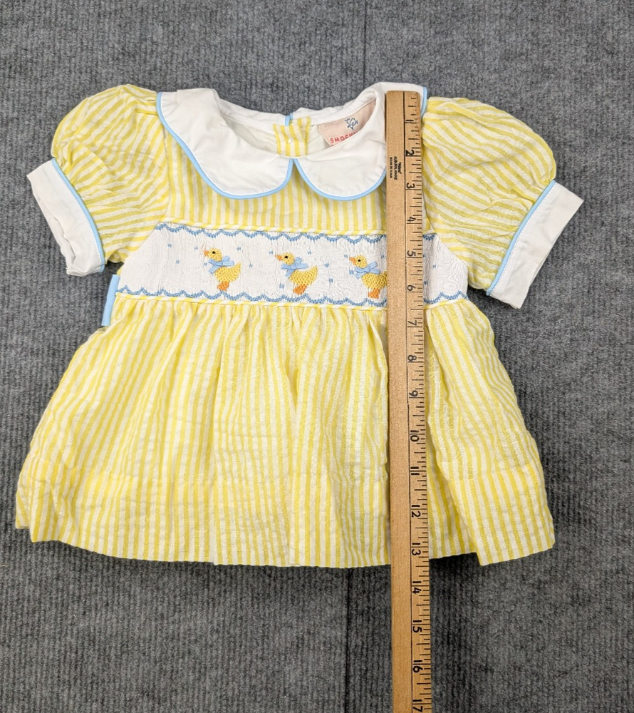 Brand: Smockingbird Department: Girls Type: Dress Size: 18 Months Color: Yellow / White Pattern: Striped / Smocked Ducks Material: 100% Cotton Sleeve Length: Short Sleeve Neckline: Peter Pan Collar Closure: Back Button Features: Smocked Panel, Embroidered Ducks, Lightweight, Classic Style Season: Spring, Summer, Easter