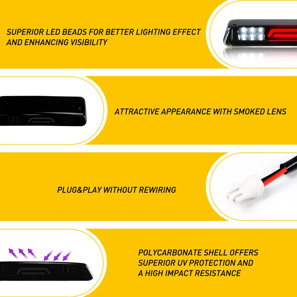 Application: 2007-2010 Ford Explorer Sport Trac 2004-2008 Ford F-150 2004-2008 Ford Lobo 2006-2008 Lincoln Mark LT Specifications: Packaging included: Brake light*1 waterproof cushion*1 Light Color:Red+White Lens color:Smoke shell Bulb Type:LED LED Function:Brake,Cargo Material:ABS Plastic Placement on Vehicle:Rear Fitment Type:Direct Replacement Waterproof Rate: IP67 Voltage: DC 10-30V Service Life: more than 50000h Features: *Water-Proof: The rain-proof design of brake light works even under extreme conditions such as rain and snow(IP67). Smoke shell Third 3rd Smoke Brake Light Fit For Ford Lincoln ,2006-2008 Mark LT Application: 2007-2010 Ford Explorer Sport Trac 2004-2008 Ford F-150 2004-2008 Ford Lobo 2006-2008 Lincoln Mark LT Specifications: Packaging included: Brake light*1 waterproof cushion*1 Light Color:Red+White Lens color:Smoke shell Bulb Type:LED LED Function:Brake,Cargo Material:ABS Plastic Placement on Vehicle:Rear Fitment Type:Direct Replacement Waterproof Rate: IP67 Voltage: DC 10-30V Service Life: more than 50000h Features: *Water-Proof: The rain-proof design of brake light works even under extreme conditions such as rain and snow(IP67). *High Brightness: New lighting source with the performance of high brightness,long lifetime(more than 50000h) and high realiability. *Superior Material: ABS material is used in our product for offering better quality. *Attractive Appearance: Fashionable appearance can make the whole car more attractive and beautiful. *Energy-saving: Plug-n-Play Operation,Low Power Consumption. Item Specifics Brand AUXITO Shell color smoked Light color white red Waterproof rating IP67 Features Water resistance, Bright and Power Saving Type Third Brake Light Mode Red Brake Light Material ABS Service life 50000h+ Placement on Vehicle rear Fitment Fit For Ford ,2006-2008 Lincoln Mark LT Universal Fitment No Manufacturer Warranty 2 Years Fitment Type Direct Replacement Easy & Hassle Free Returns Yes, Free Return Voltage DC 10-30V Payment We accept PayPal via eBay Secure Check-Out only. Immediate payment needs to be processed for items with Add to Cart option so that any promotional discounts can be applied to your order immediately. Shipping 1 .We do everything we can to ship your orders out as soon as possible. 2. Shipping and Handling: We process orders within two business day after the payment was clear. Returns Our 30-day Satisfaction Guarantee assures our customers that they will receive all orders promptly and exactly as described. In addition, it allows customers to return new and unused products in their original factory condition for any reason within 30 days from the date of purchase. 1. All returns must be pre-approved by AUXITO and have a return merchandise authorization(RMA) number. Unauthorized returns will not be accepted. 2. Buyers are responsible for appropriate packing, returning shipping cost, insurance and returning the item in "new" condition. Used items will not be accepted for return. 3. We will replace the returning item with an identical item, issue a full store credit or a full refund. Contact Us Our Working Time:(GMT+8)Monday to Friday,9:00-18:00. For inquires and customer support, please send your email via ebay email system. All emails will be responded to within 24 hours during business days. Feedbacks 1. We appreciate your business and strived to improve our customer service and our commitment to quality. 2. We will leave a positive feedback immediately after payment is received. We appreciate a positive feedback as much as you do. 3. If for some reason there is any issue with the purchase, please contact us prior to leaving feedback, and we will be glad to work with you to have it resolved. DESCRIPTION PAYMENT SHIPPING RETURN POLICY CONTACT US Hot Item 4" Red Truck Long Performance High Flow Cold Air Intake Cone Dry Filter Cotton USD 26.59 Waterproof Motorcycle Handlebar Dual USB Phone Charger Cigarette Lighter Socket USD 12.34 146PCS For Toyota RAV4 Fender Door Hood Bumper Trim Clip Retainer Fastener Kit USD 10.92 190 PCS Bumper Fender Moulding Side Garnish Grille Retainer Clip ABS Various USD 10.44 8X Amber/White 6LED Car Truck Emergency Beacon Warning Hazard Flash Strobe Light USD 21.99 Hot Item 190 PCS Bumper Fender Moulding Side Garnish Grille Retainer Clip ABS Various USD 10.44 Waterproof Motorcycle Handlebar Dual USB Phone Charger Cigarette Lighter Socket USD 12.34 8X Amber/White 6LED Car Truck Emergency Beacon Warning Hazard Flash Strobe Light USD 21.99 146PCS For Toyota RAV4 Fender Door Hood Bumper Trim Clip Retainer Fastener Kit USD 10.92 4" Red Truck Long Performance High Flow Cold Air Intake Cone Dry Filter Cotton USD 26.59 Smoke shell Third 3rd Smoke Brake Light Fit For Ford Lincoln ,2006-2008 Mark LT Application: 2007-2010 Ford Explorer Sport Trac 2004-2008 Ford F-150 2004-2008 Ford Lobo 2006-2008 Lincoln Mark LT Specifications: Packaging included: Brake light*1 waterproof cushion*1 Light Color:Red+White Lens color:Smoke shell Bulb Type:LED LED Function:Brake,Cargo Material:ABS Plastic Placement on Vehicle:Rear Fitment Type:Direct Replacement Waterproof Rate: IP67 Voltage: DC 10-30V Service Life: more than 50000h Features: *Water-Proof: The rain-proof design of brake light works even under extreme conditions such as rain and snow(IP67). *High Brightness: New lighting source with the performance of high brightness,long lifetime(more than 50000h) and high realiability. *Superior Material: ABS material is used in our product for offering better quality. *Attractive Appearance: Fashionable appearance can make the whole car more attractive and beautiful. *Energy-saving: Plug-n-Play Operation,Low Power Consumption. Payment We accept PayPal via eBay Secure Check-Out only. Immediate payment needs to be processed for items with Add to Cart option so that any promotional discounts can be applied to your order immediately. Shipping 1 .We do everything we can to ship your orders out as soon as possible. 2. Shipping and Handl