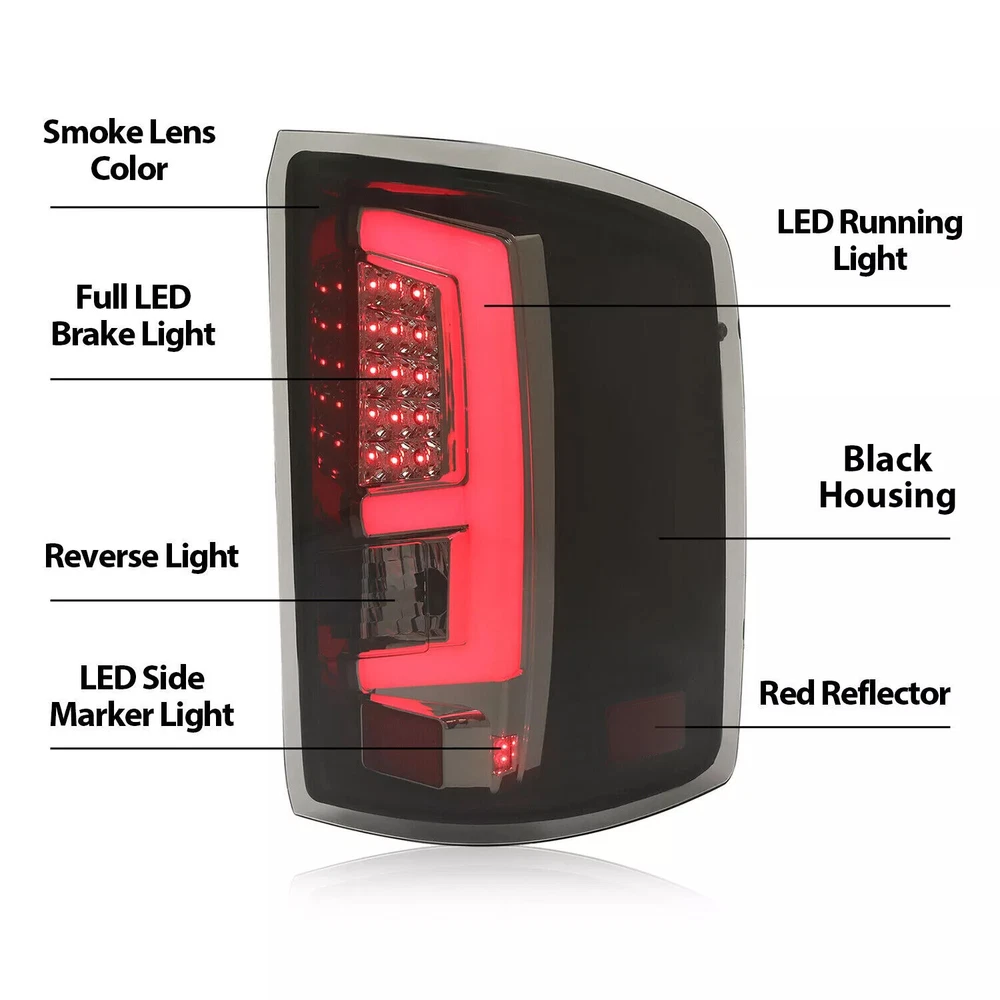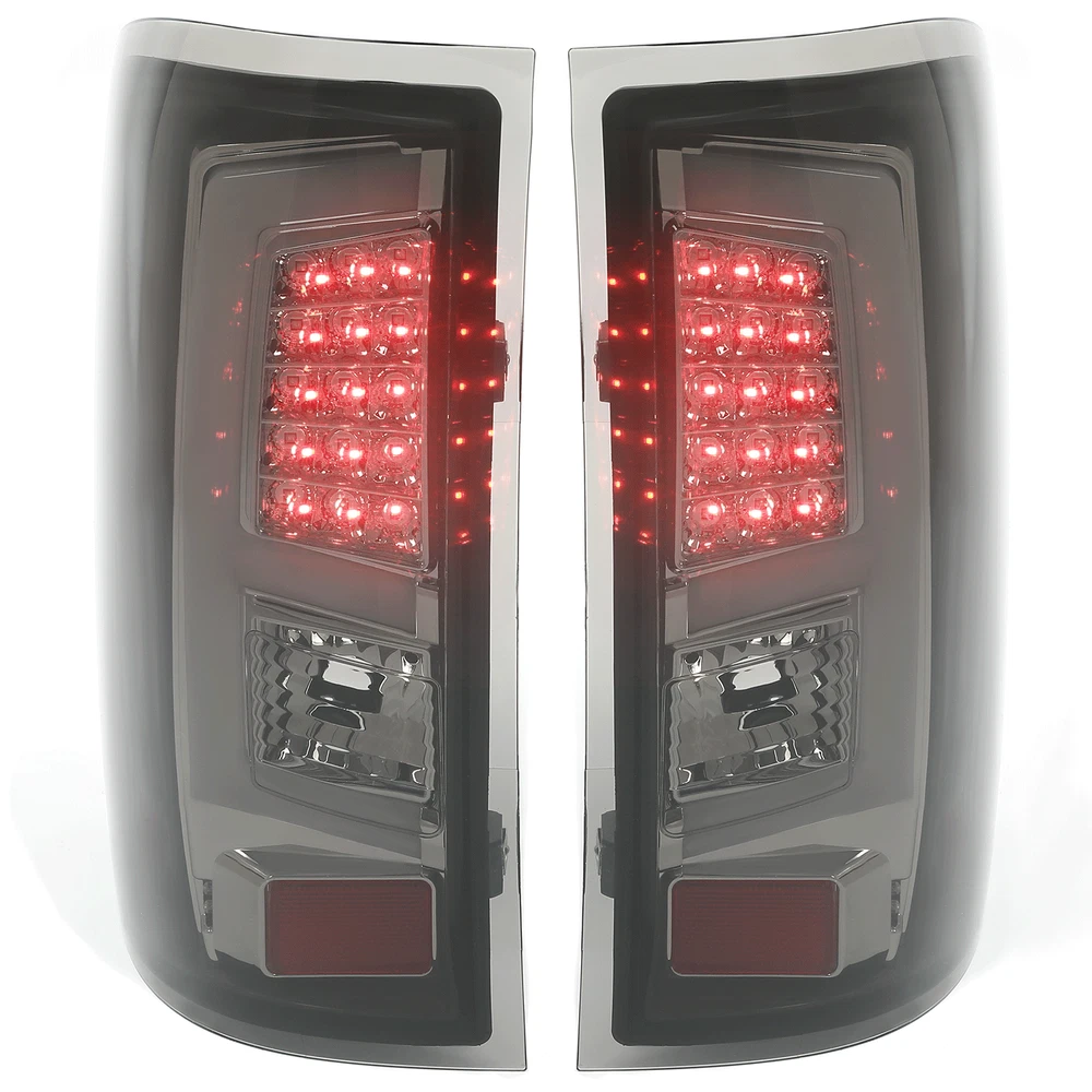 Store Categories Store Categories For Ford For Chevrolet For Dodge For Toyota For Honda Other Details Smoke/Clear LED Bar Tail Lights Lamps For GMC Sierra 1500 2500/3500 HD 2014-2018 FIT FOR: For GMC Sierra 1500 2500HD 3500HD 2014-2018 Specification : Condition: 100% Brand New Color: Clear/Smoke Lens + Black/Chrome Housing Material: Plastic Lighting Technology: LED Placement on Vehicle: Rear, Left, Right Replace For GM2801262, GM2800262, 84019504, 23295941, 23424737, 23424738, GM2800281, GM2801281, 23141277, 23141276 Features: LED bulbs have high luminous efficiency, low energy consumption and long service life High-brightness LED bulbs provide bright and uniform light, ensuring that they can be clearly seen by vehicles behind in any weather conditions. Made of high-quality materials, high-temperature and corrosion-resistant plastic shell, can withstand the test of various adverse weather conditions. Package Includes : 1 X Pair Of Tail Lights (Driver & Passenger Side). Installation Instruction Included Note:This is an optional listing, please confirm the selected item before placing the order Shipping: All items will be shipped out in 1 business day, no expedited service available. We ship our items to USA only(Does NOT include Hawaii, Alaska or Puerto Rico, PO Boxes/APO's). Shipping Notes: We use multiple warehouses and will select the nearest warehouse for delivery according to your order address and our inventory, Thank you for your cooperation. Contact us: Any Questions, Just feel free to contact us on eBay. We will reply you in 24 hours. Store Categories Store Categories For Ford For Chevrolet For Dodge For Toyota For Honda Other Details S moke/Clear LED Bar Tail Lights Lamps For GMC Sierra 1500 2500/3500 HD 2014-2018 FIT FOR: For GMC Sierra 1500 2500HD 3500HD 2014-2018 Specification : Condition: 100% Brand New Color: Clear/Smoke Lens + Black/Chrome Housing Material: Plastic Lighting Technology: LED Placement on Vehicle: Rear, Left, Right Replace For GM2801262, GM2800262, 84019504, 23295941, 23424737, 23424738, GM2800281, GM2801281, 23141277, 23141276 PRODUCT SPECIFICS: Type:Tail light Lighting Technology:LED Lens Color: Clear/Smoke Housing Color: Black/Chrome Light Color:Red Placement on Vehicle:Rear, Left, Right Installation Method:Screw-On Features:DOT Features: LED bulbs have high luminous efficiency, low energy consumption and long service life High-brightness LED bulbs provide bright and uniform light, ensuring that they can be clearly seen by vehicles behind in any weather conditions. Made of high-quality materials, high-temperature and corrosion-resistant plastic shell, can withstand the test of various adverse weather conditions. Package Includes : 1 X Pair Of Tail Lights (Driver & Passenger Side). Installation Instruction Included Note:This is an optional listing, please confirm the selected item before placing the order Shipping: All items will be shipped out in 1 business day, no expedited service available. We ship our items to USA only(Does NOT include Hawaii, Alaska or Puerto Rico, PO Boxes/APO's). Shipping Notes: We use multiple warehouses and will select the nearest warehouse for delivery according to your order address and our inventory, Thank you for your cooperation. Contact us: Any Questions, Just feel free to contact us on eBay. We will reply you in 24 hours. On Jan 1, 2025 at 21:32:24 PST, seller added the following information: On Jan 15, 2025 at 03:56:02 PST, seller added the following information: