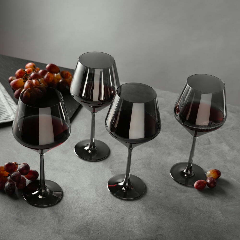Angled Wine Glass in Smoke Made of high-quality glass Ideal for at-home bars Hand wash recommended