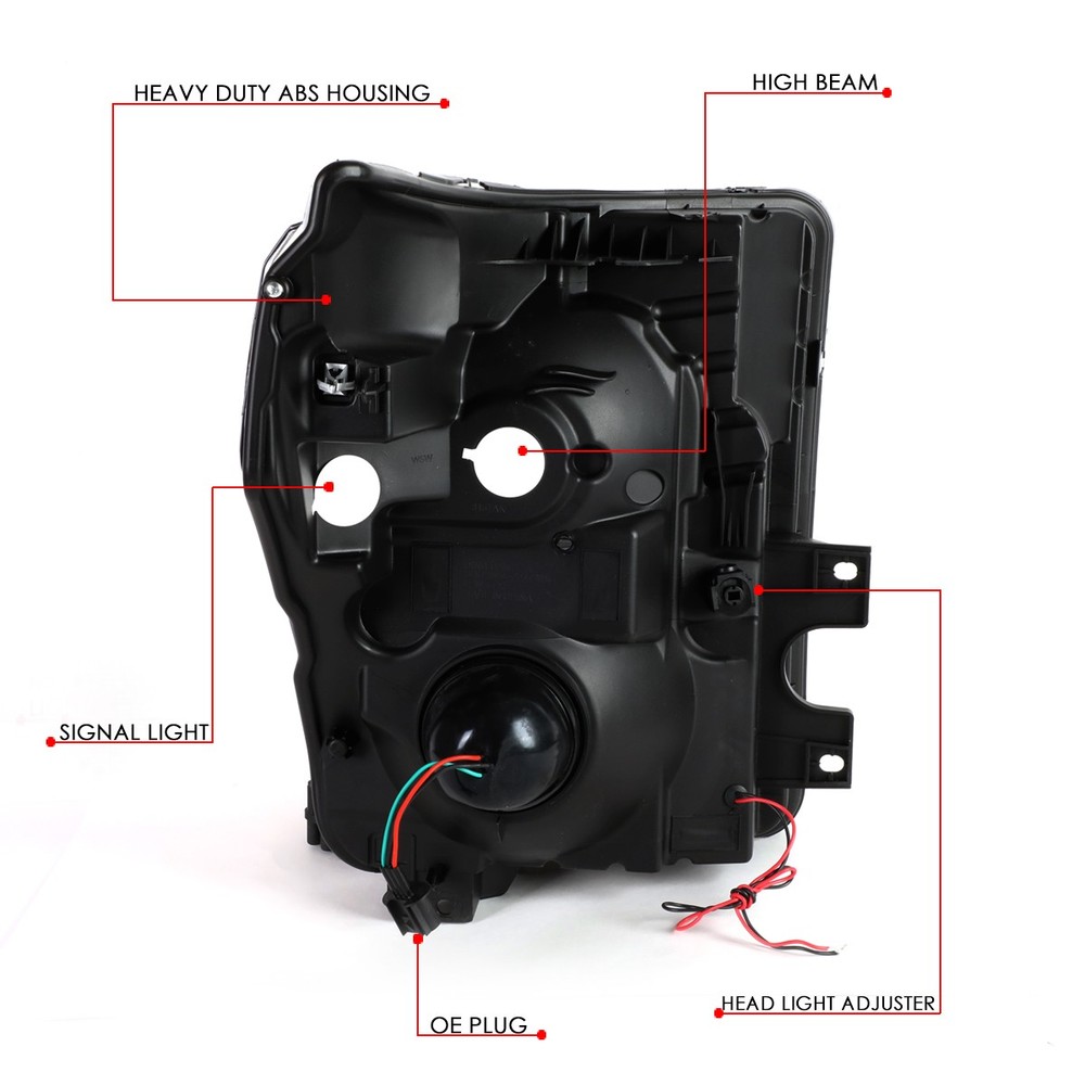 Smoked LED DRL Projector Headlights for 2011-2016 Ford F250 F550 Super Duty with Fog Lamps & Switch
