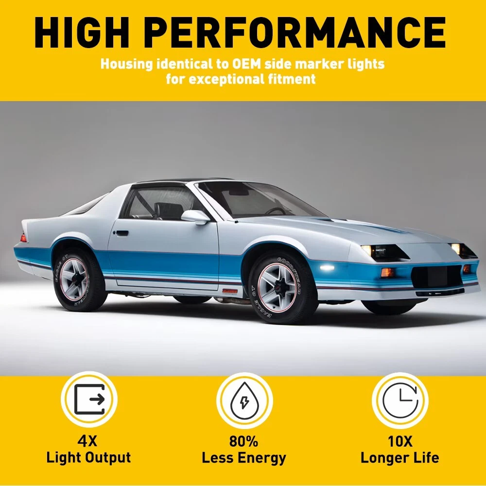 LED Strip Rear Side Marker Lights Fit For Chevy Camaro,Pontiac Firebird etc Fit for: 1982-1992 Chevy Camaro 1982-1992 Pontiac Firebird Specifications: Lens color:Smoked Mode:Normal lighting(white) Waterproof grade:IP67 Service life:50000h+ Placement on vehicle:Rear OE:915589, GM2551110, 915590, GM2550118 Features: Exquisite Appearance: Our side light is 1:1 design according to the vehicle model, it adopts smoked lens on appearance for becoming more attractive and fitting the car perfectly. High Brightness: 2x Smoked LED Front Marker Side Lights For 1982 92 Chevy Camaro Pontiac Firebird LED Strip Rear Side Marker Lights Fit For Chevy Camaro,Pontiac Firebird etc Fit for: 1982-1992 Chevy Camaro 1982-1992 Pontiac Firebird Specifications: Lens color:Smoked Mode:Normal lighting(white) Waterproof grade:IP67 Service life:50000h+ Placement on vehicle:Rear OE:915589, GM2551110, 915590, GM2550118 Features: Exquisite Appearance: Our side light is 1:1 design according to the vehicle model, it adopts smoked lens on appearance for becoming more attractive and fitting the car perfectly. High Brightness: Compared with other similar side light products,powerful LEDs designed to be visually striking and enhance visibility in our products. At the same time,it can make the reminder function of turn signal light becoming additional obvious in the course of driving and getting rid of the dim light from now on. Stable Performance: Our product is quite stable,with longer service life(service life: more than 50,000 hours).we usually provide 1 year replacement warranty and friendly customer support for bringing satisfied shopping experience. Less Consumption: Our light can reduce the energy waste with lower power consumption to creat better energy-saving effect, which is friendly for environmental protection. Note: In order to ensure the item fit your vehicle properly, please check and confirm the model before purchasing!!! Packaging include: 2X LED Side Lights Item Specifics Brand AUXITO Interchange Part Number Made by ISO2001 certified manufacturer, Excellent Quality! Euro Style Smoked Lens SideMarker Signal Light Reflectors Set Corner Light Corner Light Kit Set Pair Front Left Right Driver Side Passenger Side For 1982-1992 Chevy Camaro, Manufacturer Part Number 915589, GM2551110, 915590, GM2550118 Manufacturer Warranty 2 Years Placement on Vehicle Left Right Front Fitment Type Direct Replacement Lens Color Smoke/Tinted Certifications DOT SAE Features DOT-Certified,SAE-Certified,Sealed Assembly,Reflector Housing Type Side Repeater Light Assembly OE/OEM Part Number 915589, GM2551110, 915590, GM2550118 Finish Smooth Housing Color Black Light Color Cold White Number of Bulbs 2 Lighting Technology LED Bulb Shape Code W5W (168) Wattage High Power Items Included Bulbs Voltage 12 V Color Temperature 6000K FAQ ♥ If you have a decoding problem or any other problems, please contact us first, we will help you with it. We will reply you within 24 hours in working days. I'm a new seller, thanks a lot for your trust and convince! I will serve you with all my heart. ♥ Q1: Will this bulb fit my vehicle? A: We can match almost any vehicle to one of our bulb sizes. eBay only lets us include some vehicle fitments per listing, but if your vehicle does not show up on the compatibility table at the top of our listings, welcome you to contact us for free consulation before purchasing a product. Q2: My item has not arrived, what's taking so long? A: Sometimes items take longer than expected, especially if it’s going far or to rural area. Check with your post office to see if your item has been held up. Sometimes Royal Mail will not update a tracking number until it has arrived at its destination. If your item still don't arrive after a few days, let us know so we can double check for you and help solve it asap. Q3: My bulbs won't fit, help! A: Special bulb holder may be required. See if you can take the holder from the stock bulb. If not, let us know. The bulb size may be wrong, double check the item you received with the item you ordered. Do you have an aftermarket lighting housing? These may not be perfectly fitted for aftermarket bulbs and will require some manual modifications. Q4: Neither side lighting up? Both sides flicker, hyper flash, or work inconsistantly. A:Check the light fuses, and then check the ballast plugs to insure correct installation. If this doesn't work, there may be a voltage problem with the vehicle. You probably just need a relay or capacitor. Even though some bulbs are builtin resistors, they may still need a decoder. Pay & Ship (1). We gladly accepts payment via PayPal, We will ship your item(s) within 24 hours. (2). Before payment, please keep the consistency of Paypal address and ebay address. (3). Quantity orders are welcome! Returns (1). We offer 60 days free return policy. Please contact us within 60 days from the date you receive your order if you have any issues with the product or want return. Refund will be send after we got your resend package. (2). All returned items should be in the original packaging , return tracking information should be provided . Contact Us (1).Negative feedback will not help resolve any problems you have, please contact us via eBay messages before leaving negative feedback , our customer service will make best effort to help you with the issues. (2).We maintain high standards of excellenceand strive for 100% customer satisfaction! Feedback is very important to us. We request that you contact us immediately before you give us neutral or negative feedback, so that we can satisfactorily address your concerns. About us We're professional in car and motorcycle accessories, especially in LED bulbs. We have our own factory and R&D team. Our belief is to sell top quality items that fit your car and serve you with our heart. Anything please feel free to contact us! Our customer service is very responsibility. Come and follow us! DESCRIPTION NEW ARRIVED HOT SALE CONTACT US SAVE