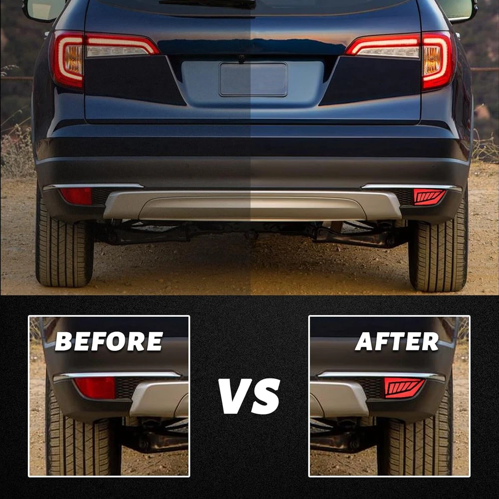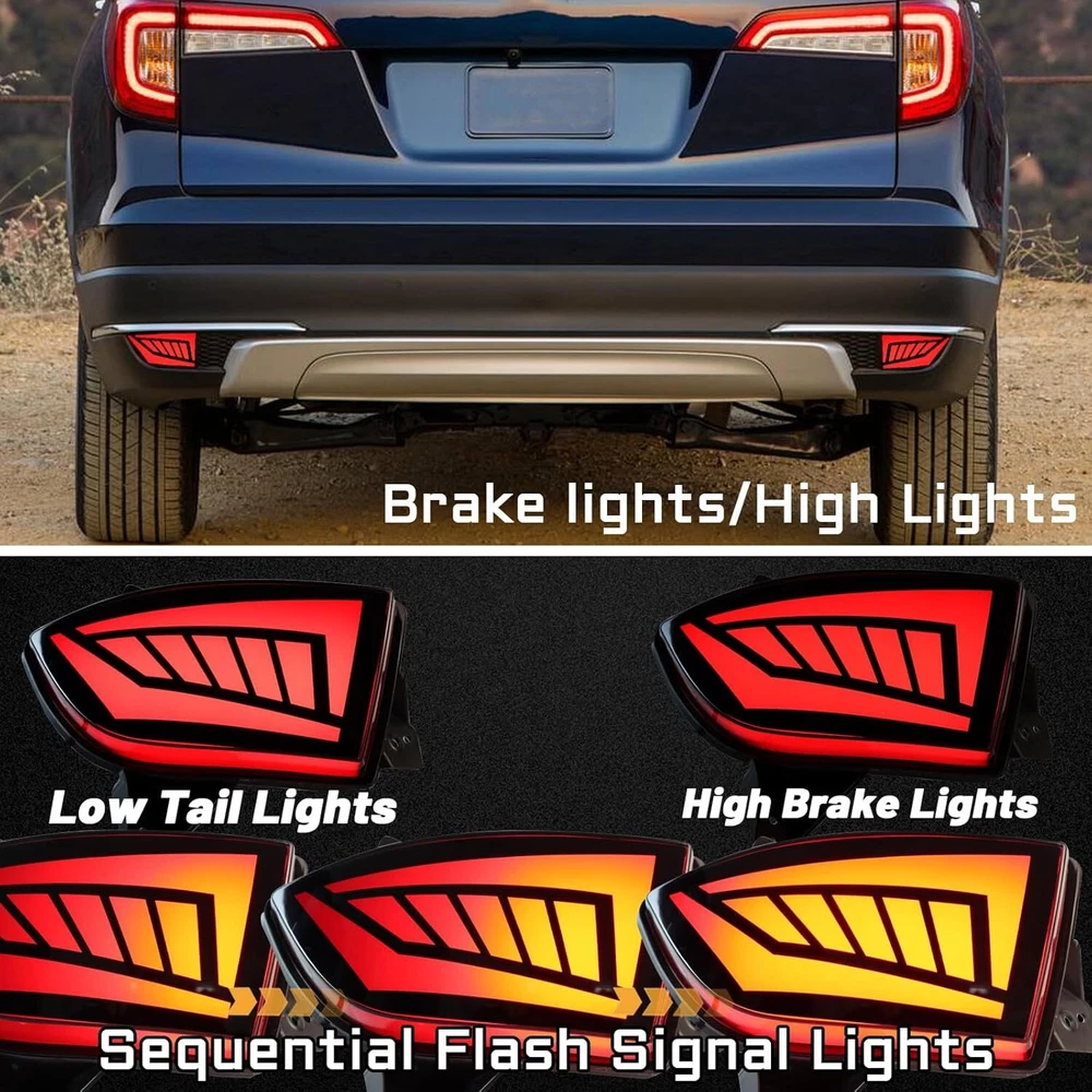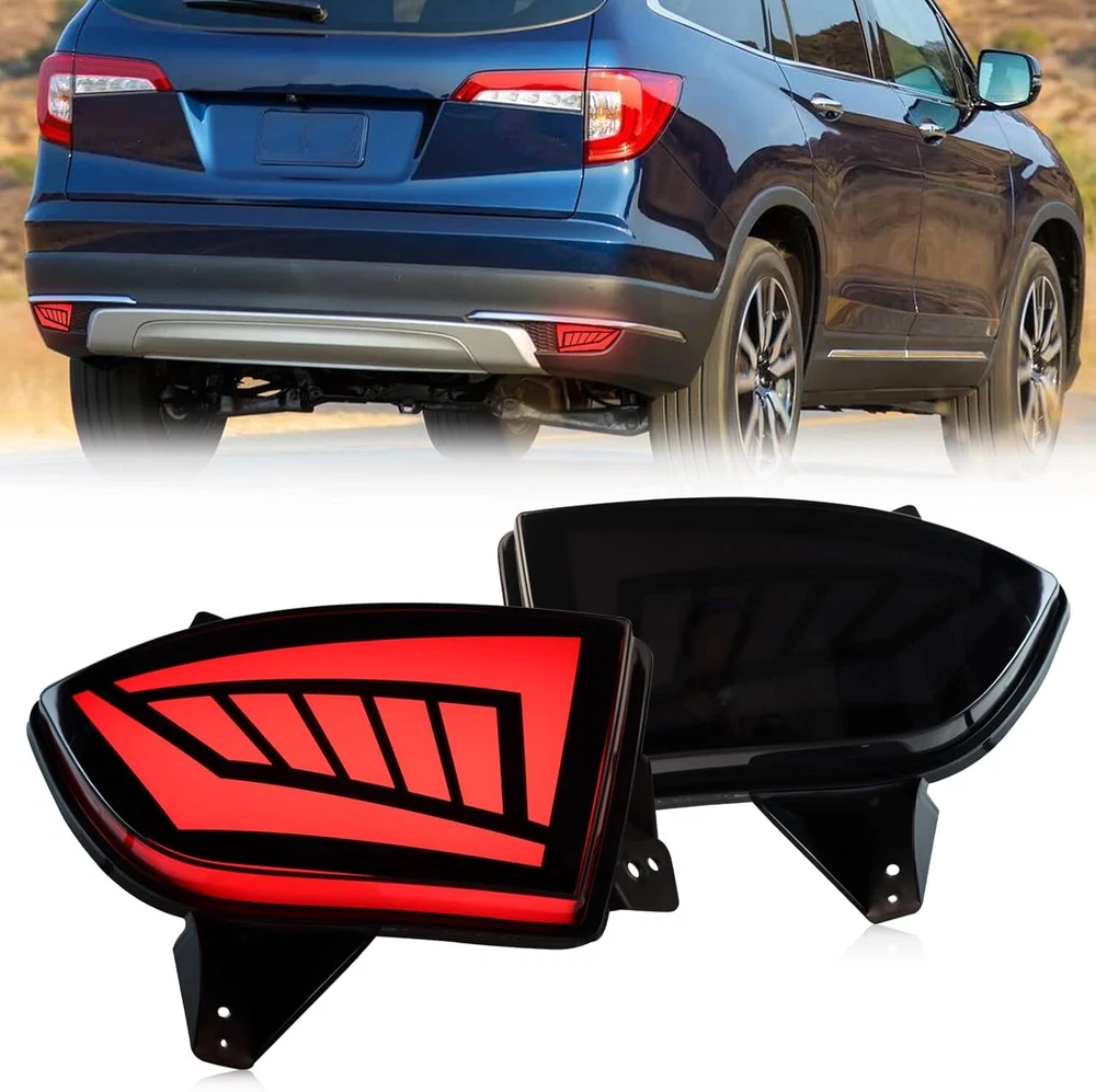Smoked LED Rear Bumper Reflectors Fog Brake Tail Light Lamps SMOKED STYLE Product Details Brand: PGTOPONE Color: SMOKED STYLE Specific Uses For Product: Rear Lights Vehicle Service Type: Car Year: 2019 Special Feature: Waterproof Auto Part Position: Rear Lens Color: Smoke Assembly Required: No Manufacturer: PGTOPONE Light Source TypeVoltage: LED12 Volts (DC) ► Fitment: Compatible with 2021 2022 2022 honda Pilot EX-L/Special Edition /raiSport/Touring/Elite/Black Edition;2019 020 Honda Pilot LX/EX /EX-L/Touring/Elite/Black Edition ► Design:Exact fit and direct replacement: Replace the stock red reflector and Upgrade the function as add-on brake light,Turn signal light and tail lights ► Installation: Connect the black wire to negative;Red wire to brake light positive ;white wire to tail light positive;Yellow wire to the signal light.3 in1 ► Safety:Exact fit and direct replacement, Super bright LEDS have a faster on/off response time for driving safety & Perfect design enhances your car's exterior look. ► After-Sale:Waterproof IP65, shockproof, dustproof, 50000+ hours life-span.