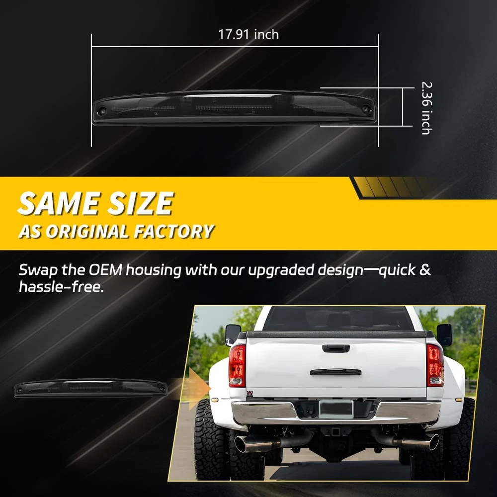 Product Detail Copyright©MotoringPlus Details This page features 1PC Smoked / Tinted Lens Red LED Rear Center Tailgate ID Identification Lightbar For 2003-2006 Dodge RAM 2500 3500 Dually DRW This LED t ailgate lamp is made with high-quality Polymethy l Methacrylate (PMMA) and Polycarbonate (PC) plastics Give your ride upgraded LED rear center t ailgate light with an unique and modern look as well as increased safety, visibility, and style at night! Plug and play installation Specifications: 100% Brand new and quality Lens Color: Smoked / Tinted LED Color: Red Voltage: 12-24V DC; Power: 4W A complete set of LED t ailgate light , replacement for the rear center t ailgate lightbar Compatible With 2003-2006 Dodge RAM 2500 3500 Dually DRW (Dual Rear Wheel) Also compatible with other RAM models with some drilling and wiring modifications Directly replace or repair your car's rear t ailgate light with red LED strips CE DOT SAE approved Application: For 2003-2006 Dodge RAM 2500 3500 Dually DRW (Dual Rear Wheel) Also compatible with other RAM models with some drilling and wiring modifications Replace OEM # 5086509AA Please make sure you have available space in your car for this t ailgate light to fit before placing or der. Package include: 1PC Rear Center Tailgate ID Identification Lightbar (Smoked / Tinted Lens) Installation: D irectly replace your stock t ailgate light, simply plug in the LED light to the stock light sockets Note: Professional installation is highly recommended! Returns Policy Shipping Policy Payment Method About US Contact Us Returns Policy Please check actual stock bulb model & housing size before purchasing replacement bulbs. Compatibility list on eBay listing is not a complete list and it is a known issue that there are errors on it. Half year warranty from the purchased date. Please contact us via ebay message before returning the defectived item. Our warranty does not extended to any products that are physically damaged or that are not under normal operating conditions as a result of misuse or improper installation on the buyers/user's part. Return items should include the original packaging and all accessories. Buyers MUST contact us for the returning address. In all cases, buyers pay shipping fees at their own cost to return products for exchange or refund. We will be responsible for the postage of replacements. Refund will be made upon receipt of the returned item. Our goal is to make sure you are a happy buyer and pleasant shopping with us. If you have any problems, please contact us immediately before leaving us any negative or neutral feedback. We understand the concerns and frustrations you might have, and will do our endeavor to resolve the issues. Please give us the opportunity to resolve any problem. Shipping Policy Item will be shipped from China / Hongkong Post by Standard International Post. All orders will be shipped to buyer's paypal shipping address within 24 hours after receiving your verified payment (Excluding Weekends and Public Holidays) International order may takes about 15-25 business day delivery time for most countries. Transactions on weekends or public holidays,item will be sent later on work time. Payment Method We accept Paypal ONLY. Unpaid transaction will be cancelled after 8 days About US Contact Us We are dedicated to providing you the best shopping experience and high quality items at a very low price. If you are satisfied with our service,Please remember to leave us 5 STAR for All Detailed Seller Ratings If you found any problem/issue of our merchandise/service,please let us know before leaving any negative feedback! Please feel free to contact us if you have any question. Any message will be replied within 24 hours. We will try our best to help! Home Payment Shipping About us Contact us Copyright©MotoringPlus Home Payment Shipping About us Contact us Store Categories Store Categories SIDE MARKER LIGHT TURN SIGNAL LIGHT TAIL BRAKE LIGHT LICENSE PLATE LIGHT DECODER OTHERS Other Product Detail Copyright©OFFKAT Why Buy From Us Why Buy From Us Details This page features 1PC Smoked / Tinted Lens Red LED Rear Center Tailgate ID Identification Lightbar For 2003-2006 Dodge RAM 2500 3500 Dually DRW This LED t ailgate lamp is made with high-quality Polymethy l Methacrylate (PMMA) and Polycarbonate (PC) plastics Give your ride upgraded LED rear center t ailgate light with an unique and modern look as well as increased safety, visibility, and style at night! Plug and play installation Specifications: 100% Brand new and quality Lens Color: Smoked / Tinted LED Color: Red Voltage: 12-24V DC; Power: 4W A complete set of LED t ailgate light , replacement for the rear center t ailgate lightbar Compatible With 2003-2006 Dodge RAM 2500 3500 Dually DRW (Dual Rear Wheel) Also compatible with other RAM models with some drilling and wiring modifications Directly replace or repair your car's rear t ailgate light with red LED strips CE DOT SAE approved Application: For 2003-2006 Dodge RAM 2500 3500 Dually DRW (Dual Rear Wheel) Also compatible with other RAM models with some drilling and wiring modifications Replace OEM # 5086509AA Please make sure you have available space in your car for this t ailgate light to fit before placing or der. Package include: 1PC Rear Center Tailgate ID Identification Lightbar (Smoked / Tinted Lens) Installation: D irectly replace your stock t ailgate light, simply plug in the LED light to the stock light sockets Note: Professional installation is highly recommended! Returns Policy Shipping Policy Payment Method About US Contact Us Returns Policy Our 60-day Satisfaction Guarantee assures our customers that they will receive all orders promptly and exactly as described. In addition, it allows customers to return new and unused products in their original factory condition for any reason within 60 days from the date of purchase. Buyers are responsible for appropriate packing, returning shipping cost, insurance and returning the item 