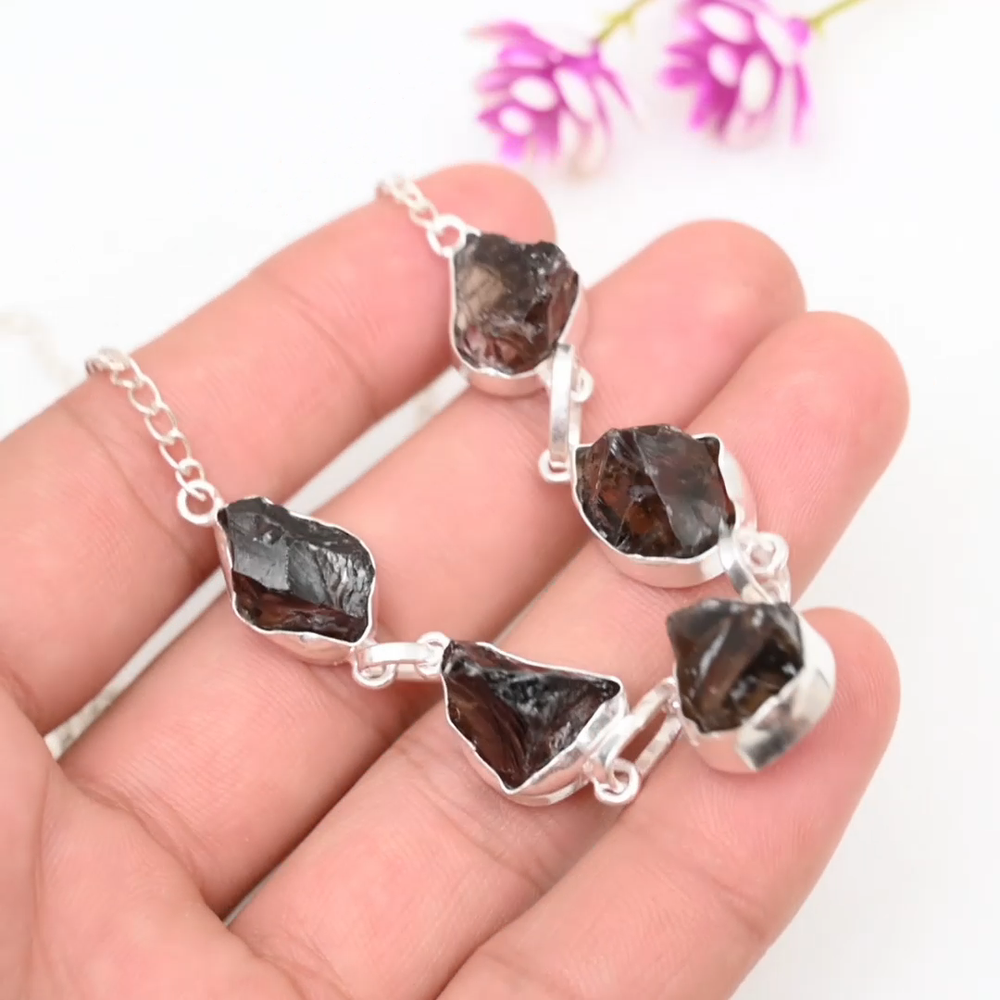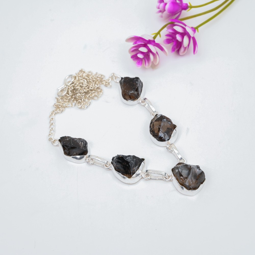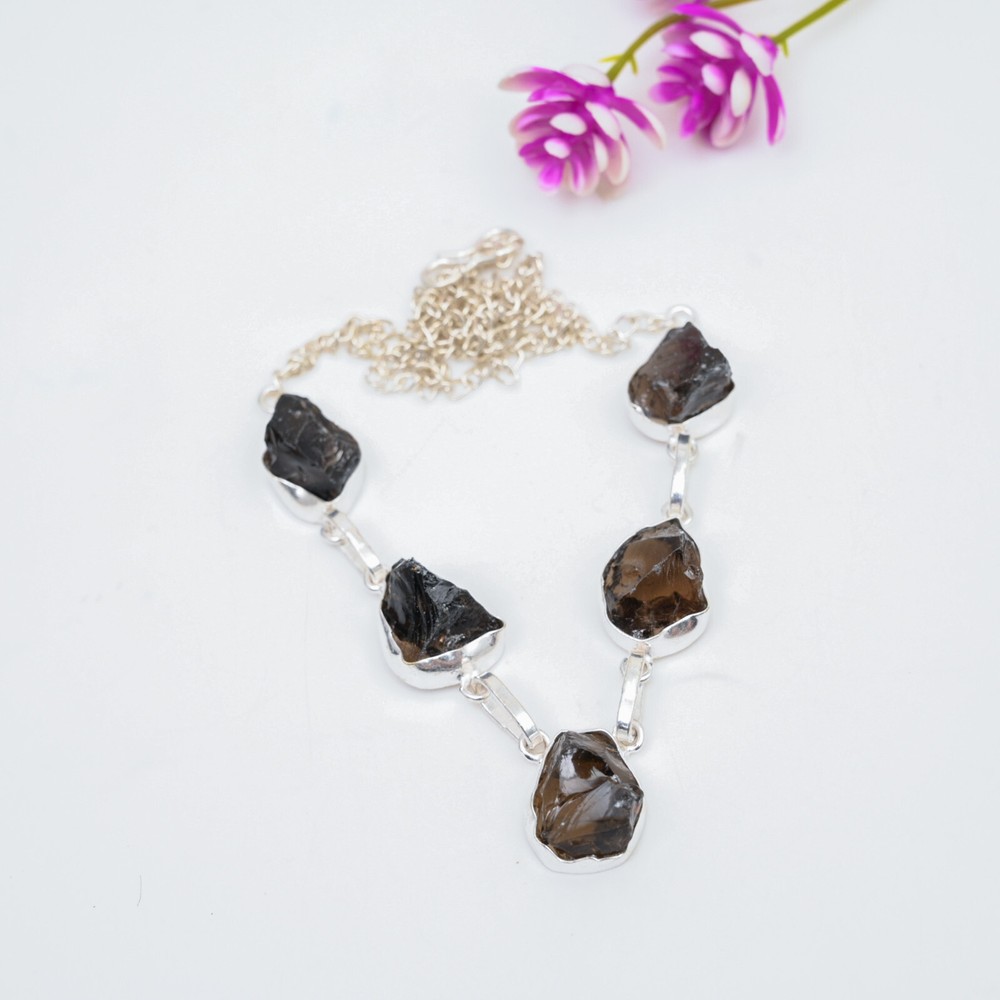 Closure:Same As PictureNecklace Length:18 Inches With Adjustable ChainDiamond Clarity Grade:N/AMaterial:Stone, GemstoneBase Metal:Sterling SilverCollection:HandmadeColor:SilverStyle:NecklaceTotal Carat Weight:10 carat and aboveMain Stone:Smokey QuartzFeatures:HandmadeCountry of Origin:IndiaMain Stone Treatment:Not EnhancedMain Stone Color:BrownChain Type:Same As PictureMain Stone Creation:NaturalBrand:HandamdePendant/Locket Type:CharmOccasion:Anniversary, Birthday, Christmas, Engagement, Father's Day, Mother's Day, Valentine's Day, WeddingNumber of Gemstones:5Metal Purity:925Colored Diamond Intensity:N/ADiamond Color Grade:N/ACut Grade:Very GoodPendant Shape:Same As PictureSecondary Stone:Smokey QuartzTheme:Beauty, Bohemian, Ethnic, Halloween, LoveMain Stone Shape:Same As PictureMetal:Sterling SilverNumber of Diamonds:N/ASetting Style:BezelCountry/Region of Manufacture:IndiaCertification:N/AType:Necklace