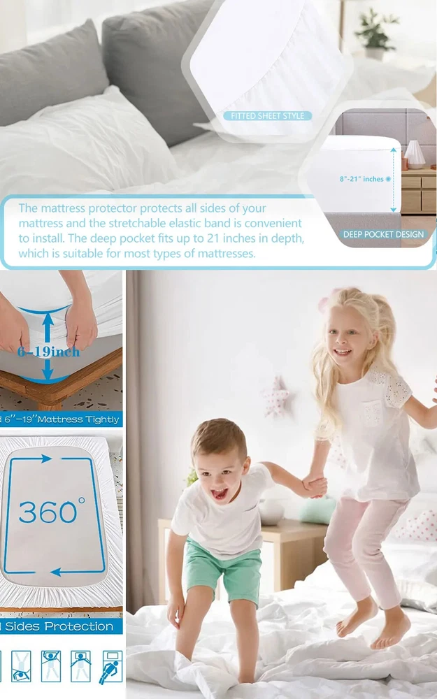 Smooth Mattress Protector Fitted Sheet Wateprroof Mattress Cover Anti Mites
