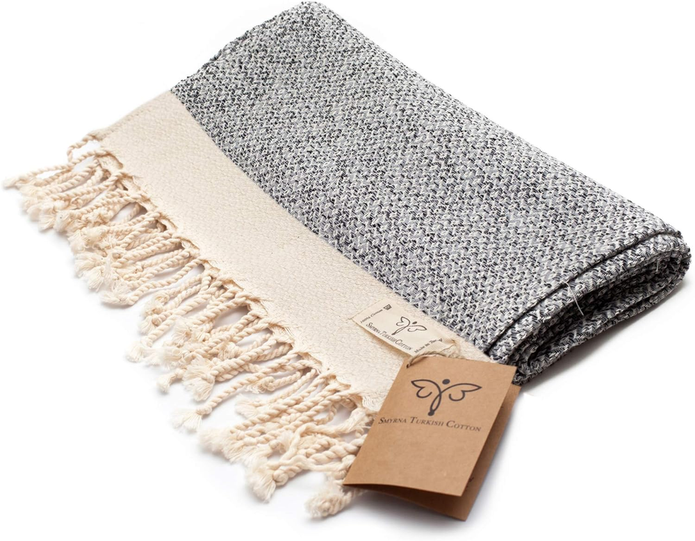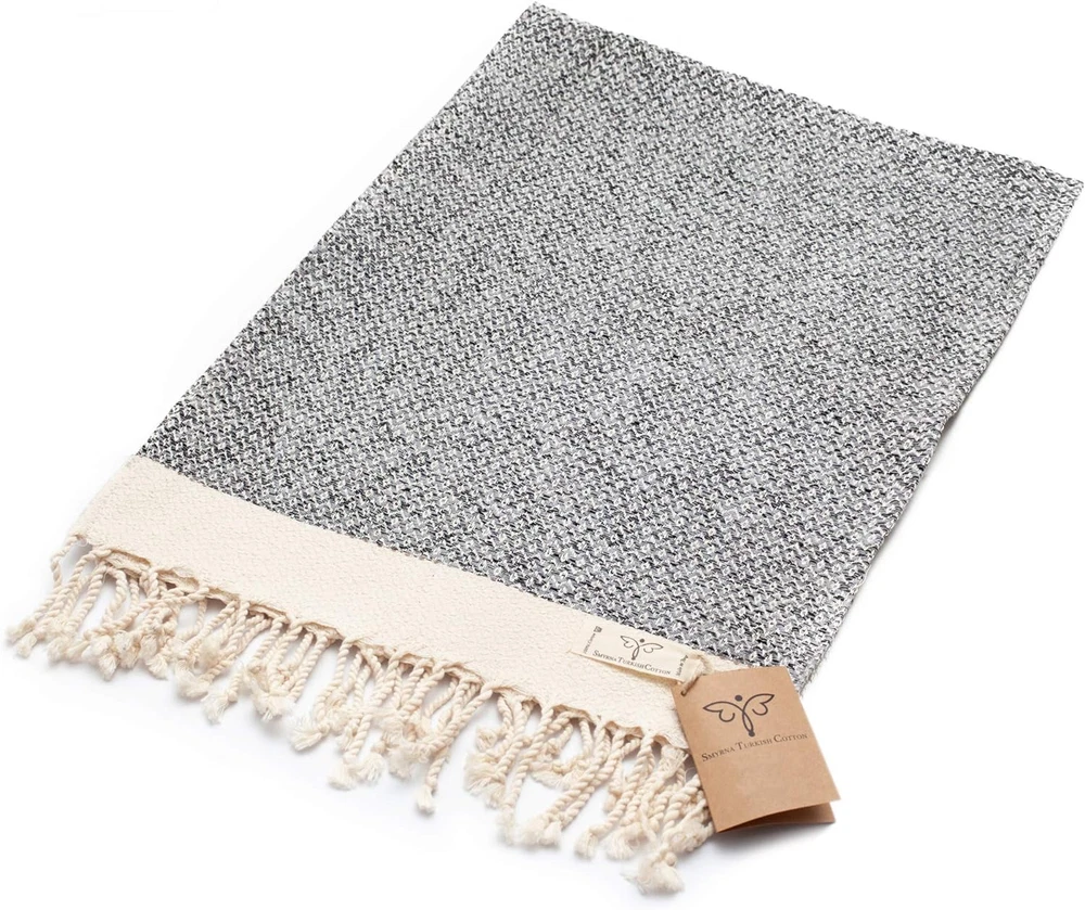 Store New Arrivals Add to Favorite View Feedback Contact Smyrna Original Turkish Hand Towels | 100% Cotton, Prewashed, 16 X 40 Inches | Decorative Bathroom Peshtemal Towel for Hand, Face, Hair, Gym, Yoga, Tea, Dishcloth, Kitchen and Bath (Gray) Description Unit Count 2 Count Style Stylish Product Dimensions 40"L x 16"W Number of Items 2 Color Gray Pattern Diamond Brand SMYRNA TURKISH COTTON Material Cotton Country of Origin Turkey Item Weight 10.8 ounces Shape Rectangular Towel form type Hand Towel Age Range (Description) Adult Size Large Special Feature Organic Fabric Type 100% Cotton Product Care Instructions Machine Wash Manufacturer Smyrna Turkish Cotton MADE IN TURKEY – 100% Organic Cotton by using Anatolian yarn with OEKO-TEX Certified and imported from Turkey! MULTI-PURPOSE – Smyrna Turkish Cotton hand towels are decorative and very useful in various places such as; bath, kitchen, bathroom, SPA and fitness. It can also be used as tea, guest, face, hair, dishcloth, gym, yoga and travel towel. You will never believe how functional this natural fabric is.. HIGH QUALITY – It's soft feeling, lightness, absorbency and easy drying features makes this Turkish hand towel extremely functional and more and more popular. Wash it before use. It becomes softer after each wash. It is also prewashed and larger than regular hand towels. SIZE & MATERIAL – Set of 2 | 16 x 40 inches (40 x 100 cm) | 5.1 oz (145 grams) | 100% Genuine Cotton | OEKO-TEX Standard 100 Certified | Prewashed | Organic | Ultra-Soft and Unisex | Highly Absorbable and Quick Dry | Free of Harmful Chemicals | Eco-friendly | Vintage Series SATISFACTION GUARANTEED – We're confident that you'll love our Smyrna Turkish Hand Towels but If you are not completely satisfied with it, we will give you a full refund without any question in 30 days. Please feel free to contact us. Product Description Discover Smyrna Luxury Super Soft Feel the softness and luxury with every touch of the Smyrna Turkish Cotton hand and head towels. Discover Smyrna Luxury Multi-Purpose Use as spa-inspired hand or face towels, or use as dishcloths, polishing, cleaning cloths & more Discover Smyrna Luxury Quick Dry Smyrna Turkish Cotton towels are thin and dry much quicker than your standard towels. Discover Smyrna Luxury Light-Weight, yet Highly Absorbent The perfect absorbent, fast-drying and stylish wash towels for your bathroom, en suite or kitchen. Discover Smyrna Luxury Contemporary Design inspired by Tradition Smyrna Vintage motif represents abundance, endless happiness and protection from danger. 1 Super Soft 2 Multi-Purpose 3 Quick Dry 4 Lightweight & Absorbent 5 Modern Design A Selection of Smyrna's Budget Friendly Hand - Face - Head Towel Range Add to Cart Add to Cart Add to Cart Add to Cart Customer Reviews 4.6 out of 5 stars 14,726 4.6 out of 5 stars 14,726 4.5 out of 5 stars 3,730 4.5 out of 5 stars 267 Price $18.99 $ 18 . 99 $18.99 $ 18 . 99 $18.99 $ 18 . 99 $18.99 $ 18 . 99 Multipack Pack of 2 Pack of 2 Pack of 2 Pack of 2 100% Oeko-Tex Certified Cotton ✔ ✔ ✔ ✔ Size 16" x 40" (40 cm x 100 cm) 16" x 40" (40 cm x 100 cm) 16" x 40" (40 cm x 100 cm) 16" x 40" (40 cm x 100 cm) Color Light Blue Navy Orange Turquoise Motif Vintage Vintage Herringbone Herringbone Use Also As Head, face, guest, tea towel Head, face, guest, tea towel Head, face, guest, tea towel Head, face, guest, tea towel Ultra Soft ✔ ✔ ✔ ✔ Absorbent ✔ ✔ ✔ ✔ Pre-Washed (No Shrinkage) ✔ ✔ ✔ ✔ No Mold Smell ✔ ✔ ✔ ✔ Producing Smyrna Textiles 1. Weaving & Stitching Our yarn is freshly weaved at our atelier using both traditional & modern methods and hand stitched. Producing Smyrna Textiles 2. Rolling The tassels (fringes) of your Smyrna Turkish Cotton products are individually hand-rolled. Producing Smyrna Textiles 3. Prewashing & Air Drying All Smyrna textiles are pre-washed and air dried to eliminate shrinkage when you wash them. Producing Smyrna Textiles 4. Ironing All Smyrna Turkish Cotton products are hand ironed to meet your perfection standards. Producing Smyrna Textiles 5. Quality Check & Packing Our textiles are eye & hand-inspected to prevent quality issues and packed with washing instructions 1 1. Weaving & Stitching 2 2. Rolling 3 3. Prewashing & Airdrying 4 4. Ironing 5 5. Quality Check &Packing Super Soft Feel the softness and luxury of the Smyrna Turkish Cotton range. They are pre-washed for you to enjoy softness without worrying about shrinkage. Light-Weight, Highly Absorbent Smyrna Turkish towels provide the perfect balance between absorbency and lightness, which makes our cotton the best cotton used in towels. Quick Dry Smyrna Turkish Cotton towels are thin and dry much quicker than your standard towels. You can relax at the beach without worrying about damp smells. Matching Items Available You can always match each items with the exact colour & design from our collections and various colours and patterns from our other collections. A Perfect Gift to Inspire... 100% Oeko-Tex Certified Sustainable Cotton A widely recognized certification system in the textile industry that ensures every component has been tested against a list of up to 350 hazardous substances. Supporting Women in Work Force The artisan human touch is present at each step of Smyrna textiles' production. The brand provides jobs for about 100 local women, some of which have become the main bread owners of their households. Care Instructions 1. Machine wash 85-100°F (30-40°C), tumble dry low or line dry. 2. Use fabric softerener if desired, do not Bleach. 3. Use a warm iron to smooth out any unwanted wrinkles. Hamam Heritage All Smyrna Turkish Cotton products are produced in the form of Turkish towels, also known as peshtamals, which have been an essential part of the traditional Turkish bathhouse (hamam) experience. Perfect Gift These towels are highly versatile and can also be used as a face, hand, guest, spa towels and napkins, and also make great gifts for s