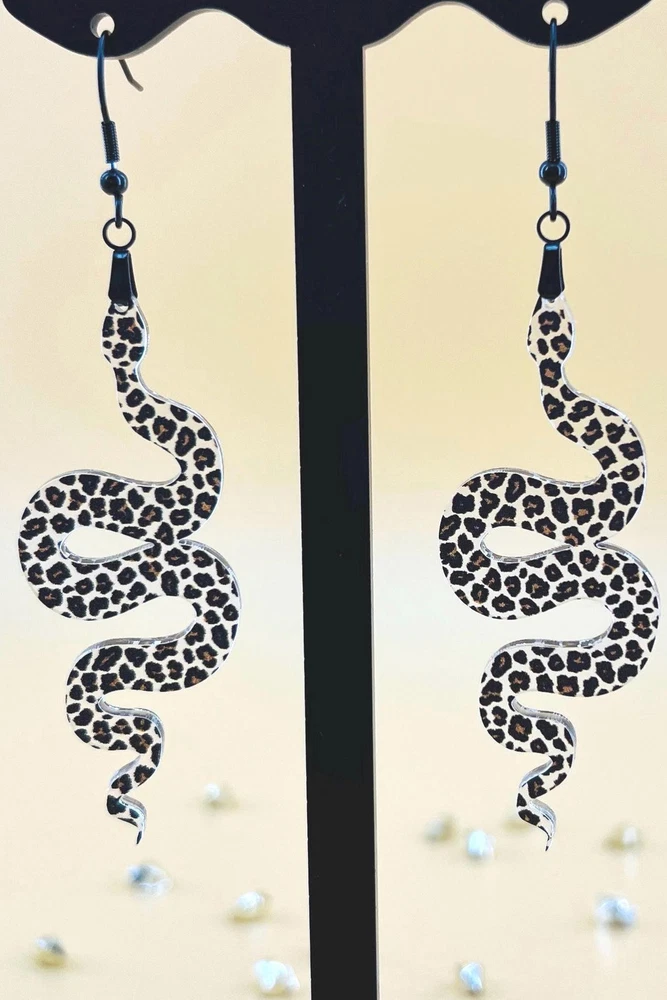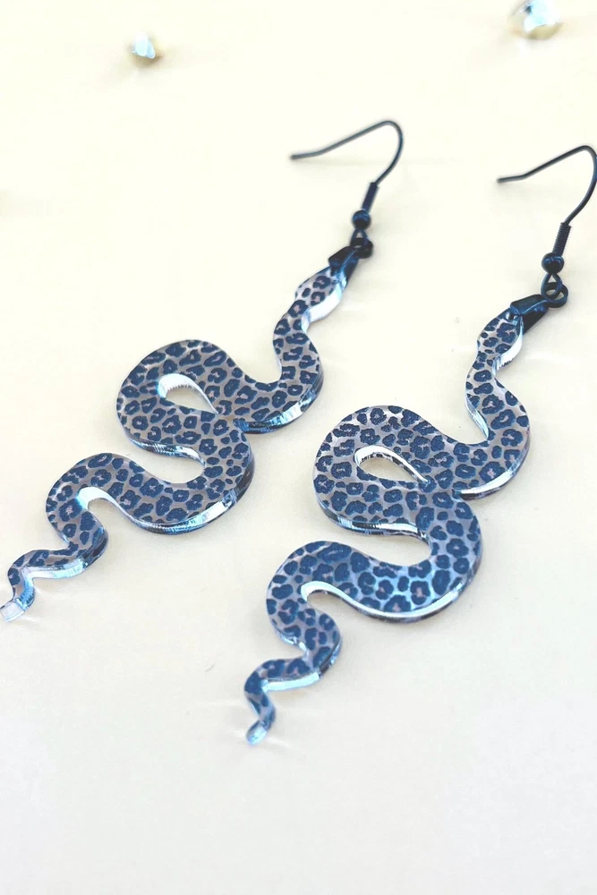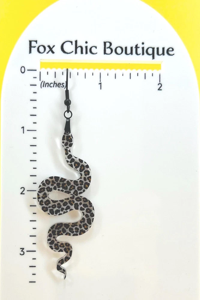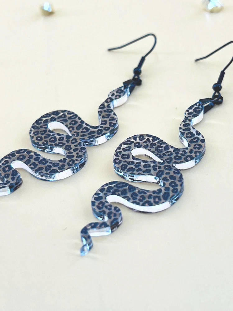 Elevate your style with these unique Snake Earrings, the perfect blend of Celestial and Halloween vibes. Embrace your inner witch with these goth-inspired Snake Lover Earrings. A must-have piece of Gothic jewelry that makes a thoughtful gift for her. Handcrafted for the ultimate witchy look. Lightweight Acrylic Earrings on a Stainless Steel hook. Earring hardware is stainless steel and nickel/lead free. 🌟(Please see item details/highlights/pictures for size information)🌟 Each earring is laser cut from acrylic and assembled by hand in our studio. 🌟Due to variation in the patterns and handmade processes, each earring will vary earring to earring. No two earrings will be identical but will look similar to what is pictured! Each pair of earrings comes on an earring card with silicone backers and packaged in an organza bag. Perfect for gift giving! We currently do not offer more gift-wrapping options. Shipping: All purchases are shipped in a box with tracking so that they arrive safely to you! Currently we only ship to US postal addresses. We have a set standard shipping time of 1-3 business days from the time your order is placed. Everything in our shop is already handmade and ready to ship FAST! Please be aware that unexpected delays can occur, which you will be notified at the time of any such occurrence. Jewelry Care: 🌟Each piece is delicate! Avoid dropping or bending! 🌟Do Not expose to excessive moisture, please remove jewelry before showering, swimming, and sleeping. 🌟Avoid abrasives, perfumes, lotions, excessive heat, chemicals etc. These may deteriorate your jewelry and may damage its appearance. 🌟Clean with the soft cloth we have included in your package (and it is FREE of Charge!) No Returns: Due to hygienic and safety reasons, ALL SALES ARE FINAL. We DO NOT accept returns. In the event you have an issue with your purchase, please feel free to message us on Etsy to discuss any possible resolution.
