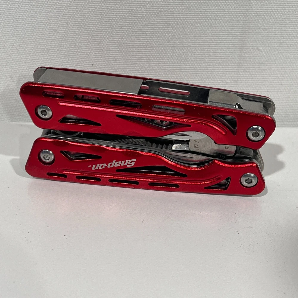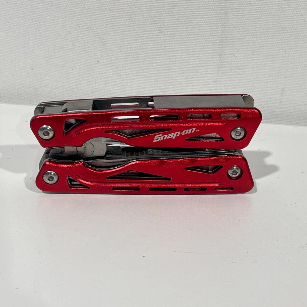 Country/Region of Manufacture: China Model: Multitool Handle Material: Stainless Steel Dexterity: Ambidextrous Type: Multi-tool Blade Edge: Plain Brand: Snap-on Color: Red Tools: Bottle Opener, Saw, Screw Driver Blade Material: Stainless Steel Original/Reproduction: Original Number of Blades: More than 4 Opening Mechanism: Manual