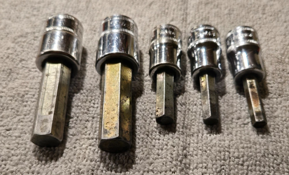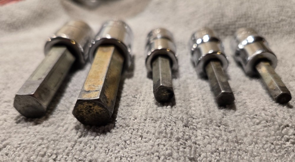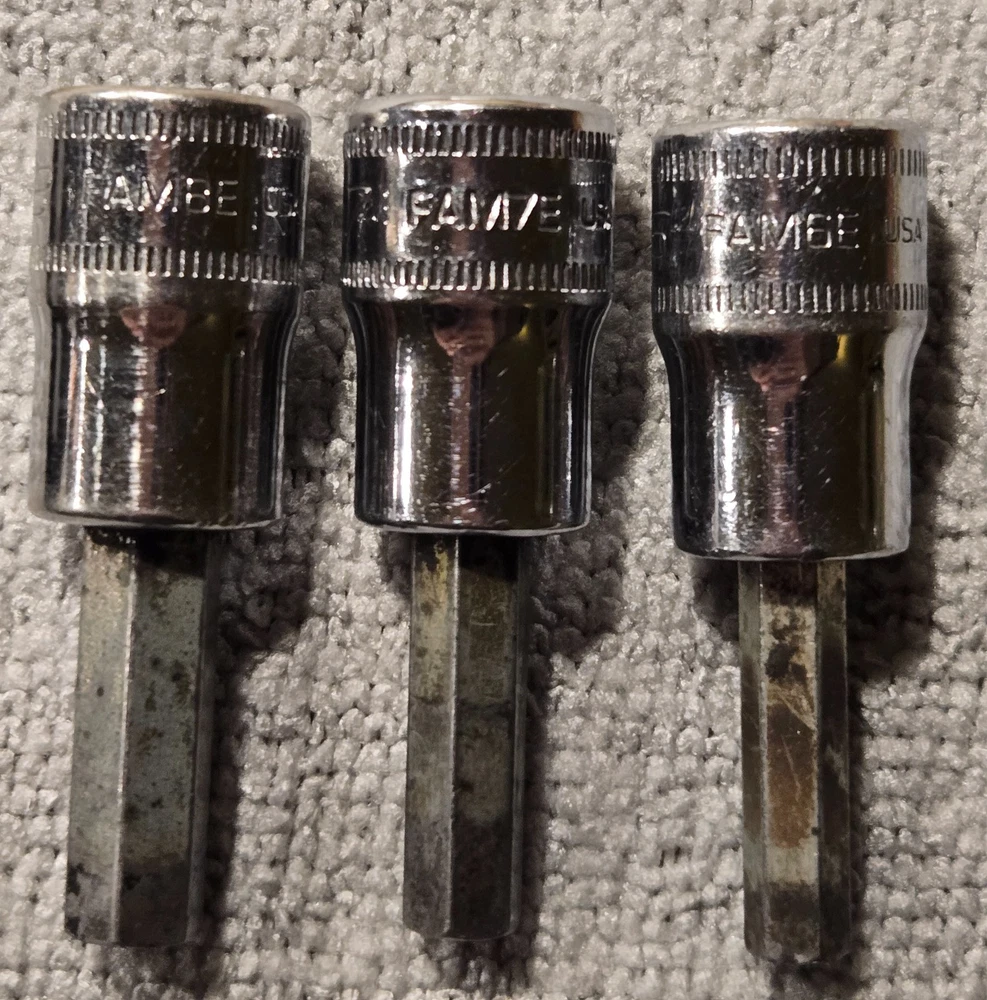 Snap On Tools FAM series, 3/8" Drive Standard Hex Bit Socket Driver, Used FAM13E, FAM12E, FAM8E, FAM7E, FAM6E (13mm, 12mm, 8mm, 7mm, 6mm) Has signs if wear from normal use See photos