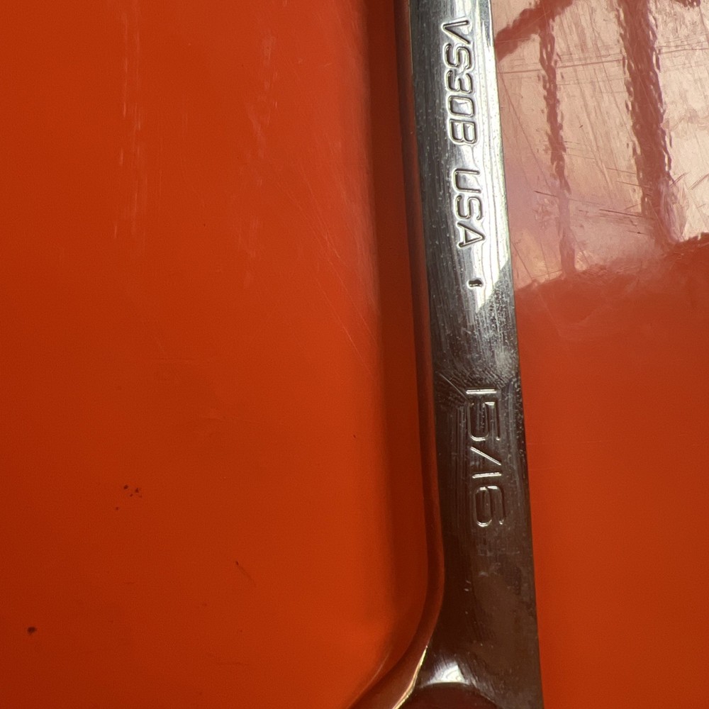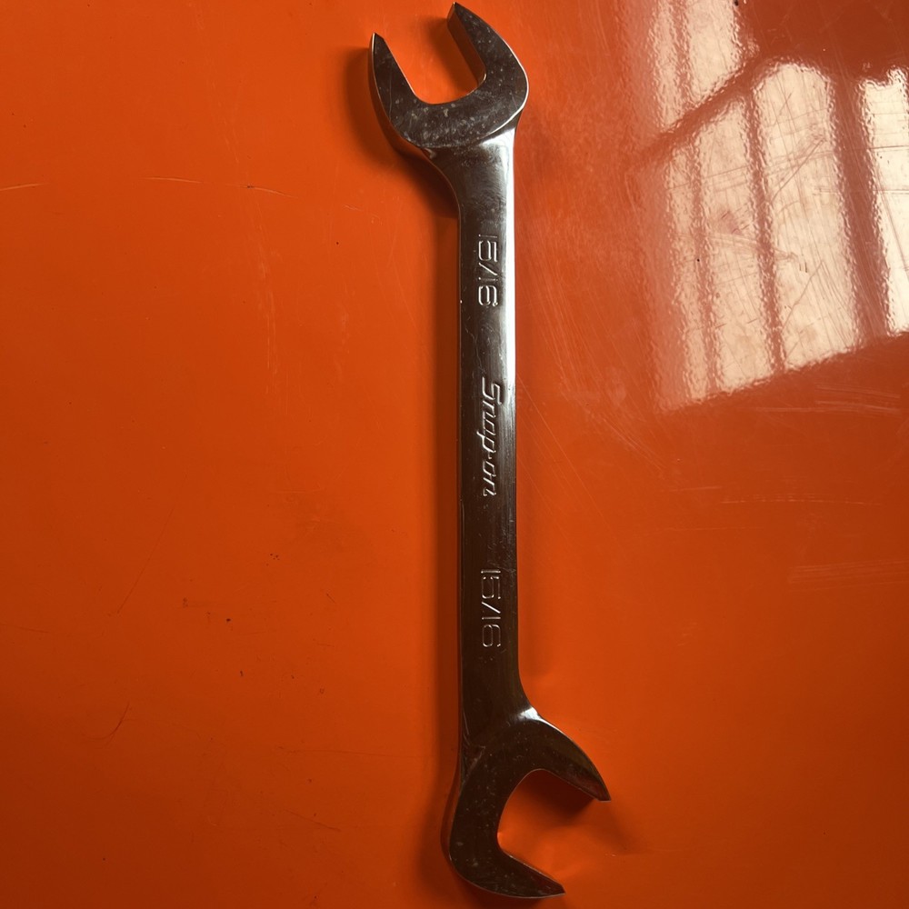 The Snap On VS30B 15/16" SAE Four-Way Angle Head Open-End Wrench is a high-quality hand tool designed for automotive use. Made by the reputable brand Snap-on in the United States, this wrench is a single item that is perfect for tightening and loosening nuts and bolts in a variety of automotive applications. With its SAE measurement system and 15/16 inch size, this open-end wrench is a reliable and durable tool that is essential for any automotive technician or mechanic. slight scratches and surface rust as seen in photos but in good working condition