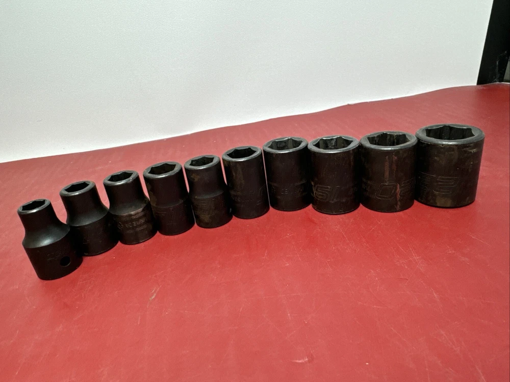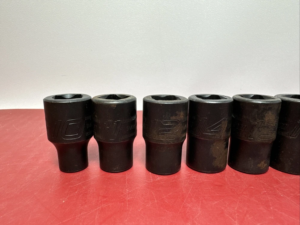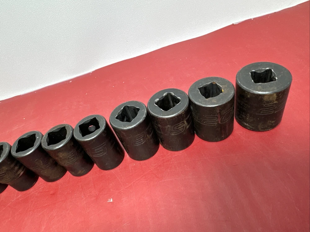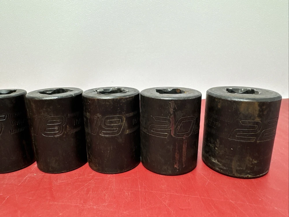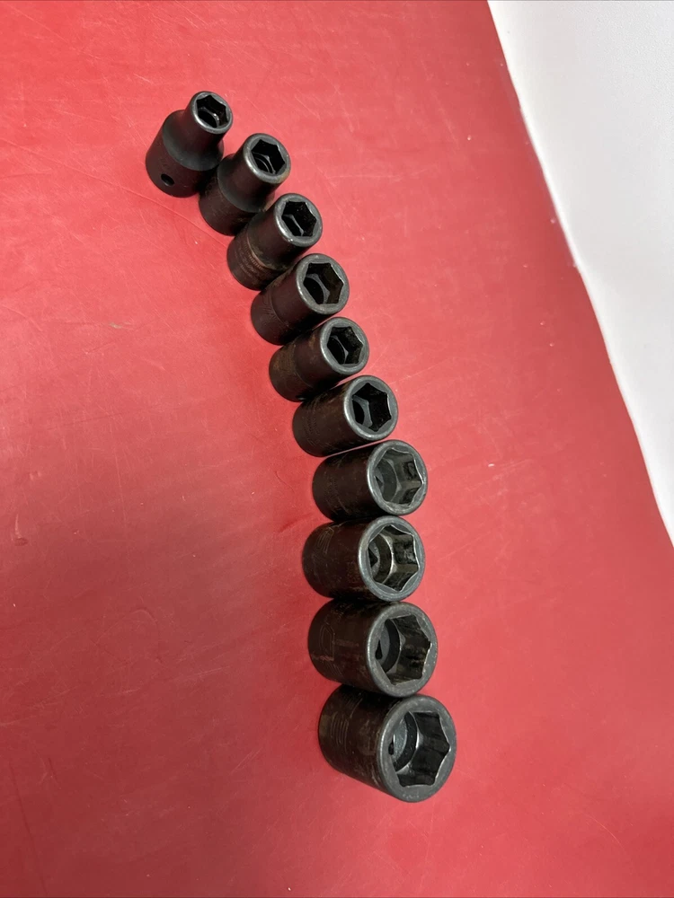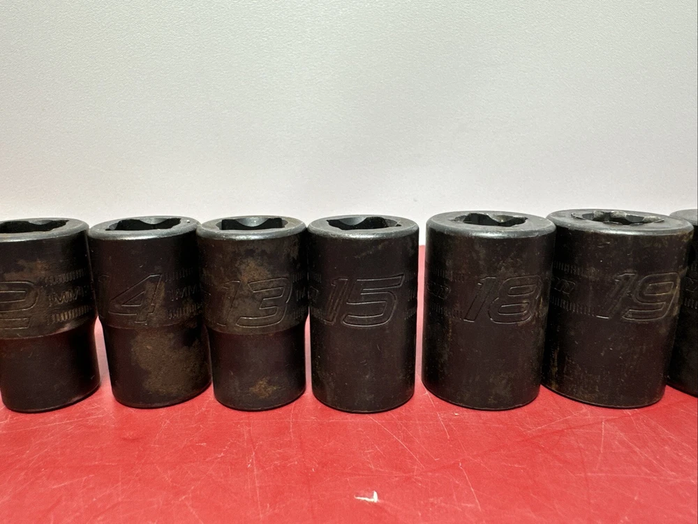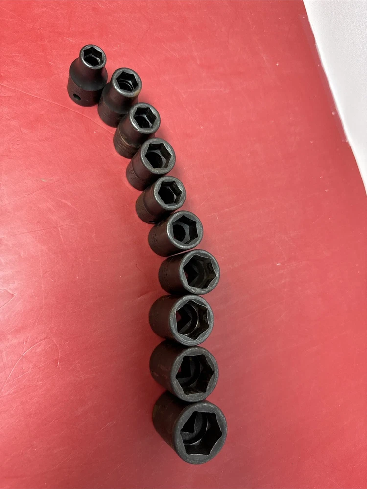 Great used socket set. Comes as pictured. set includes the below sizes. 10mm,11mm, 12mm,13mm,14mm,15mm,18mm,19mm,20mm,22mm - 10pcs IMM220, IMM200,IMM190,IMM180,IMM150A, IMM140A, IMM130A, IMM120A, IMM110A, IMM100A