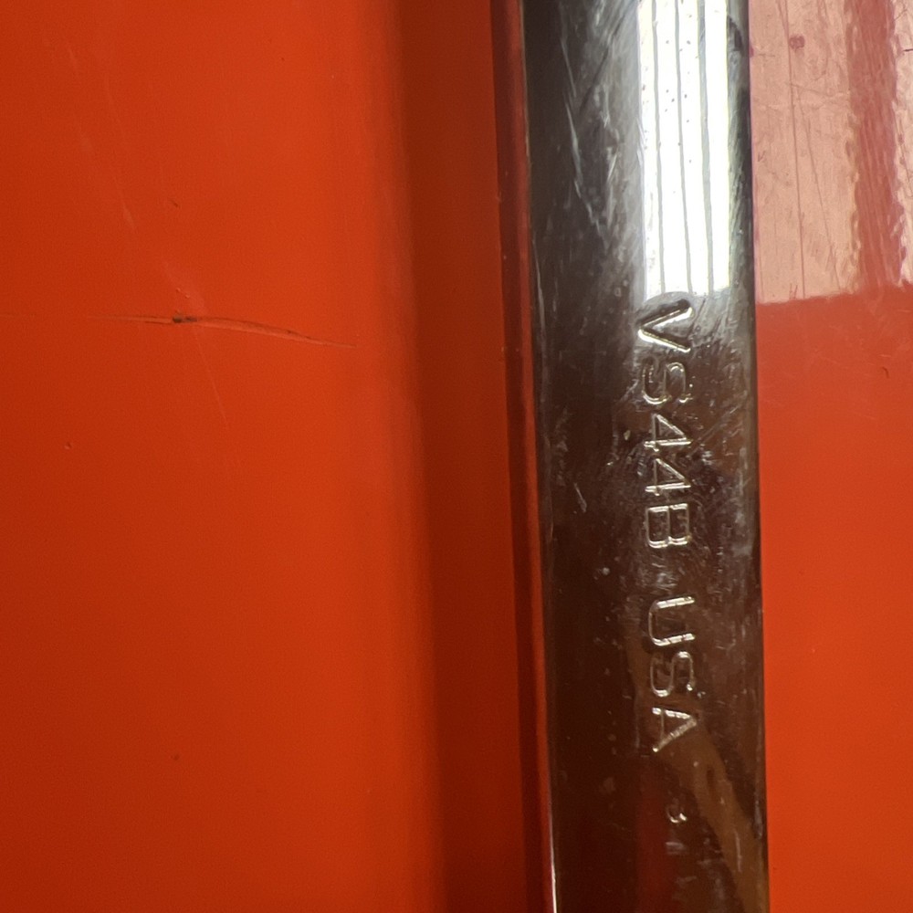 The Snap-On SAE 1 3/8” 4 Way Angle Open End Wrench VS44B is a high-quality hand tool designed for automotive use. Made by the trusted brand Snap-on, this single item wrench features a specialty drive type and a size of 1-3/8 inches. The open-end design provides a versatile grip for fastening and loosening nuts and bolts. With no warranty, this durable tool is a reliable addition to any mechanic's toolbox, offering precision and efficiency for various automotive repair and maintenance tasks. slight scratches and surface rust as seen in photos but in good working condition