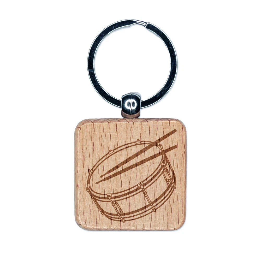 Snare Drum Percussion Musical Instrument Engraved Wood Square Keychain Tag Charm