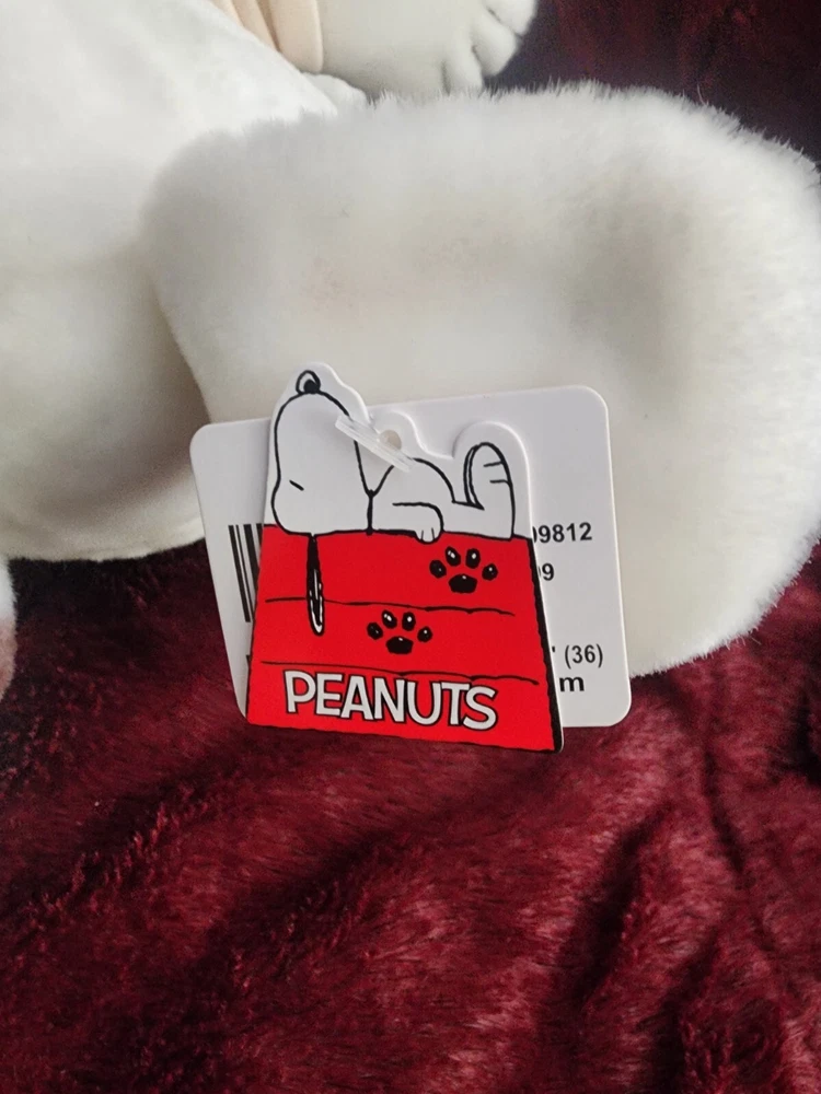 This is a 10" plush figure of Snoopy from the Peanuts Gang, produced by Cedar Fair in 2011. The stuffed animal is designed to be cuddly and soft, making it a perfect toy for children or fans of the Peanuts comic strip. The color of the plush figure is brown and white, resembling the iconic appearance of Snoopy the dog. This item would be a great addition to any Peanuts Gang collection or as a fun toy for kids who love this classic cartoon character.