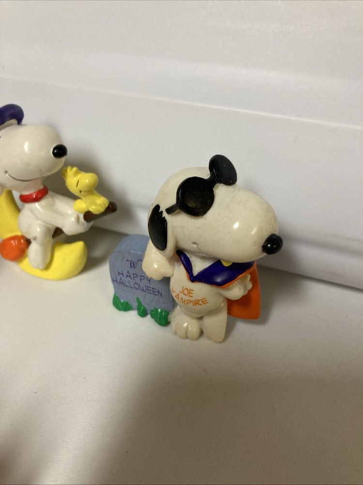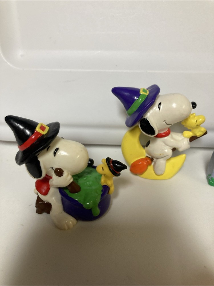 You will receive all four peanuts Snoopy and Woodstock PVC mini figurines. They’re only about 2“ x 2“ colors are good and they’re very good condition. Believe these are from the late 70s. Would be really great for any peanuts Snoopy or Woodstock collector. Love the Halloween theme as well. Also check out our Garfield PVC figurine lot. Fast and secure shipping. Thanks and good luck.